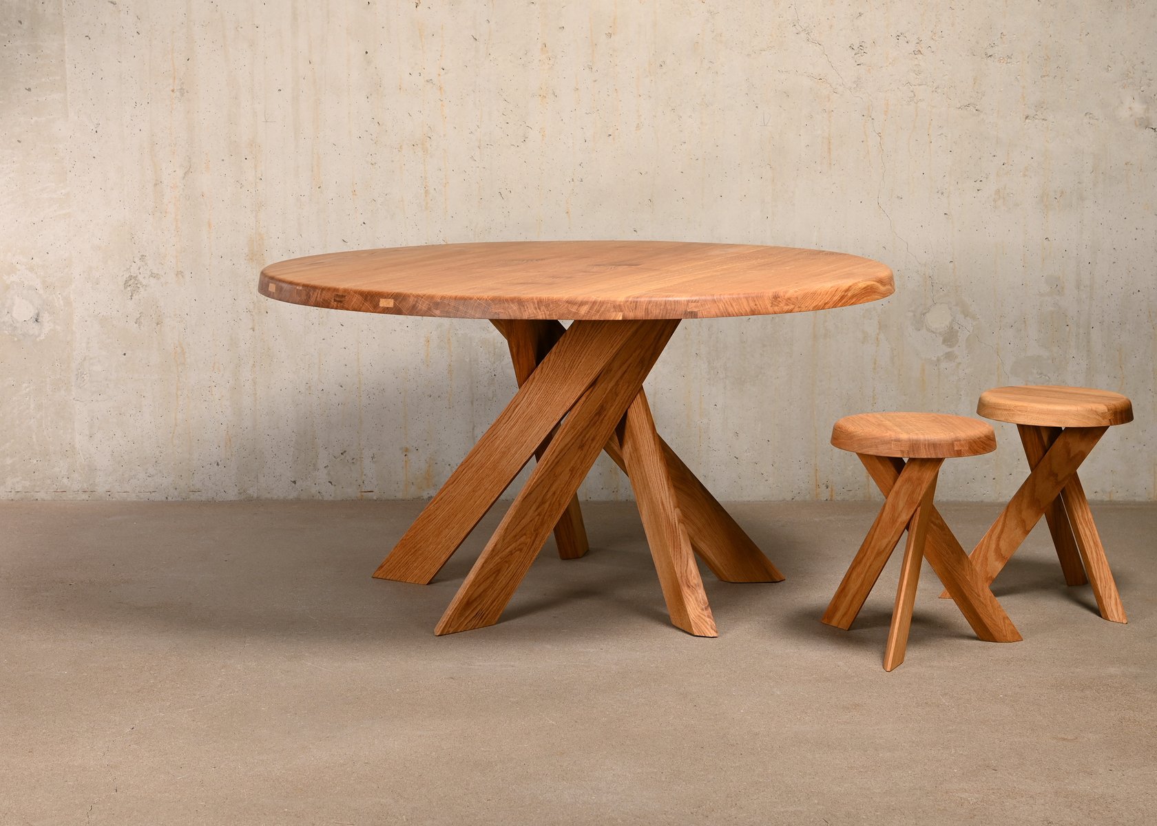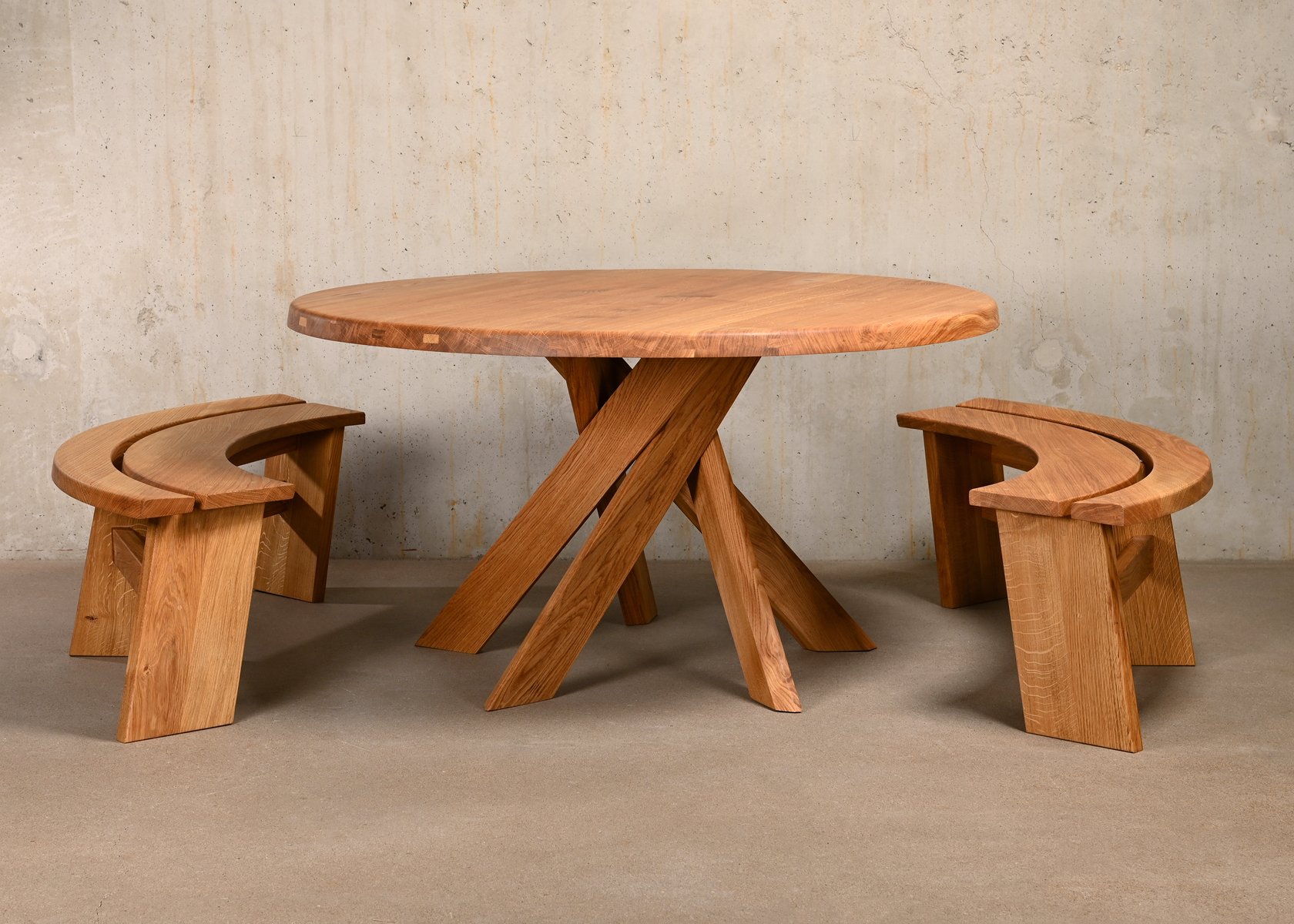 Model T21D Dining Table in Oak by Pierre Chapo, France