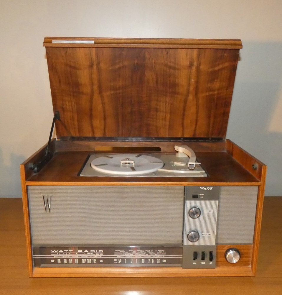 Model WR 718 Turntable Radio in Wood and Bakelite from Watt Radio, Italy, 1960s