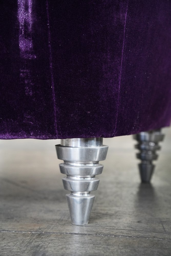Modern Purple Velvet Three-Seater Sofa