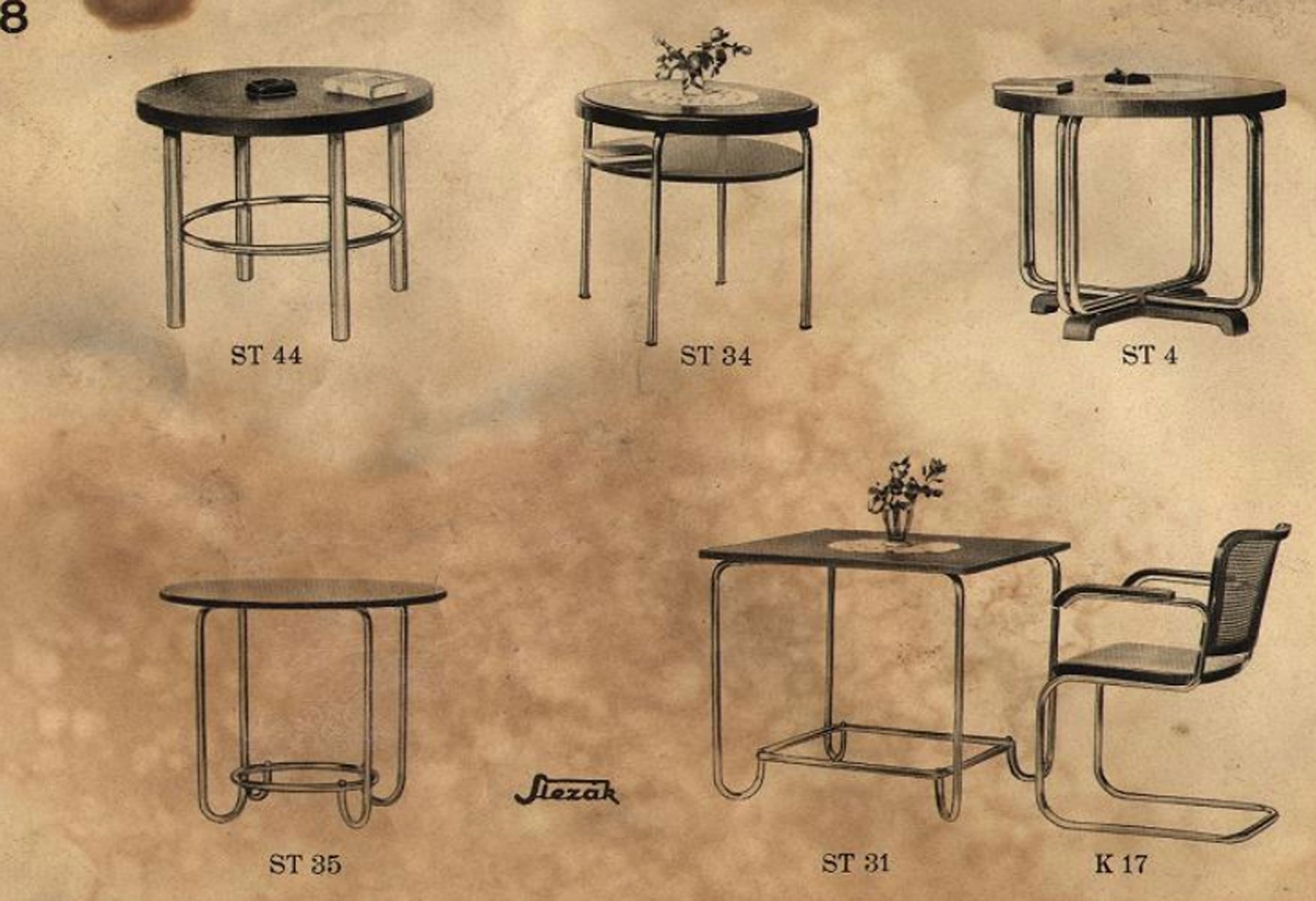 Founded in 1908 by Robert Slezak, a locksmith, in Bystrice pod Hostýnem, the company evolved from a small metal workshop to a highly respected metal chair manufacturer. By the 1930s, Slezak had become one of the most important makers of Bauhaus tubular steel furniture, creating pieces for designers such as Mart Stam, Michael Thonet, Jindřich Halabala, and Rudolf Netík. Standouts include Mart Stam's classic K10 Chair, which could be regarded as one of the most highly influential furniture designs of the 20th century. Other recognizable examples are the cantilever B 62 and B 64 chairs, designed by Marcel Breuer, which were produced by Slezak under license from the German manufacturer Thonet.