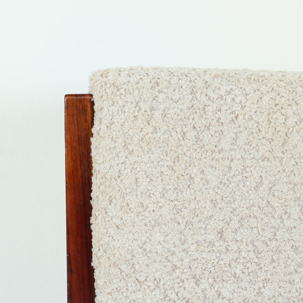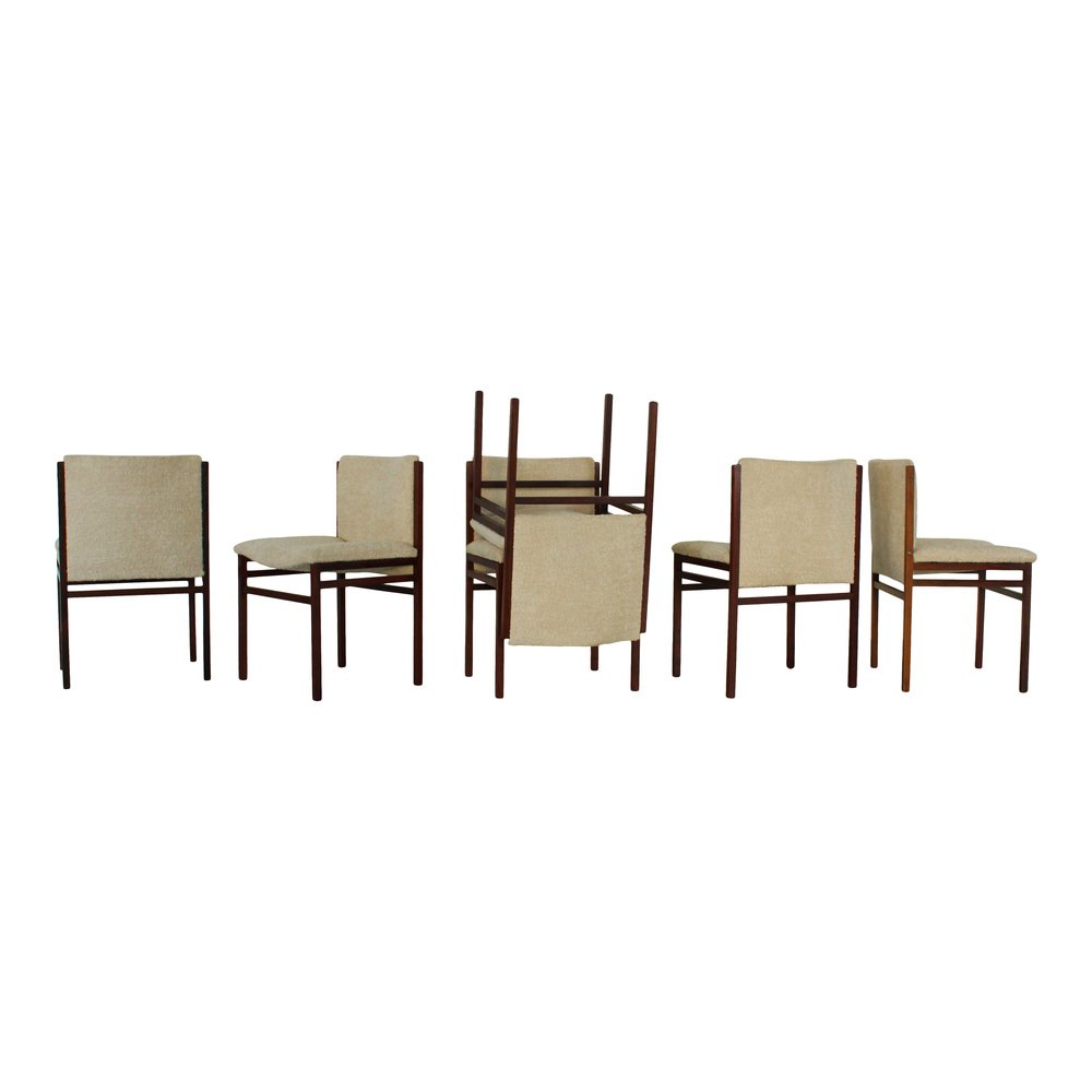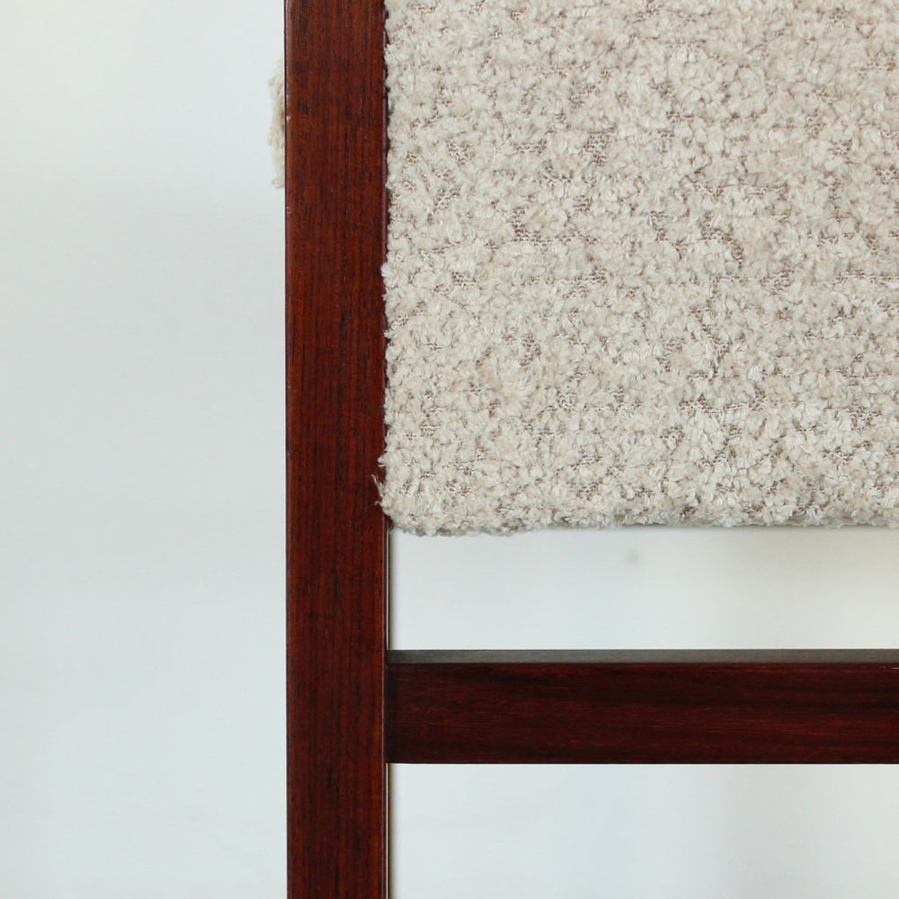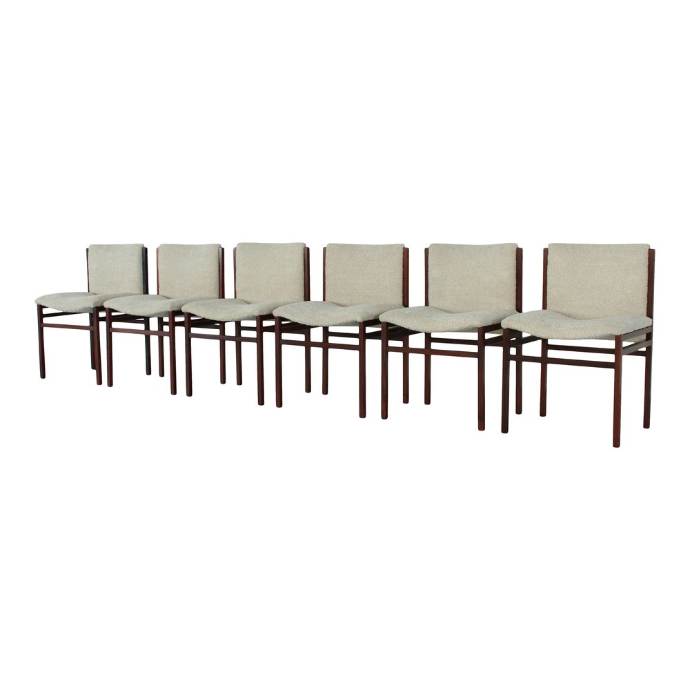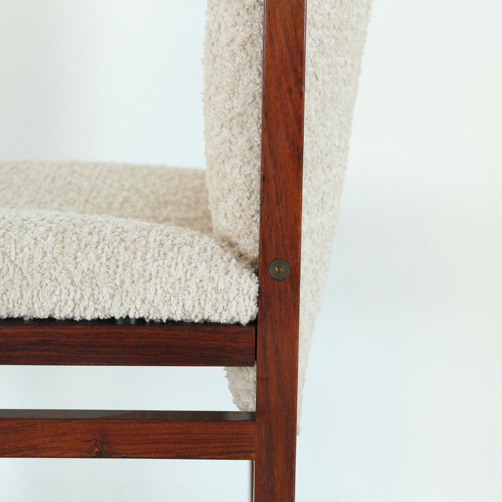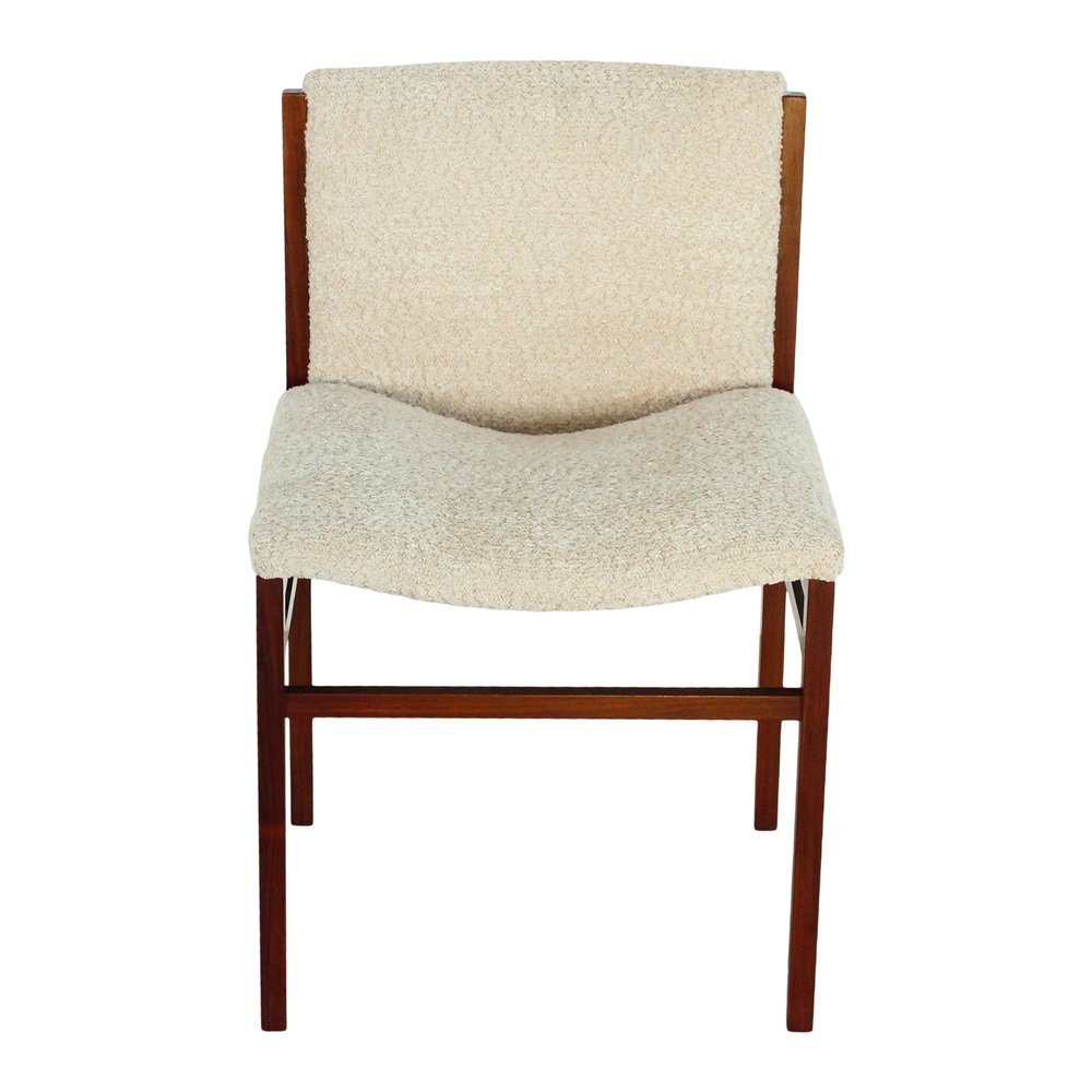 Modernist Sculptural Ash and Ivory Bouclé Upholstery Dining Chairs by Tito Agnoli for Cinova, 1960s, Set of 6