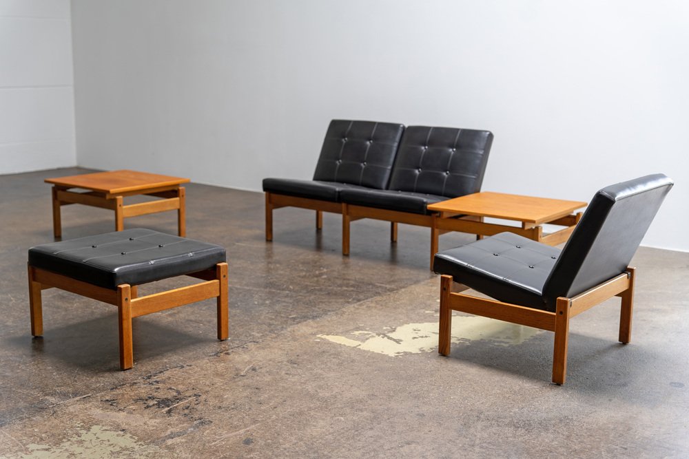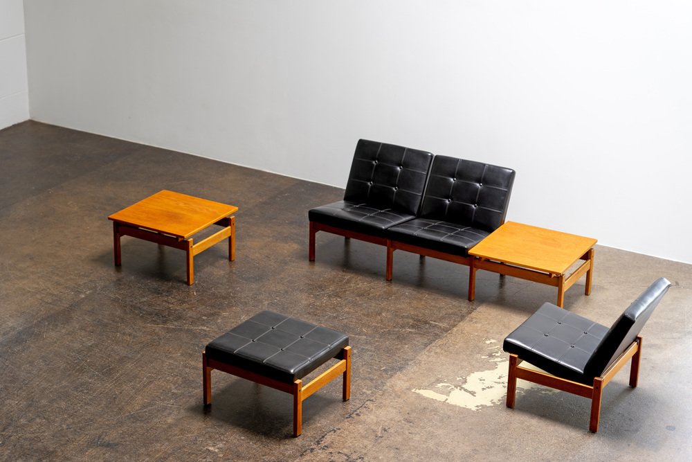 Other well-known designs in Ekström’s portfolio include the Ruster seating collection for Pastoe (1950s)—which features low-back and high-back models sofas and chairs made from solid teak with signature triangle armrests—as well as the spindle-back Arka Chair for Stolfabrik (1955), the modular Fakta shelving system for Swedese (1958), and a series of teak tea trolleys (1959, 1962). Ekström’s designs can be found in many permanent collections, including the Victoria & Albert Museum in London, Nationalmuseum in Stockholm, and the Stedelijkmuseum in Amsterdam.
