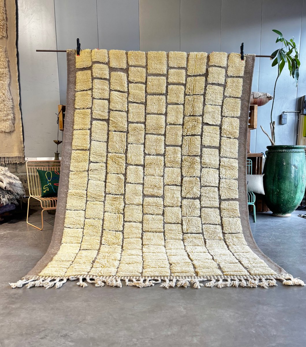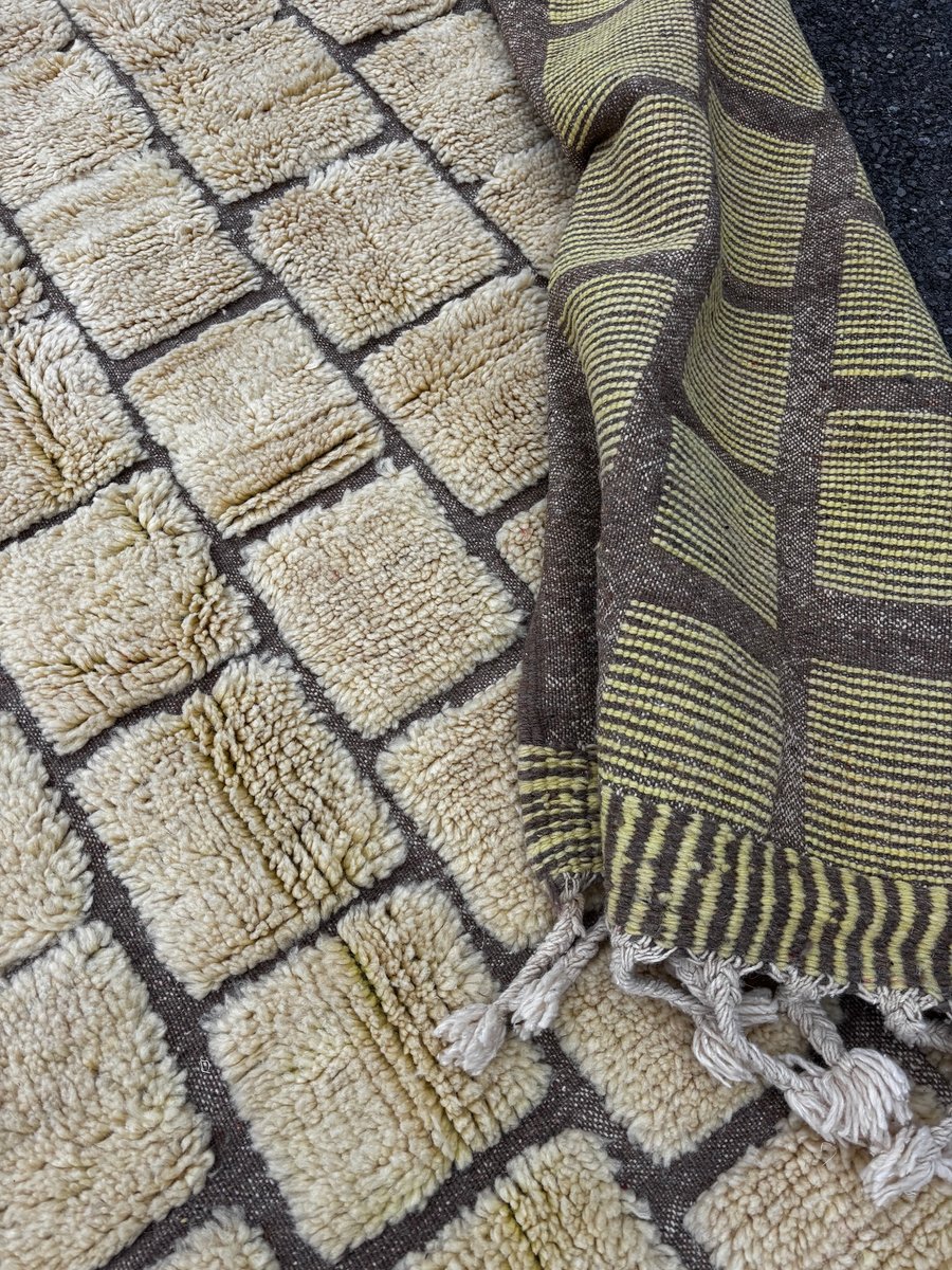 Moroccan Wool Rug in Yellow and Taupe, 1990
