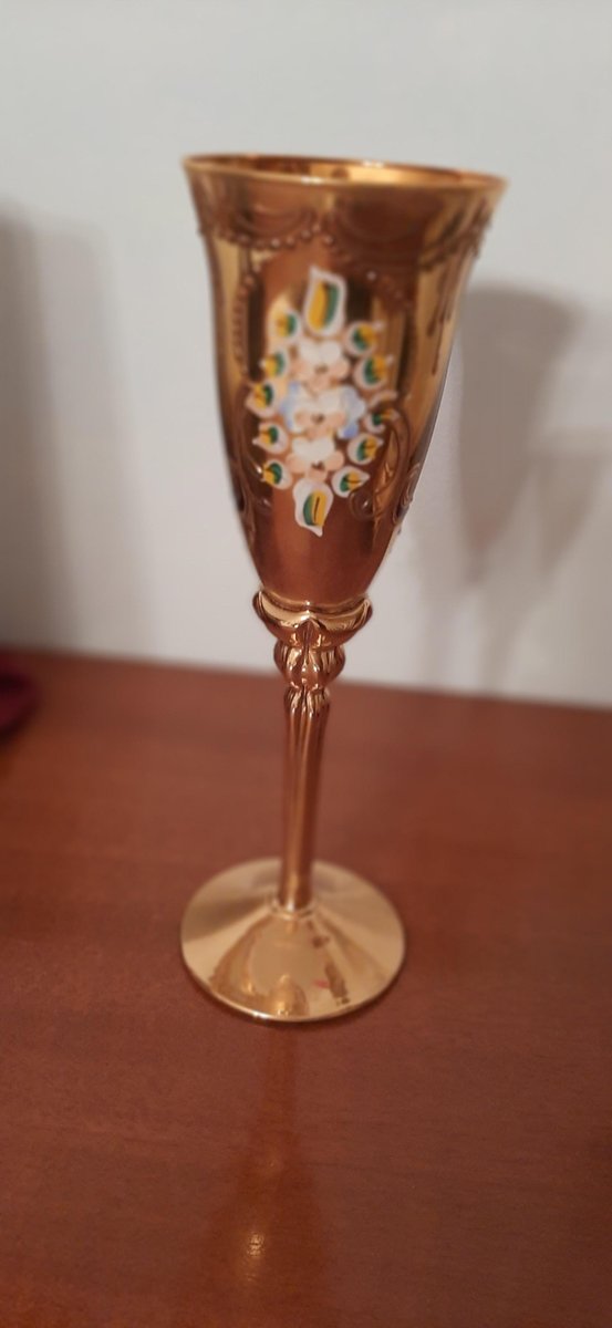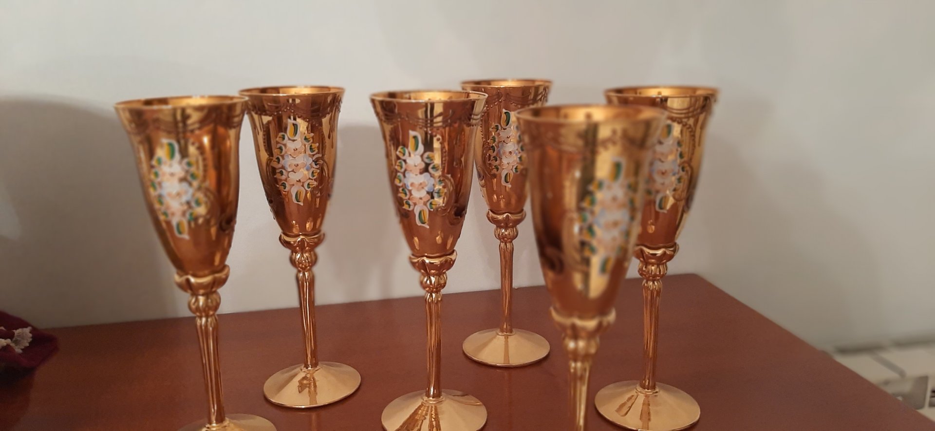 Murano Glass and 24 Karat Gold Goblets, 1970s, Set of 6