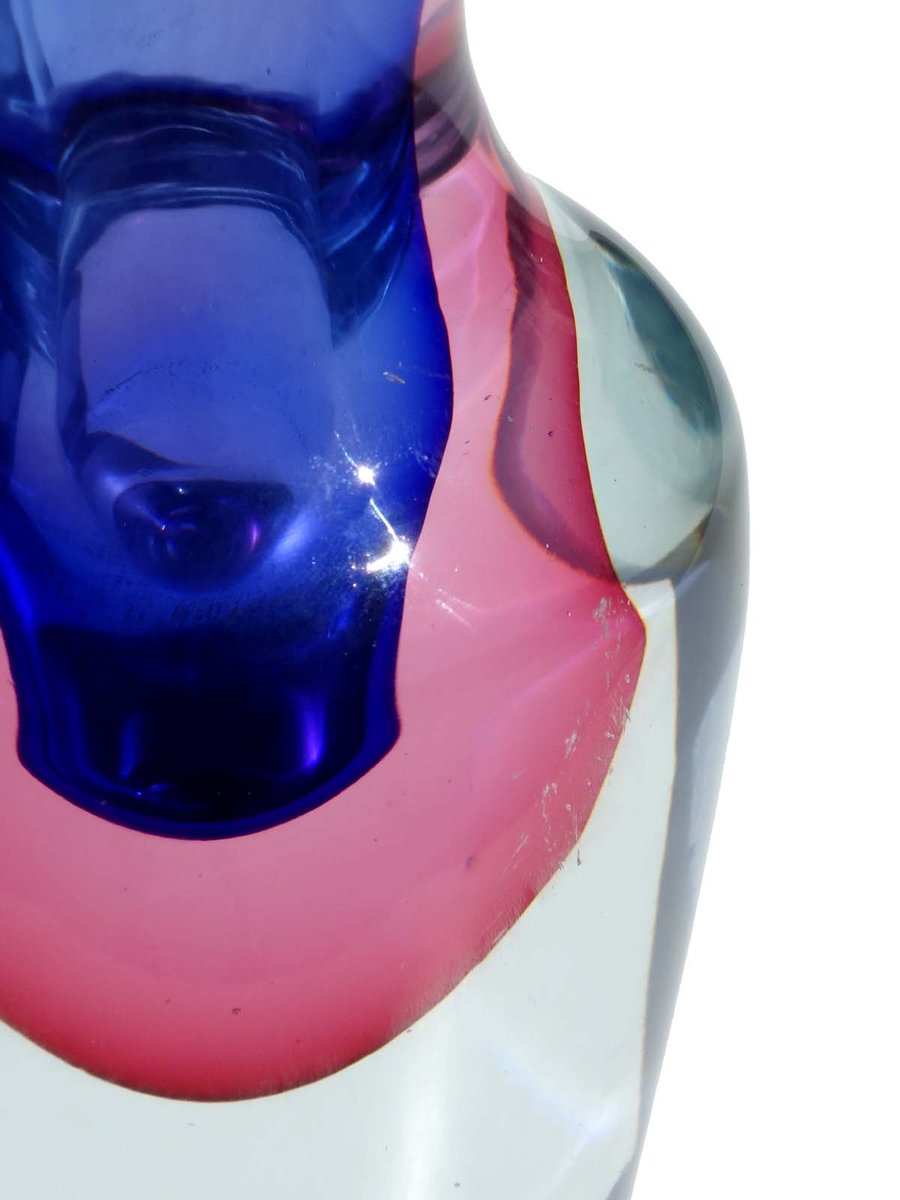 Murano Glass Purple Blue Pink Vase by Flavio Poli Seguso Sommerso, 1960s