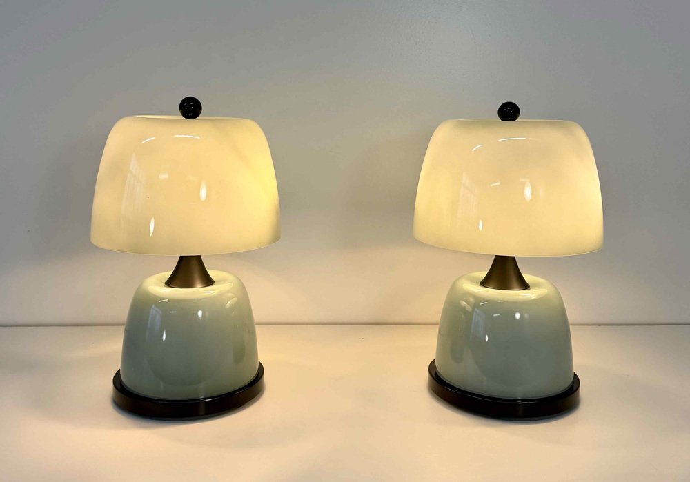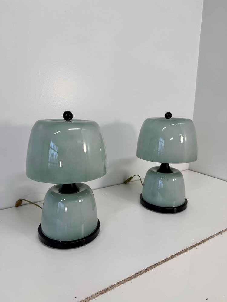 Murano Glass Table Lamps in Sage Green with Black Details, 2000s, Set of 2