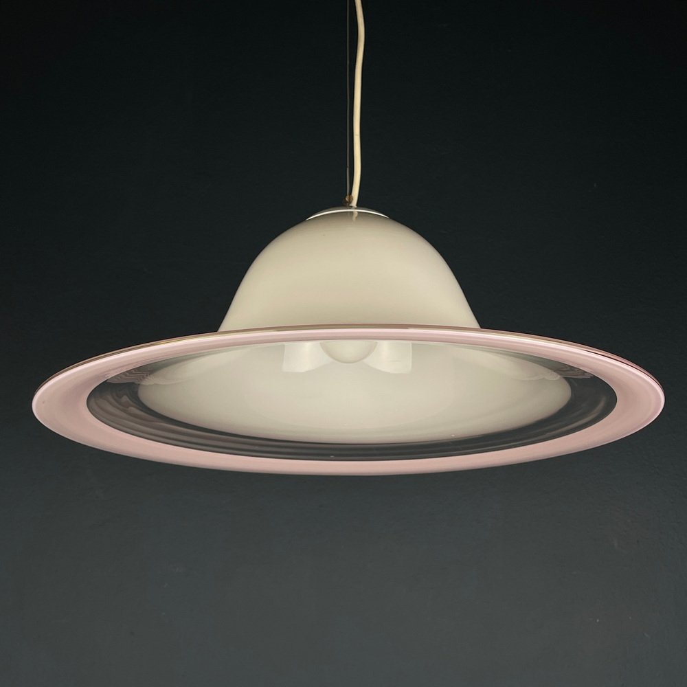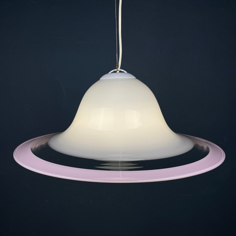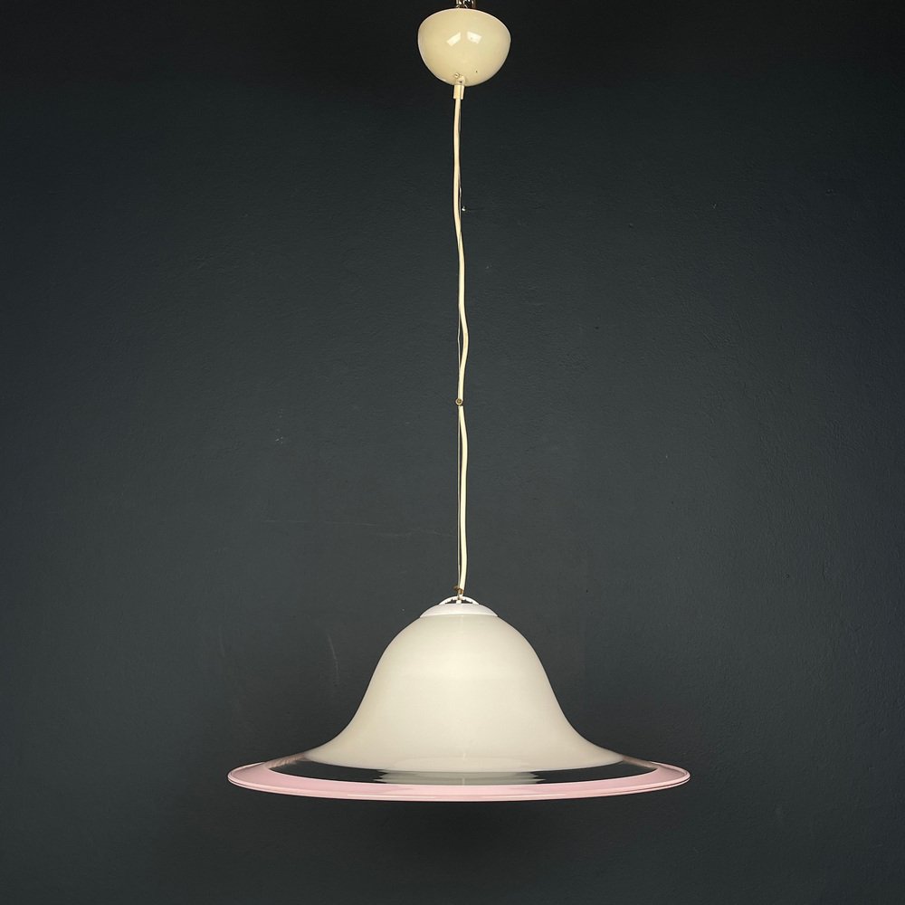 Murano Glass White and Pink Pendant Lamp, Italy, 1970s