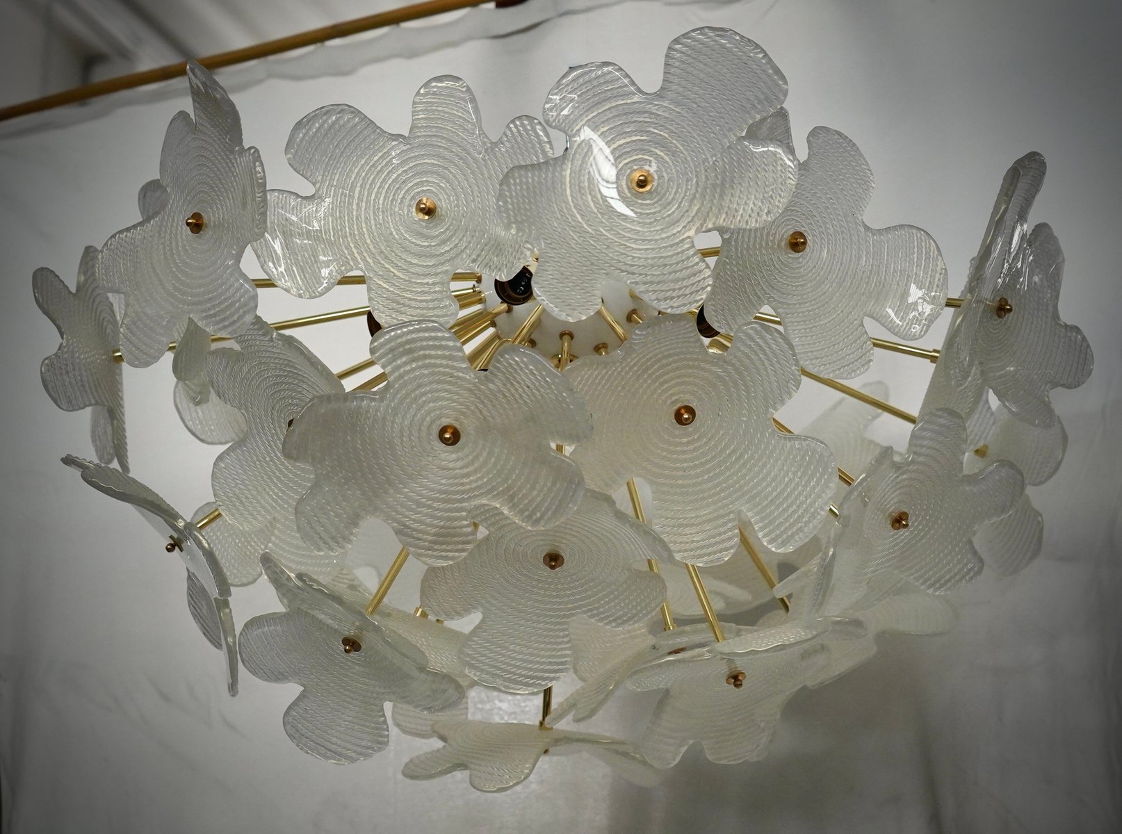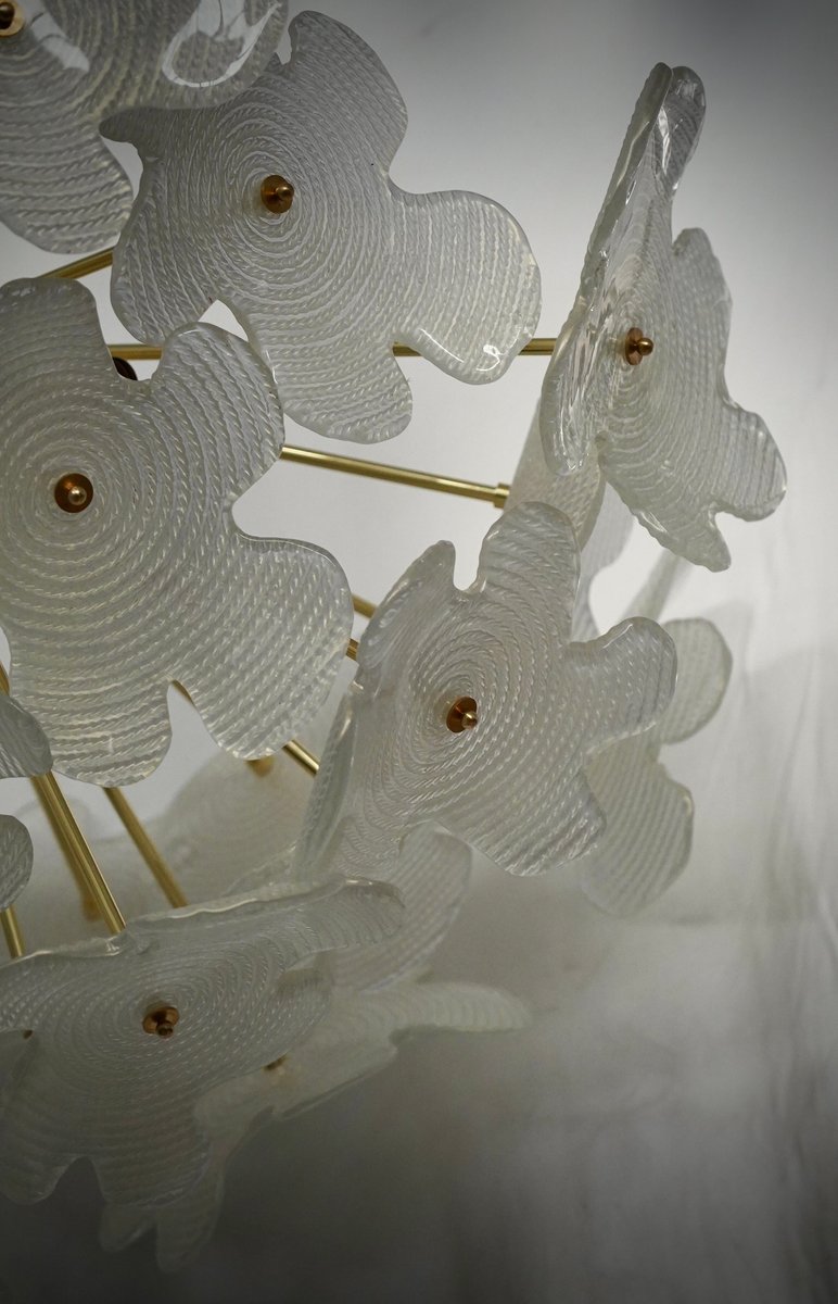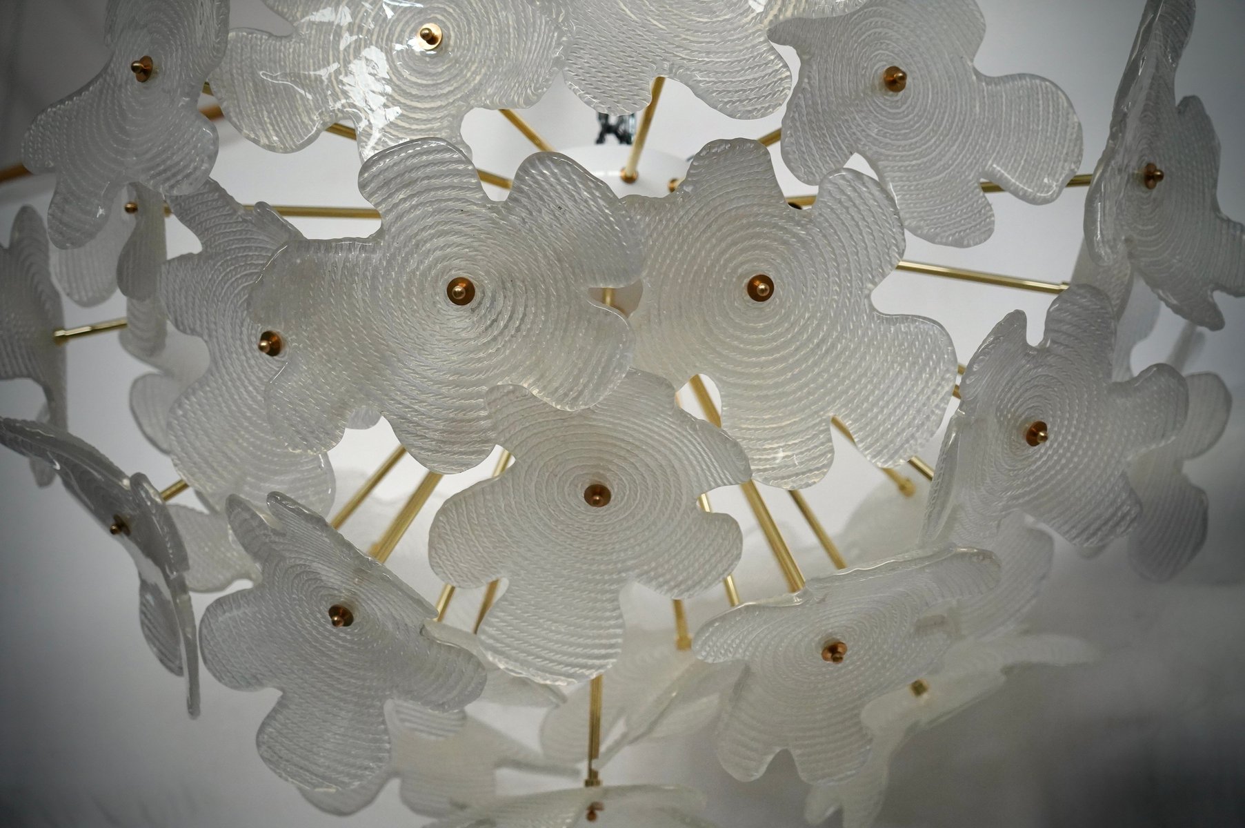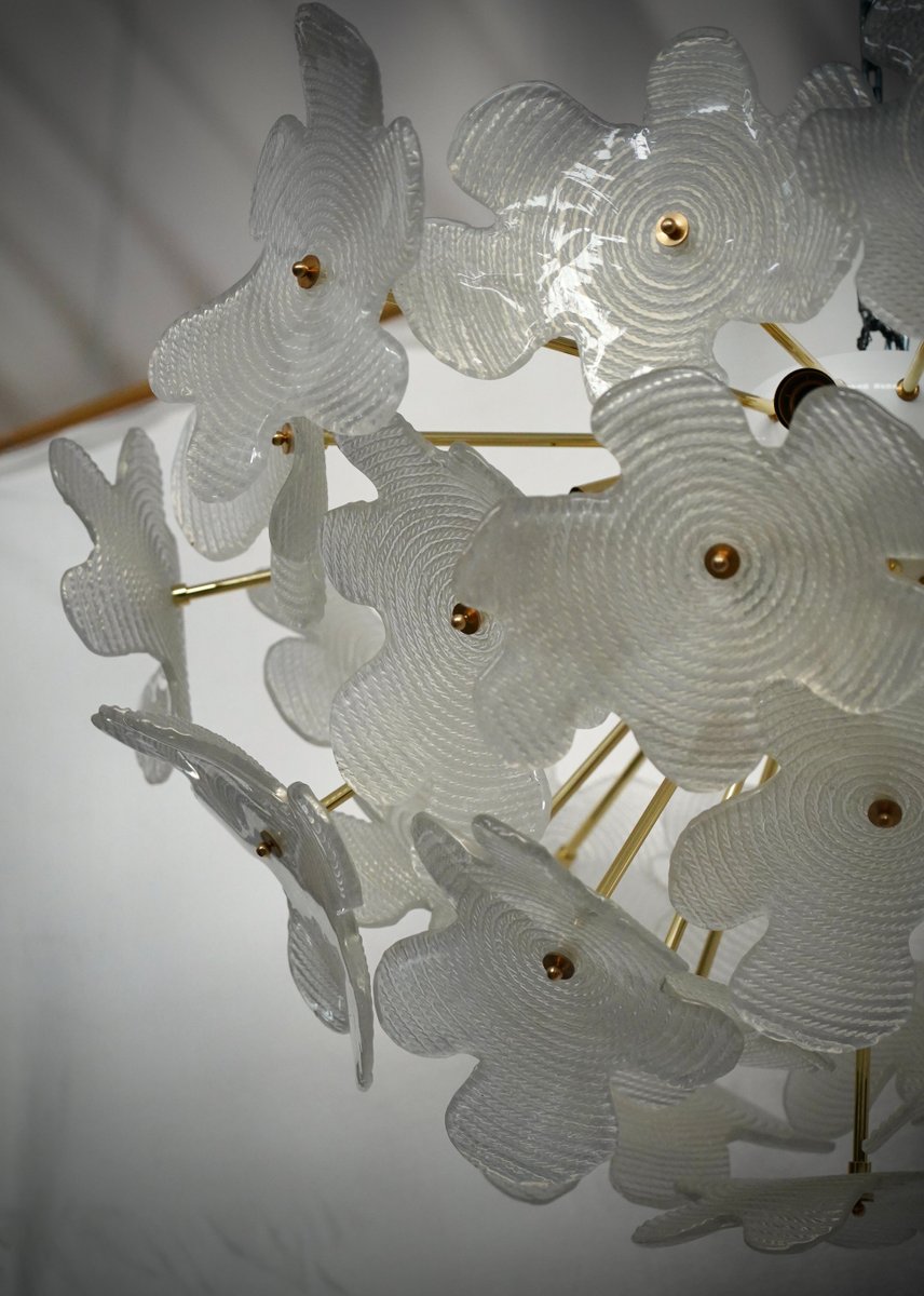 Murano Sputnik Semi Spherical White Glass and Brass Chandelier and Pendant