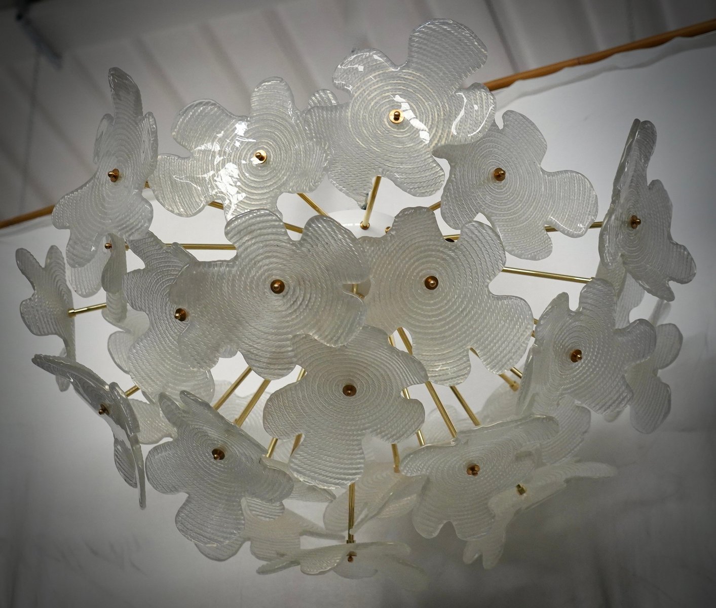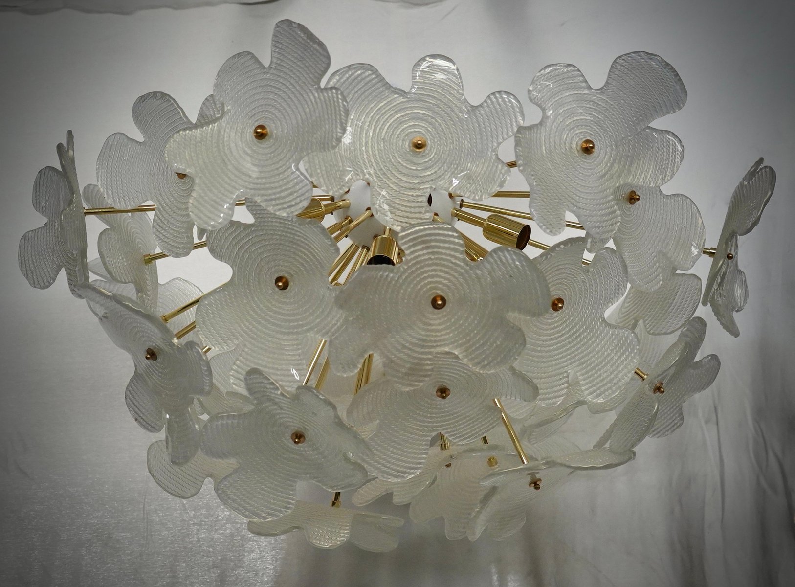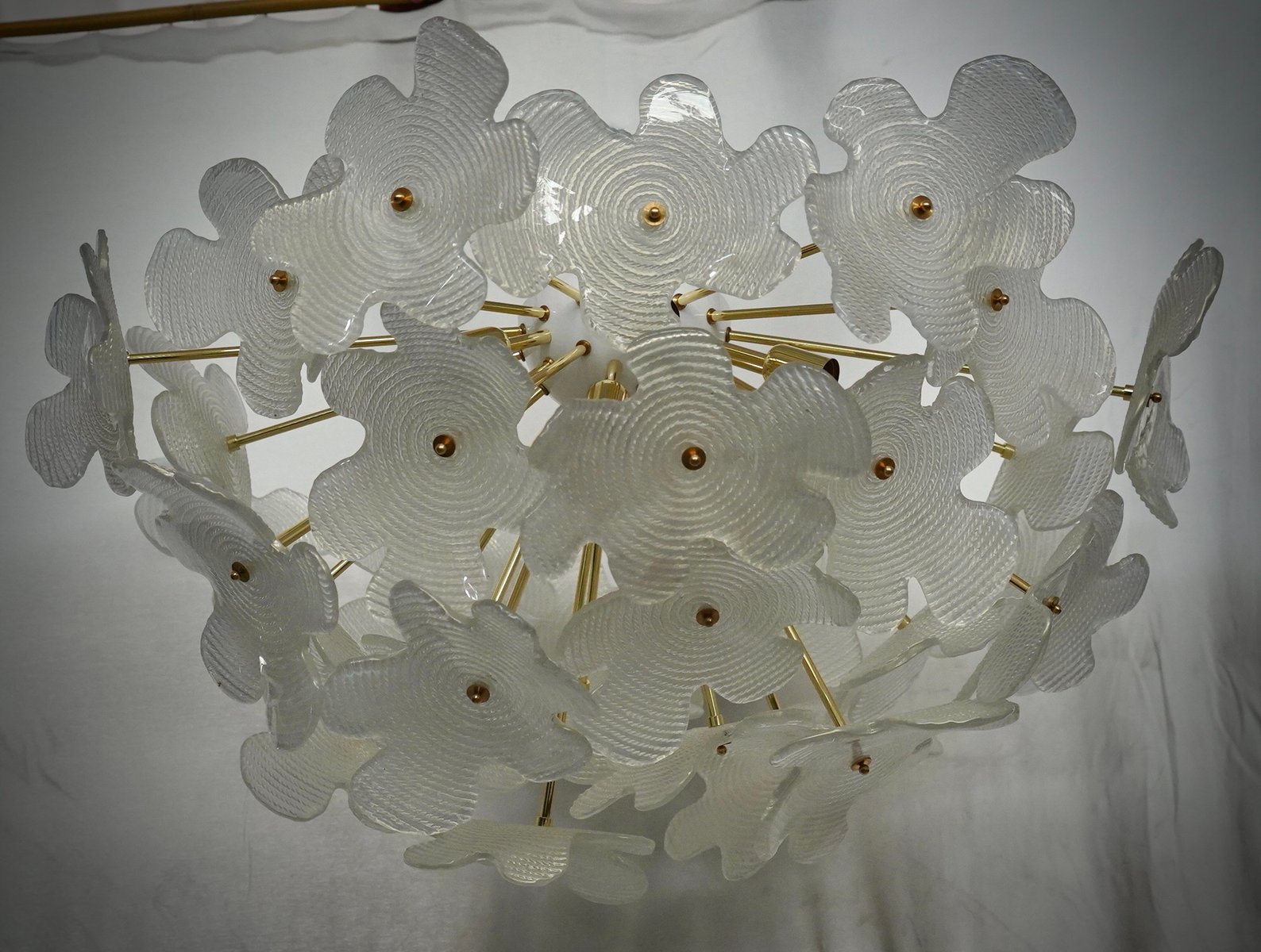 Murano Sputnik Semi Spherical White Glass and Brass Chandelier and Pendant