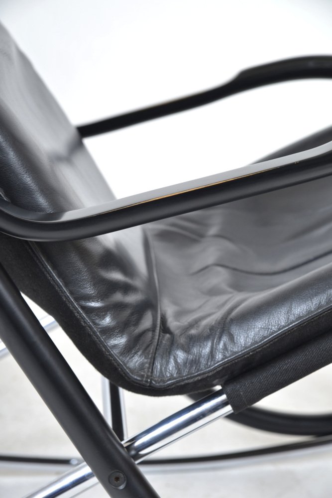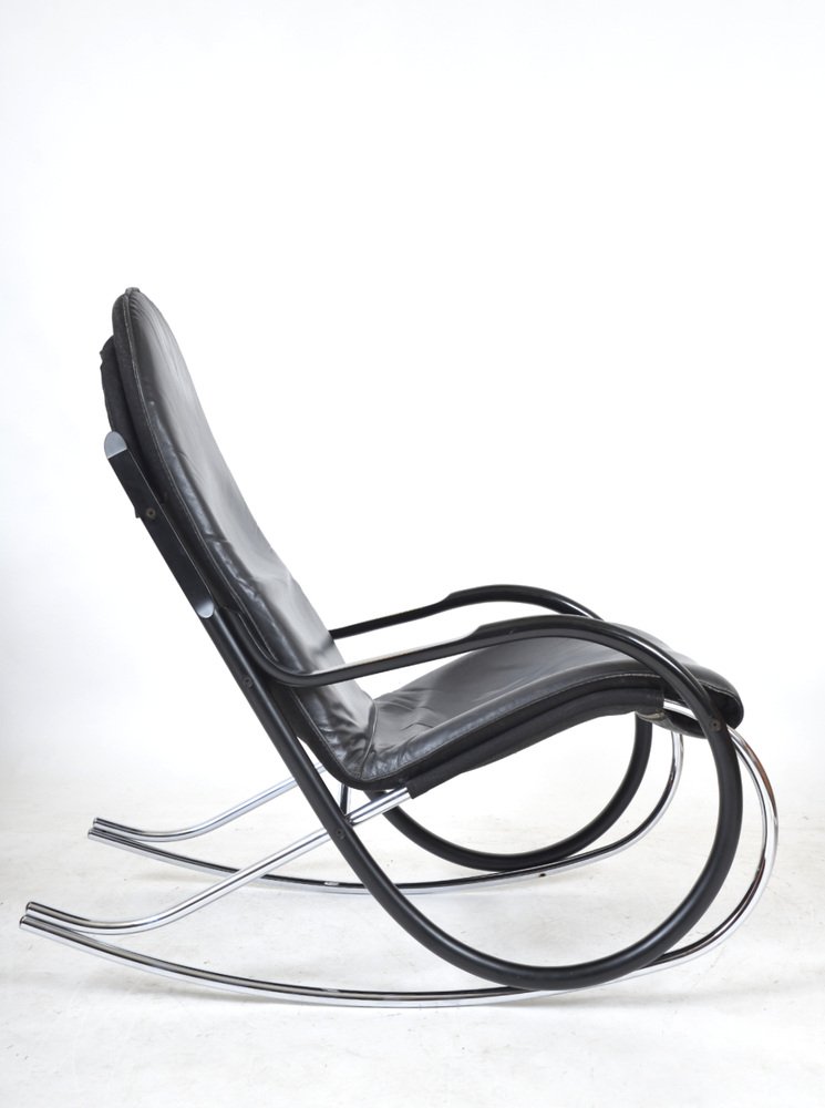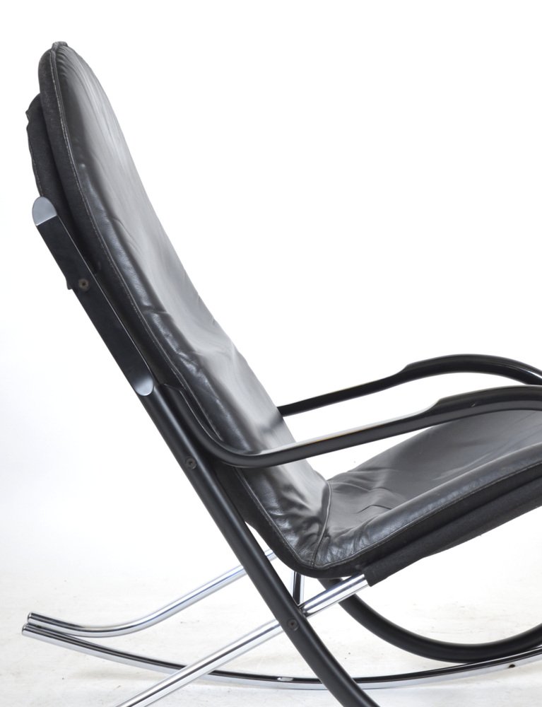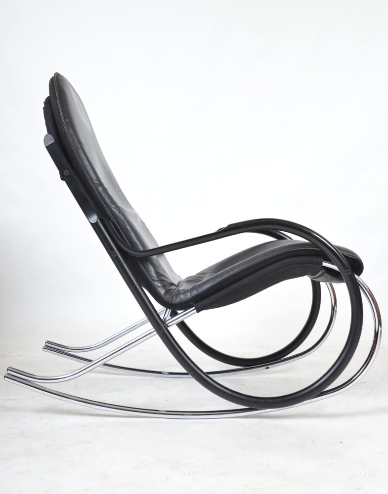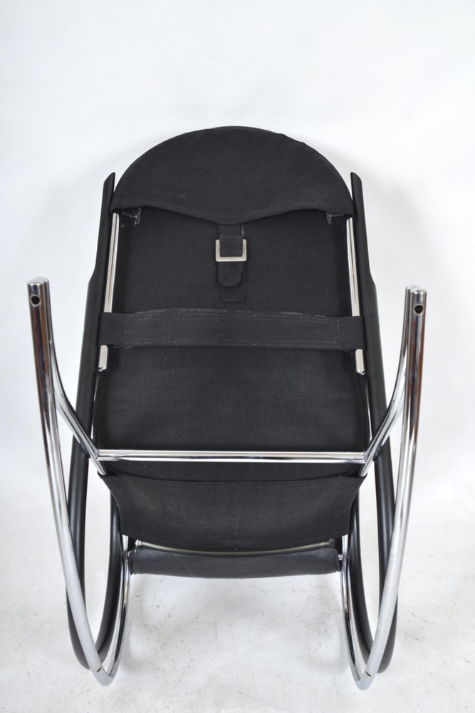 Nonna Rocking Chair in Chrome & Leather by Paul Tuttle for Strässle International, Switzerland, 1972
