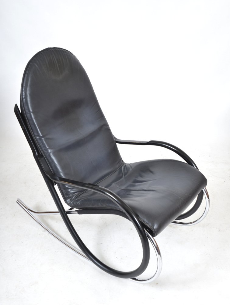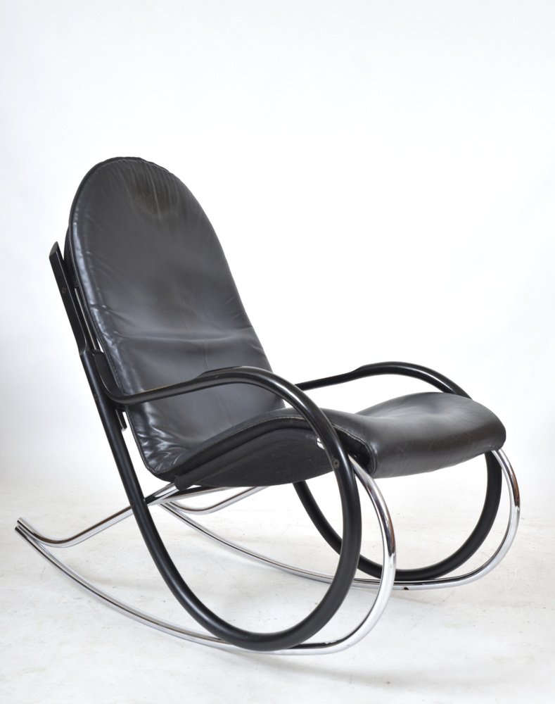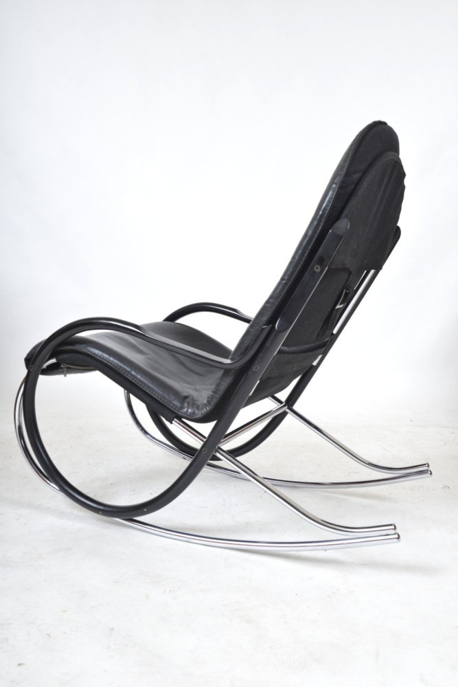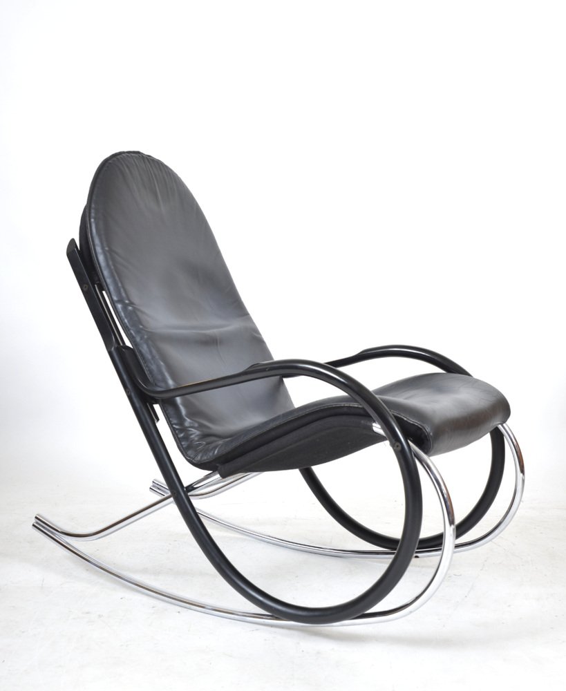Nonna Rocking Chair in Chrome & Leather by Paul Tuttle for Strässle International, Switzerland, 1972