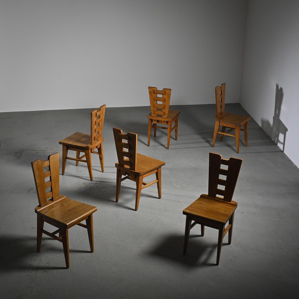 Oak Chairs from Henry Jacques Le Même, France 1940s, Set of 6