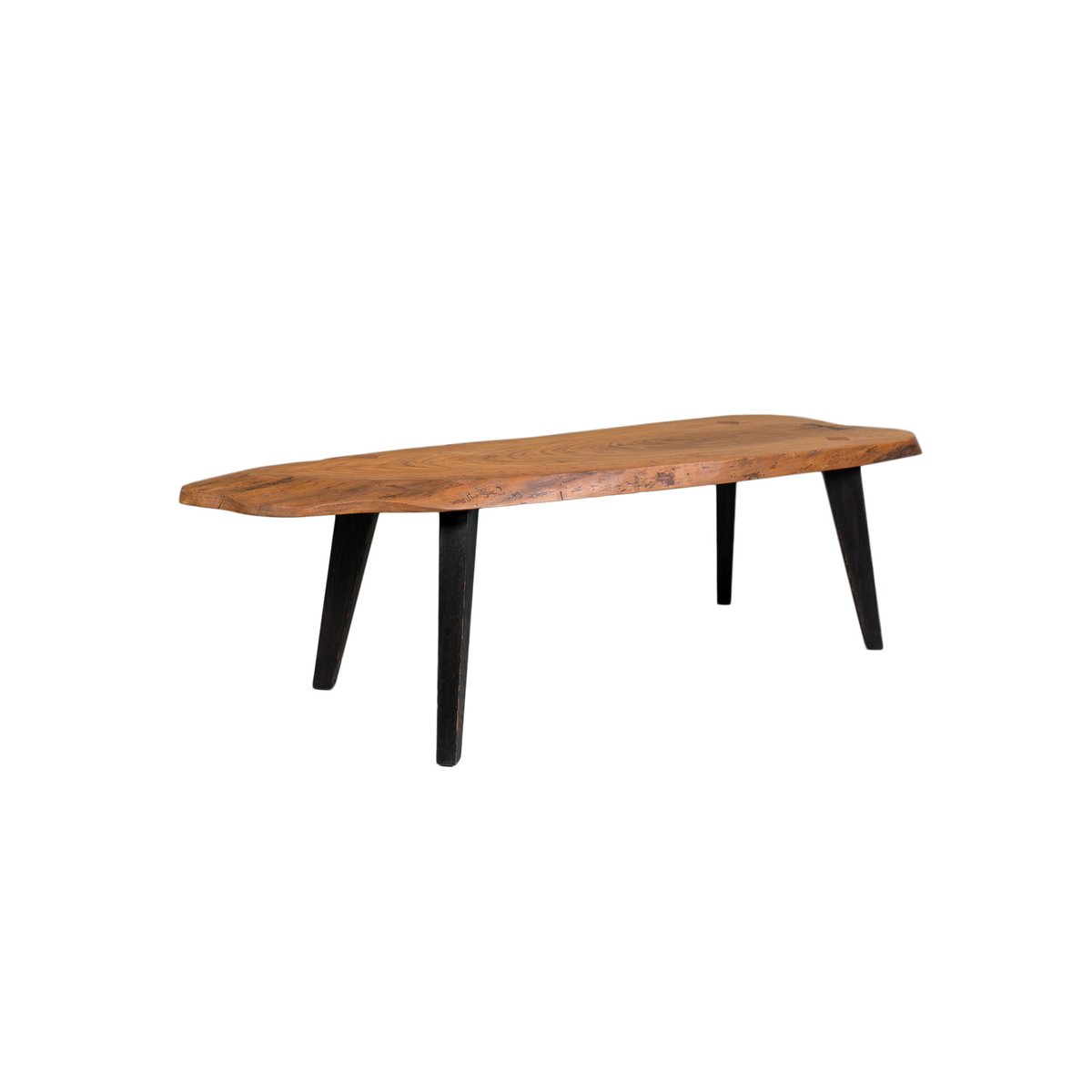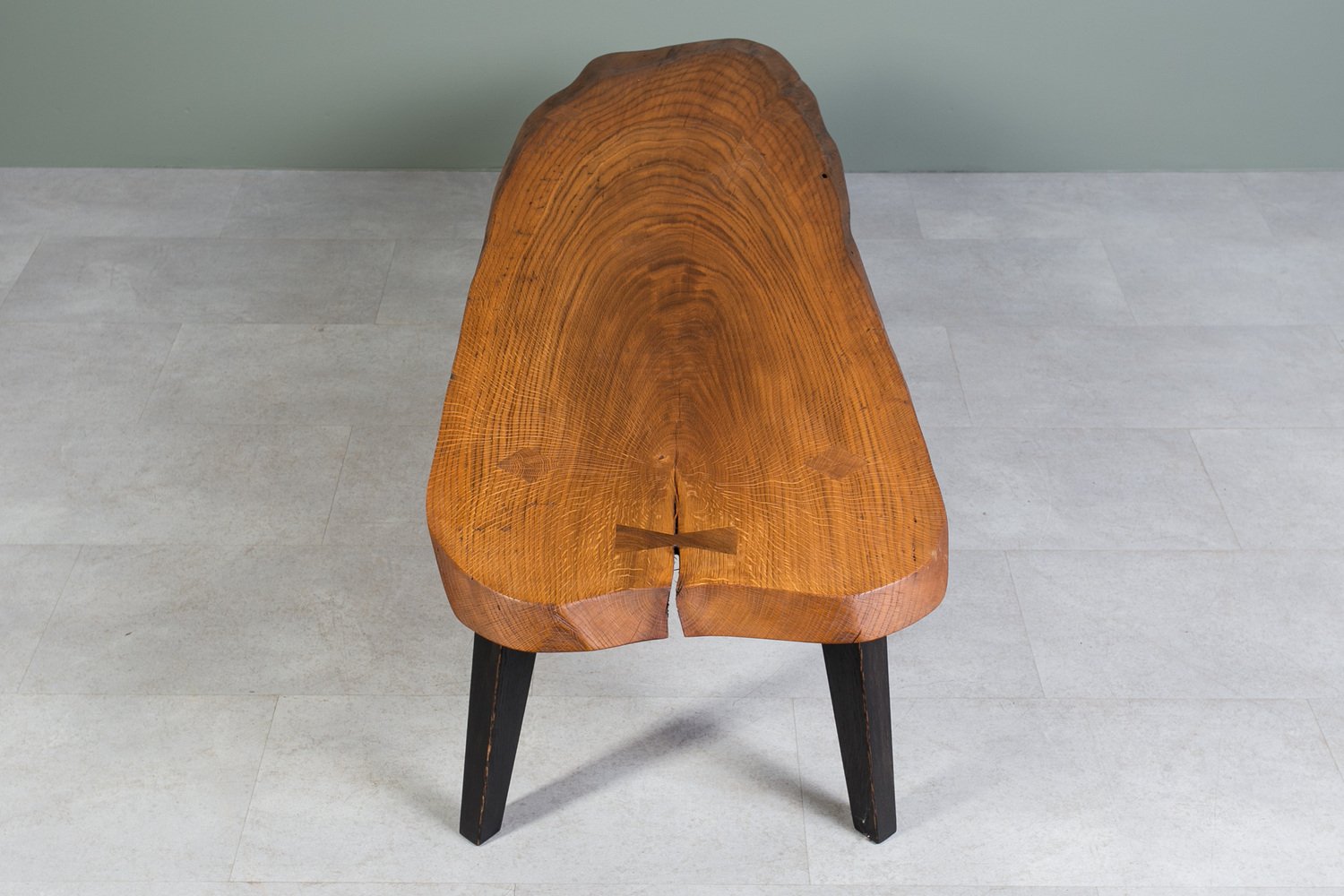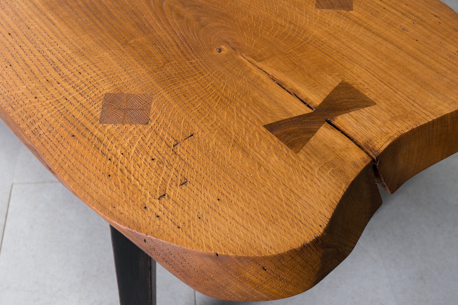 Oak Slice Coffee Table with Black Wooden Legs