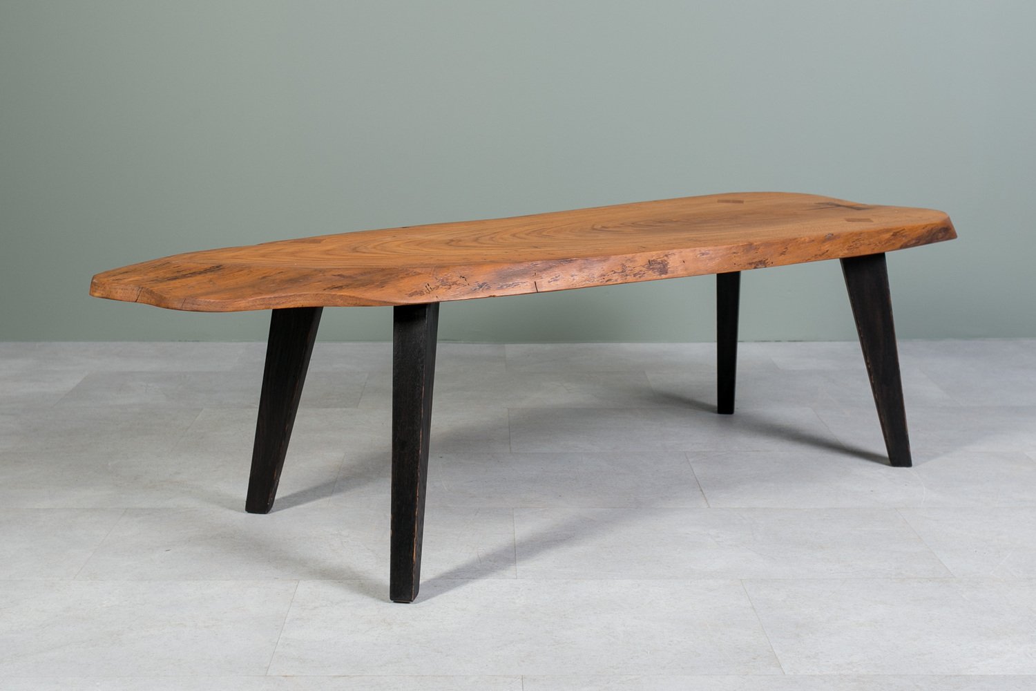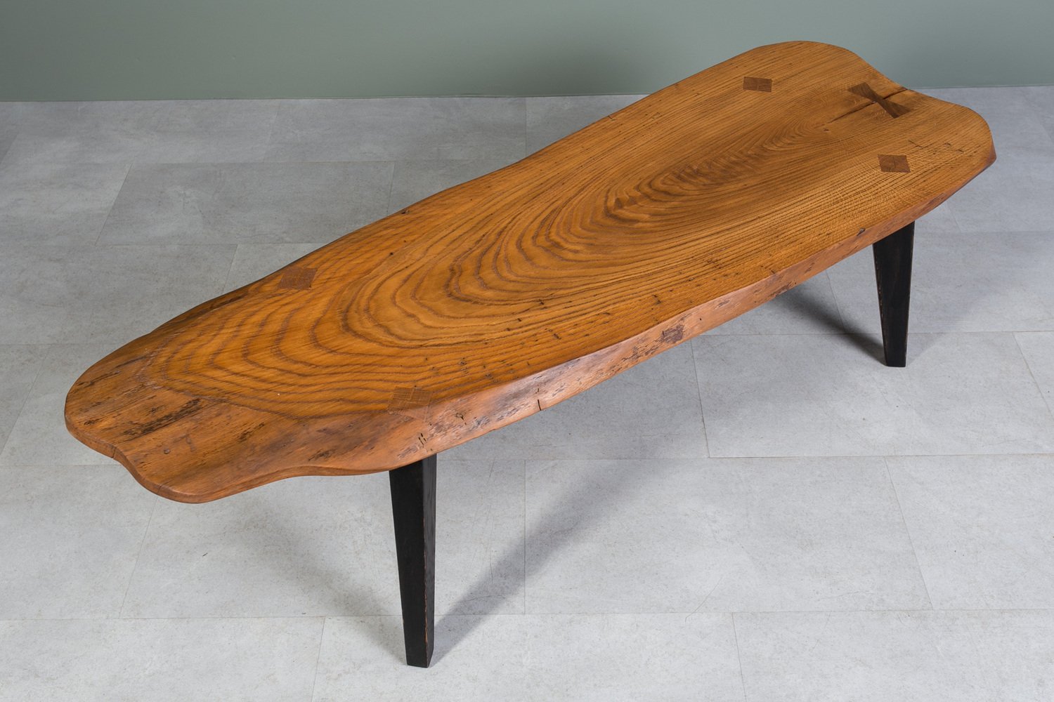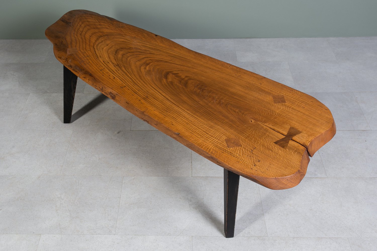 Oak Slice Coffee Table with Black Wooden Legs