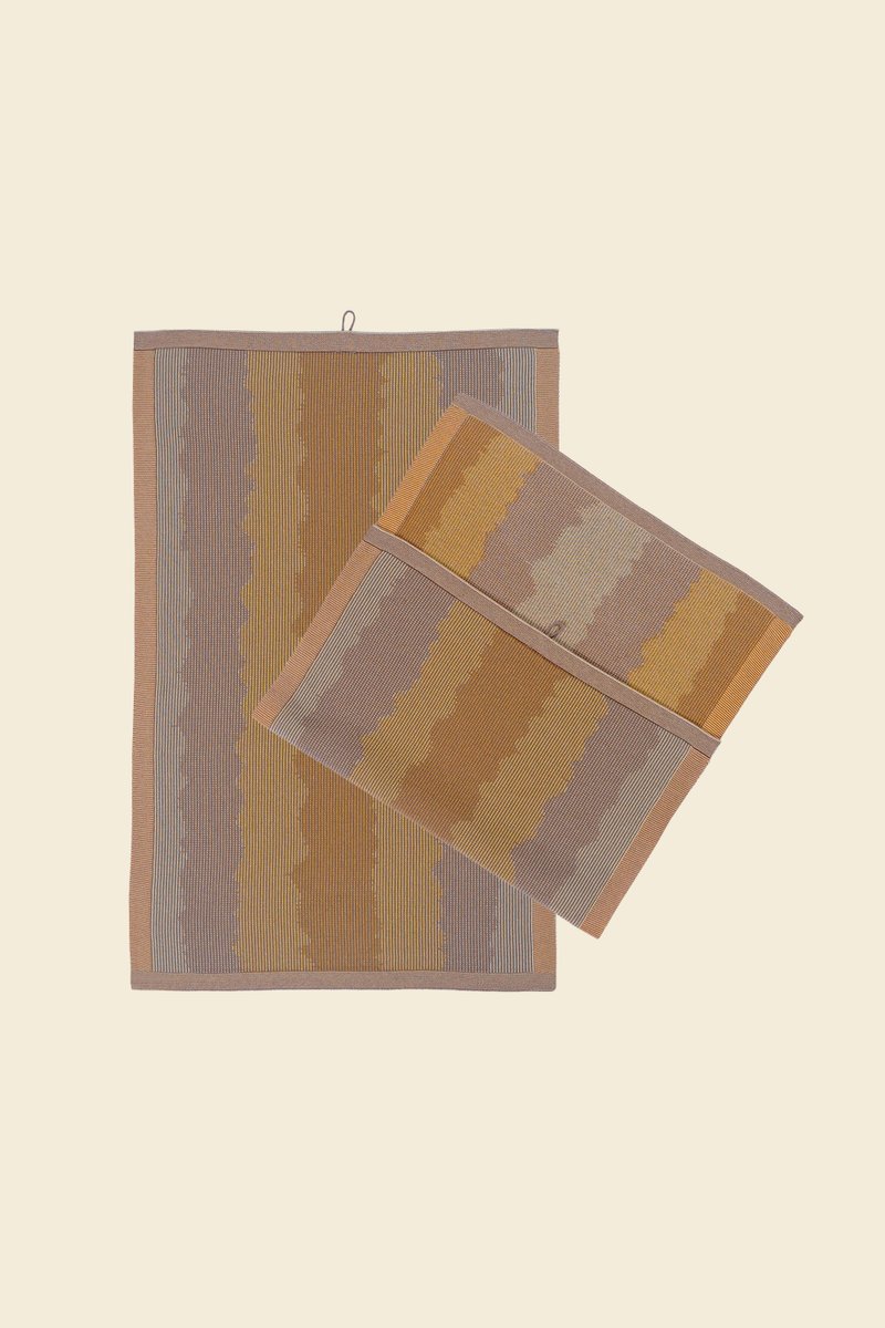 Organic Cotton Wavy Kitchen Towels in Yellow by BOI, Set of 2