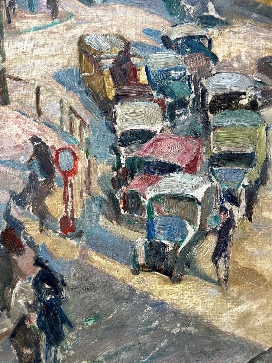 Several works by Otto Antoine were lost in the turmoil of World War II. These include, for example, 24 oil paintings depicting Berlin streets, bridges, and squares, which the city of Berlin took into wartime custody as important historical documents and placed in the Warthegau region. Also considered lost is the painting "Leipziger Straße" from the Berlin National Gallery's holdings, which was housed in the Upper Silesian Museum in Gliwice. Fortunately, a large part of his oeuvre survived. However, a complete overview of the locations of Antoine's works does not currently exist. The following information can only serve as a guide. A large number of works are owned by the family and other private collectors. The pictures Antoine painted for the Reichspostmuseum and some works acquired by German postal museums after the Second World War are now housed in the Museum Foundation for Post and Telecommunications. These include primarily 22 oil paintings and 16 watercolors, as well as drawings and colored facsimiles. The Berlin City Museum Foundation preserves four paintings ("Security Police in Berlin, 1920," "Kaiser Friedrich Bridge, 1921," "Leipziger Platz, 1925," and "At Potsdamer Platz, 1930") and two prints by Antoine that were formerly owned by the city. The German Museum of Technology in Berlin owns the painting "Transfer of the Elevated Railway to Berlin over the Electric Suburban and Long-Distance Railway" (presumably 1905) showing the yellow street mail vans at Gleisdreieck. Antoine's oil painting from around 1920 of Berlin traffic on Alexanderplatz, built in 1882, is housed in the Reinickendorf district office in Berlin. Rhein-Chemie Holding in Heidelberg owns a collection of watercolors depicting views of Berlin (29 were on display in the aforementioned exhibition "Alt-Berlin im Bild" (Old Berlin in Pictures) commemorating the artist's 100th birthday).