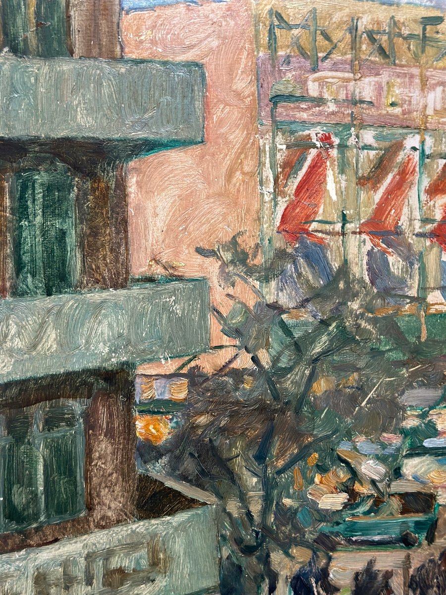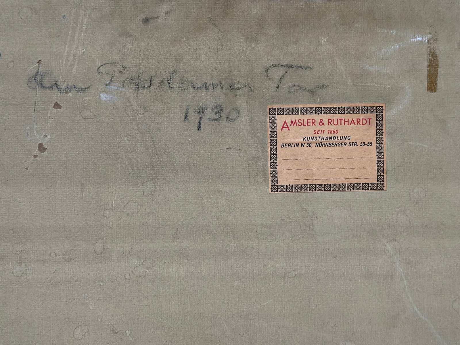 Since a stay in Neuwarp on the Baltic Sea in 1916, Otto Antoine had been friends with the painter Hans Hartig. While Hartig, who had previously preferred landscapes and the Baltic Sea as motifs, discovered the city for his painting under the influence of his friend Antoine, Hartig, conversely, succeeded in inspiring Antoine's interest in Baltic motifs. with the portrait of Hans Hartig painting in the harbor of Neuwarp, Antoine created a lasting monument to his friend. Among the artists with whom Otto Antoine was friends were other "post-painters," such as Richard Albitz (1876–1954) and Gustav Fenkohl (1872–1950), who had become prominent in Berlin's artistic scene.