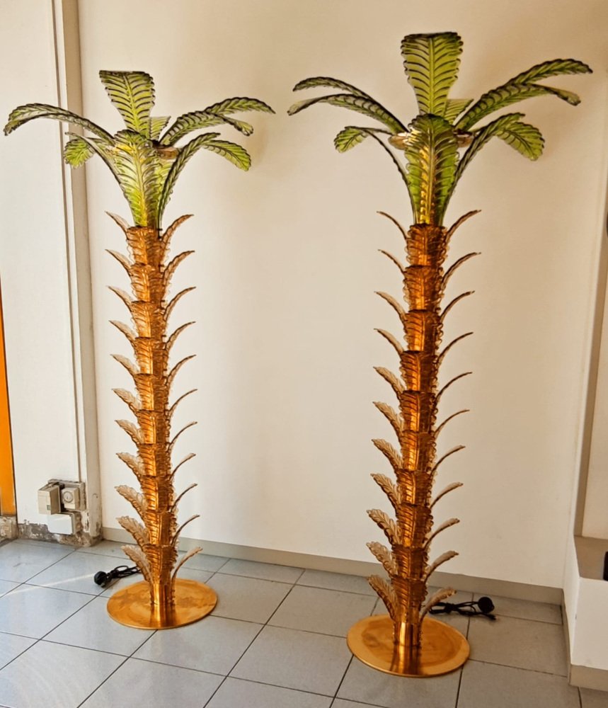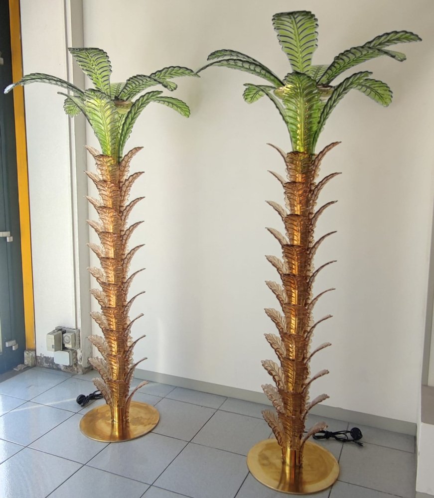 Palm Tree Floor Lamps in Brass & Murano Glass, Set of 2