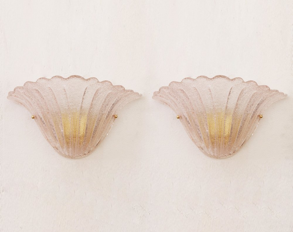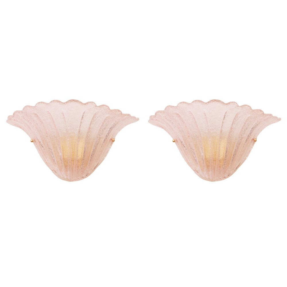 Pink Murano Glass Wall Sconces with Grit, 1990s, Set of 2