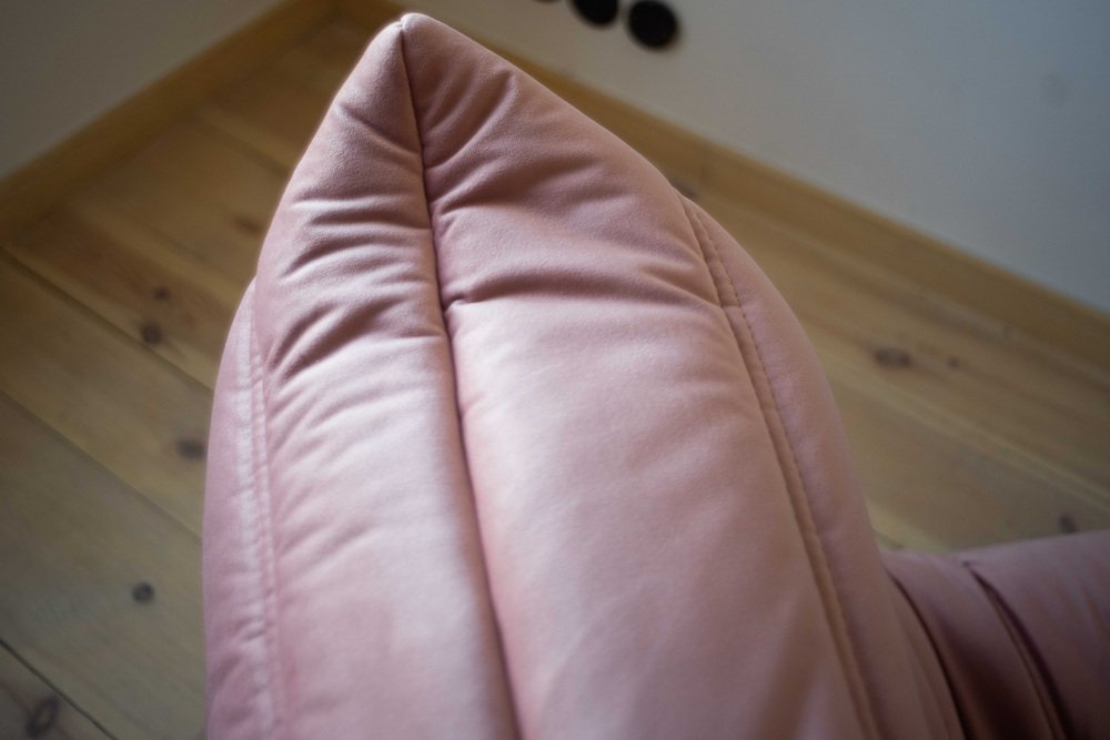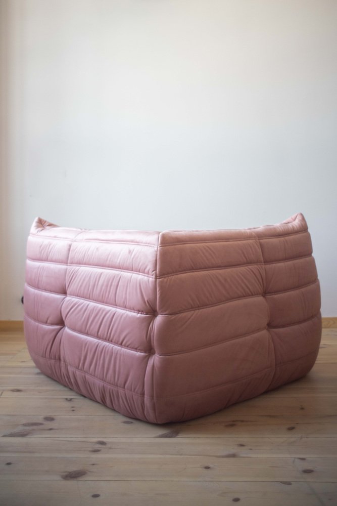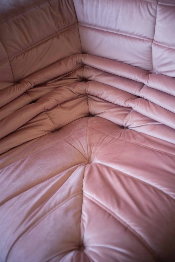 Pink Pearl Velvet Togo Lounge Chair, Corner Chair and 3-Seat Sofa by Michel Ducaroy for Ligne Roset, Set of 3