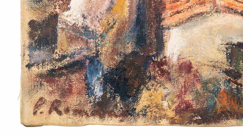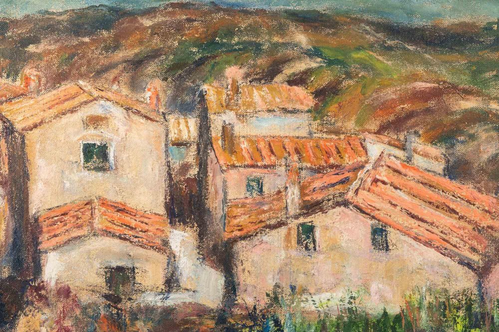 Pino Romanò, Houses in the Hills, Oil Painting, 1990s