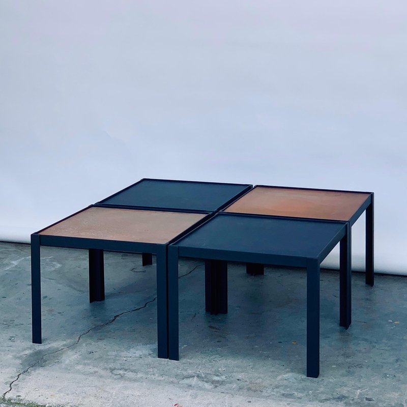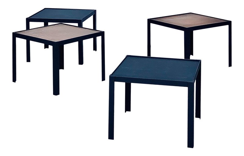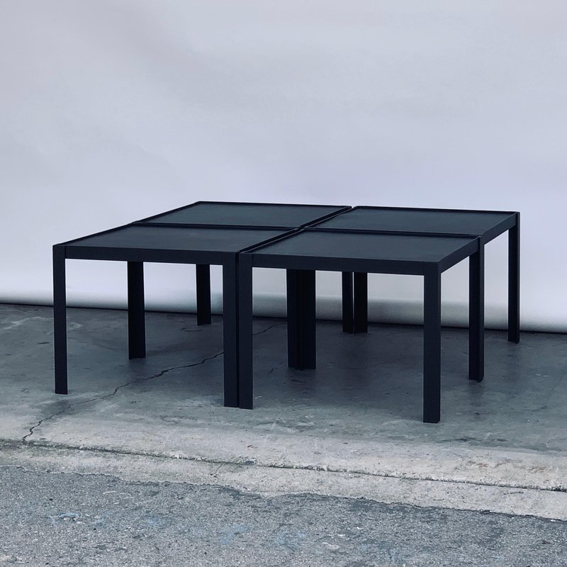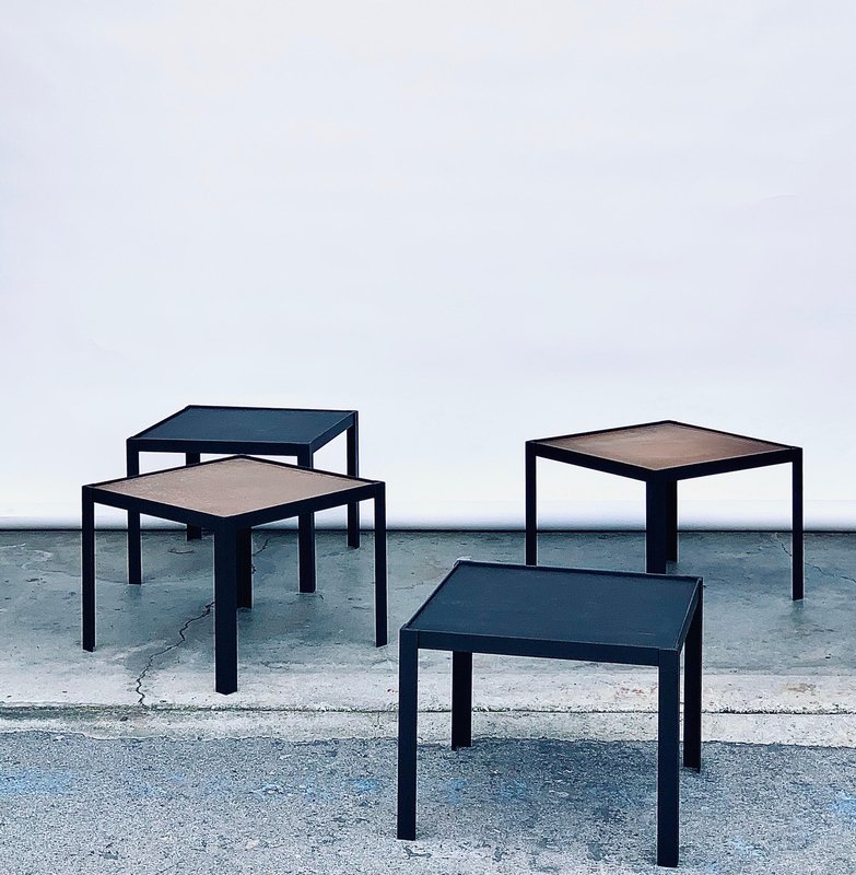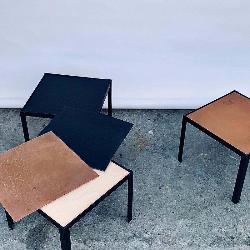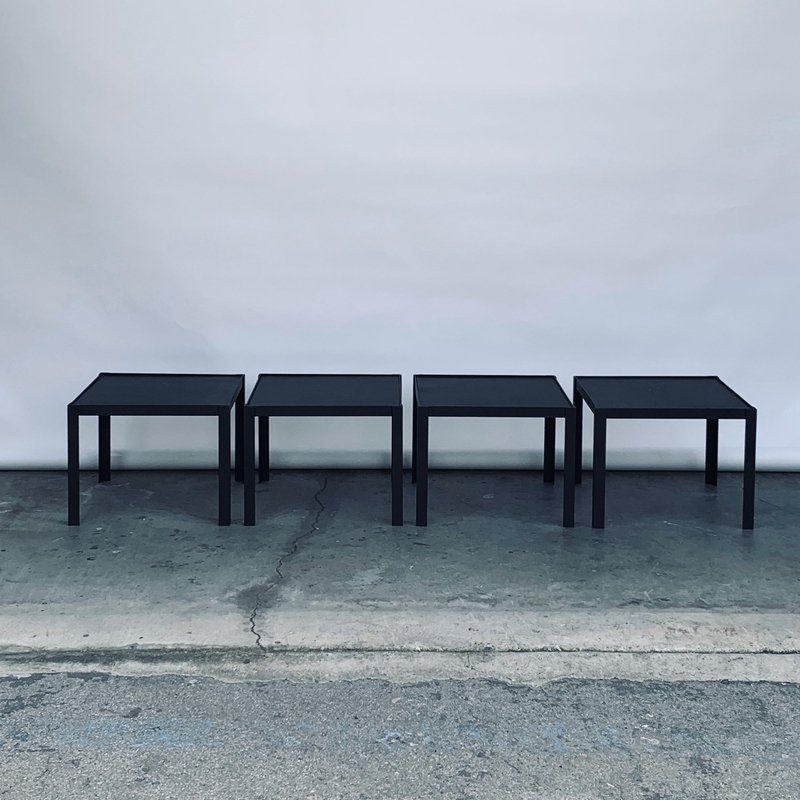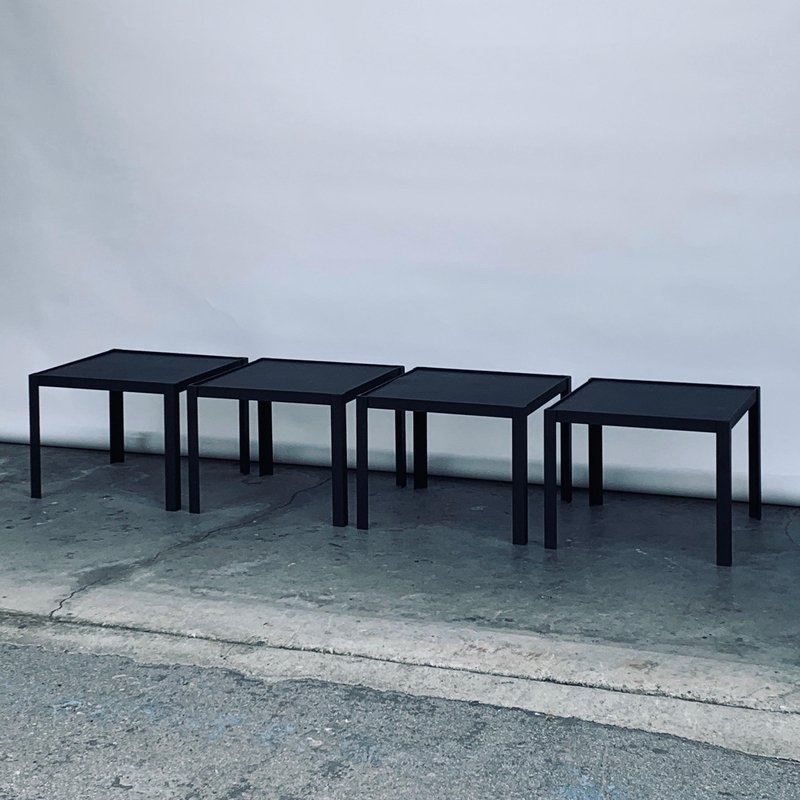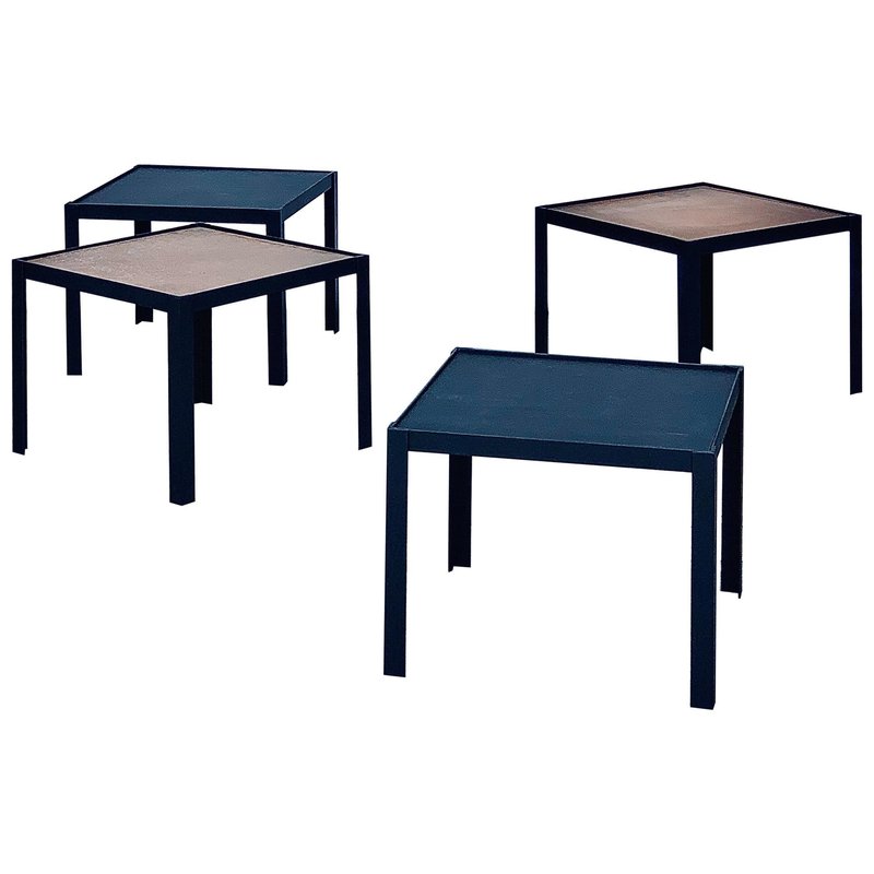 Pion Black Leather and Patinated Brass Occasional Tables by Atelier Cabanel, Set of 4