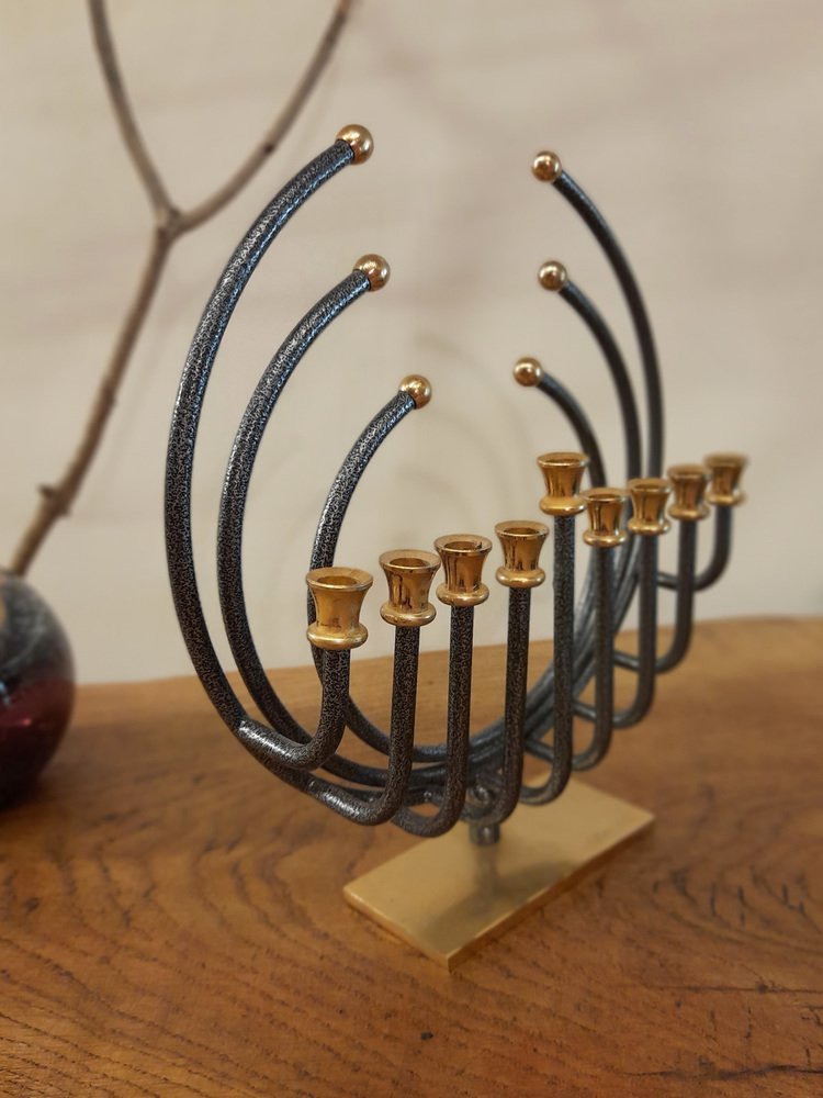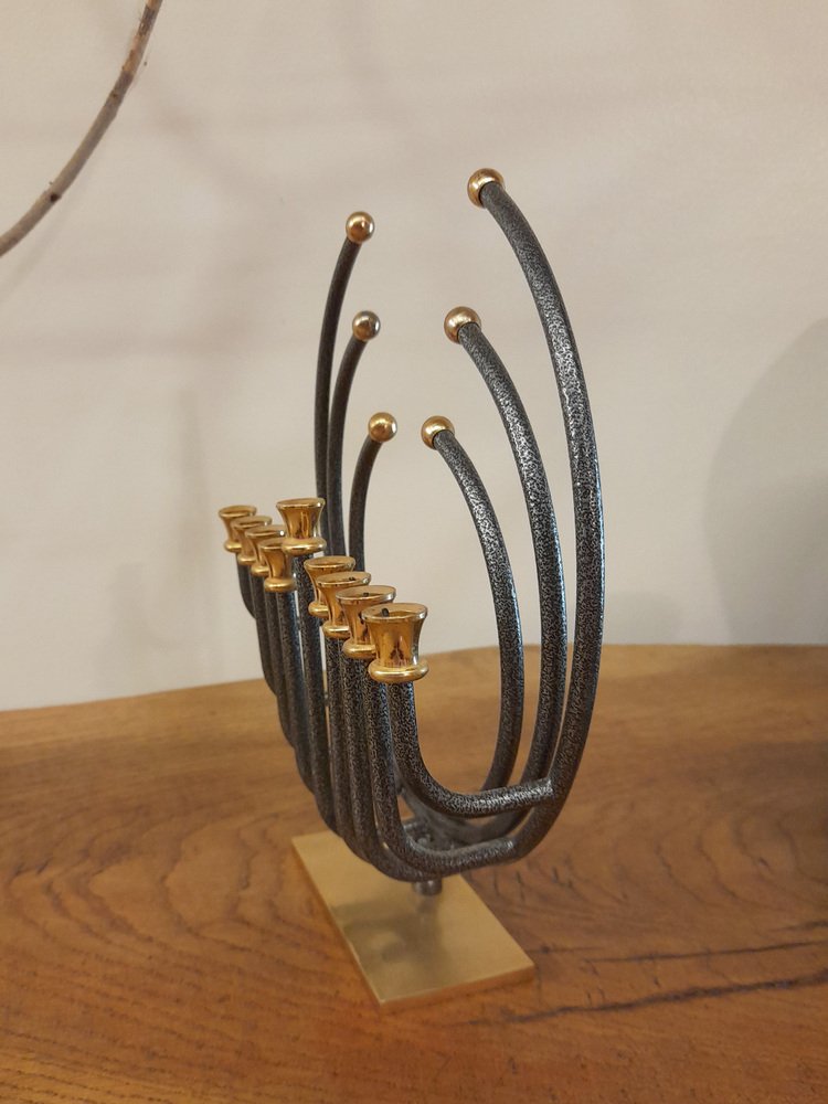 Plated Gold and Silver Plated by Karshi for Menarah Hanukia, Israel, 1970s