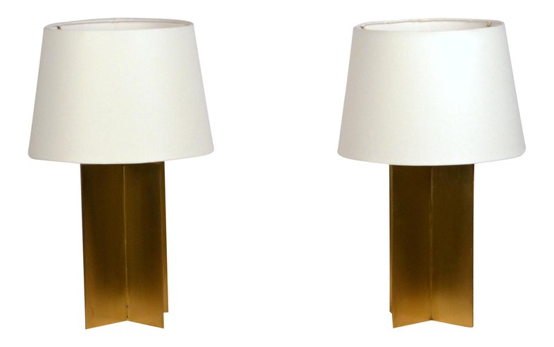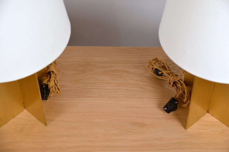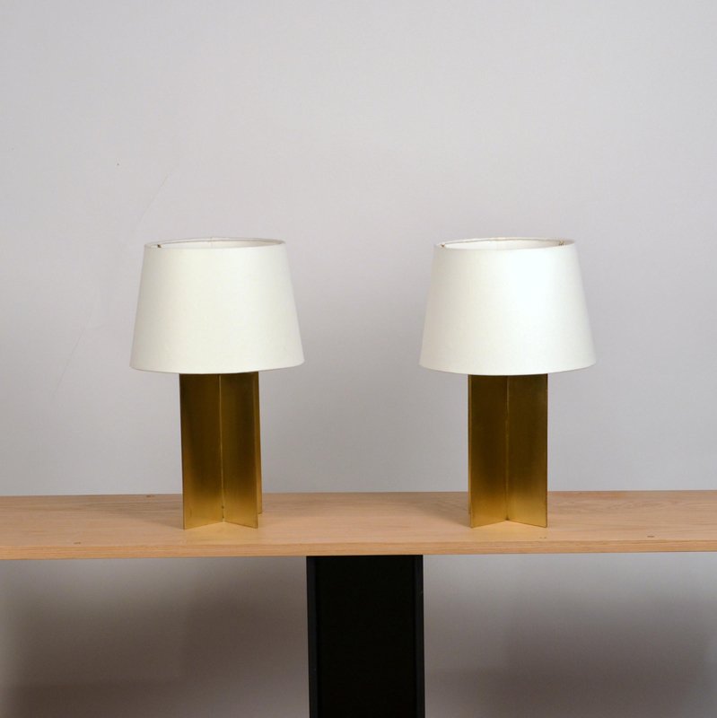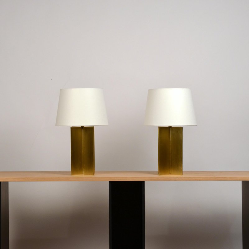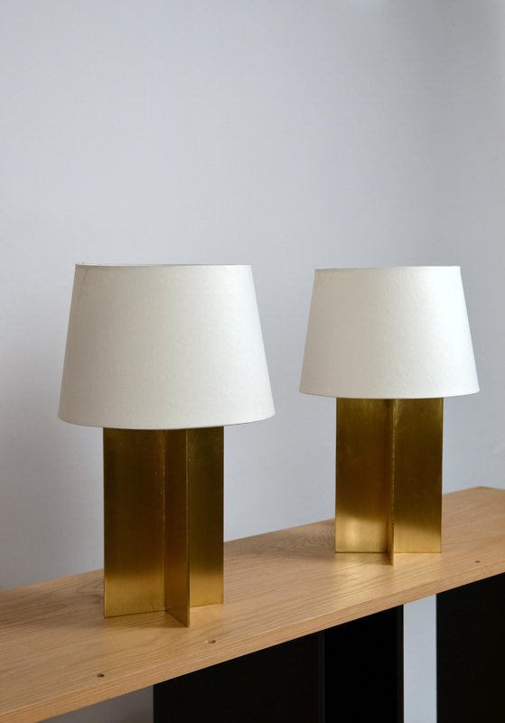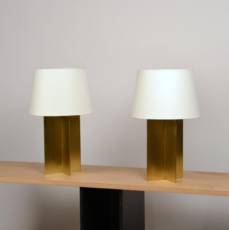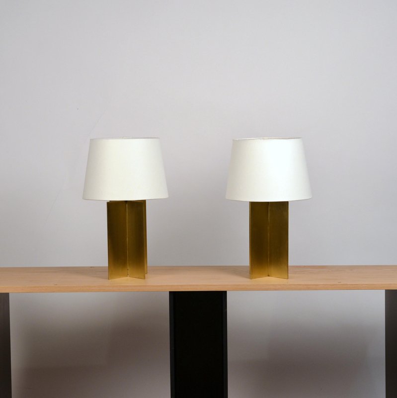 Polished Brass and Parchment Paper Table Lamps by Atelier Cabanel, Set of 2