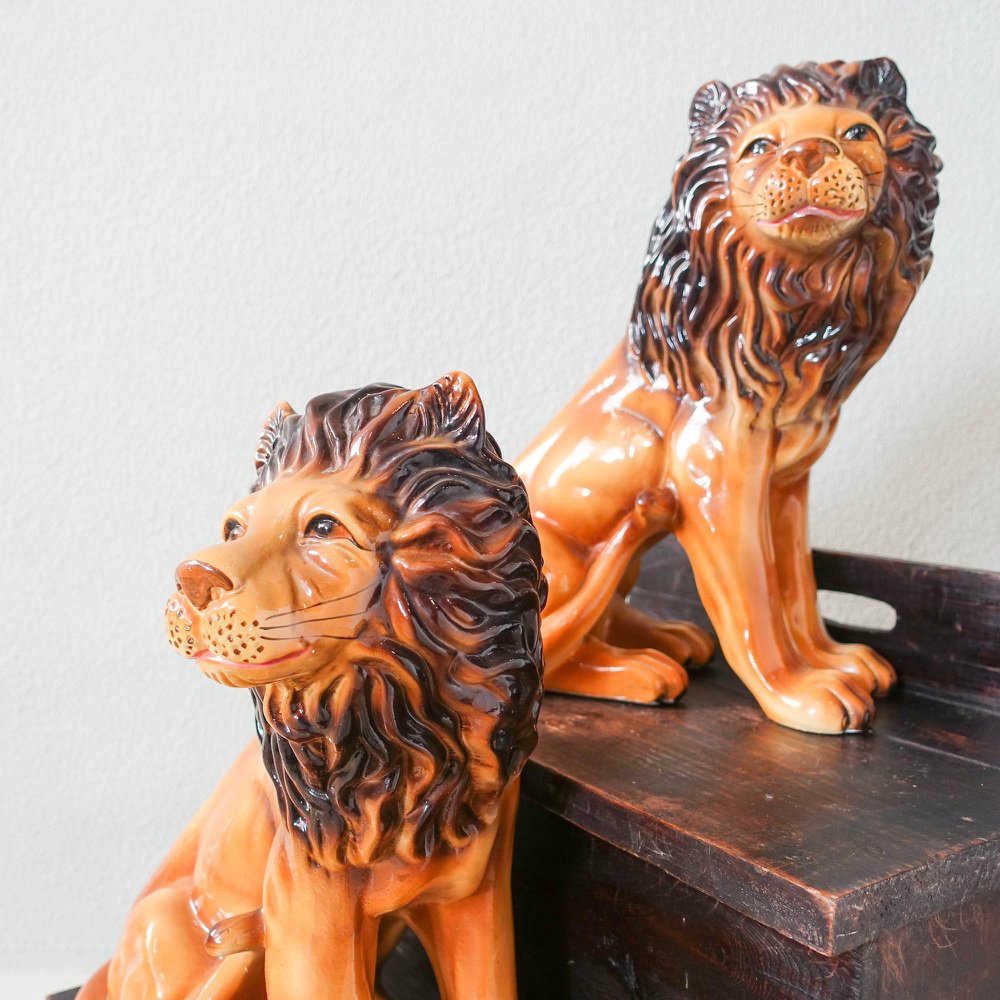 Portuguese Ceramic Lion Decorative Sculptures, 1970s, Set of 2