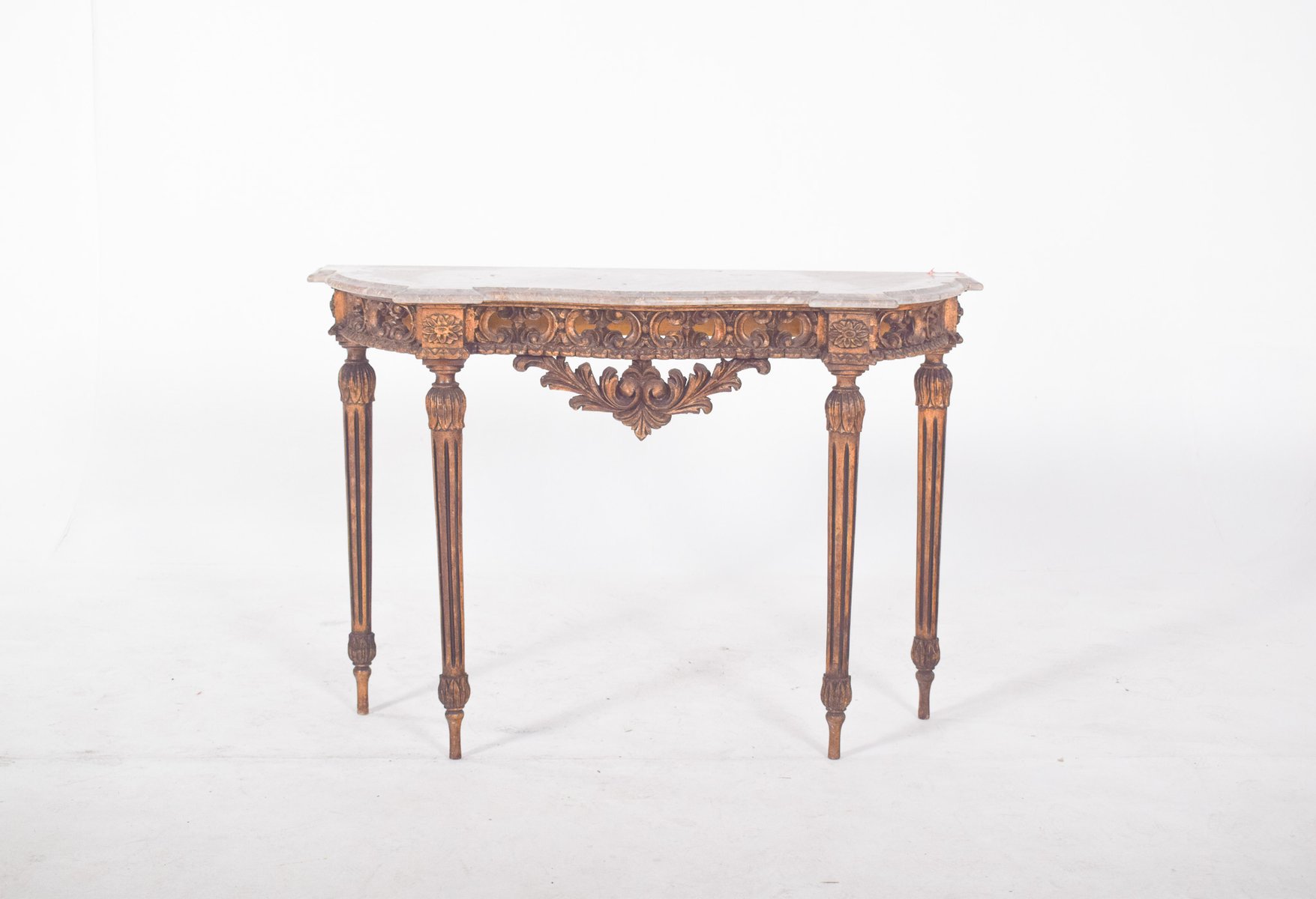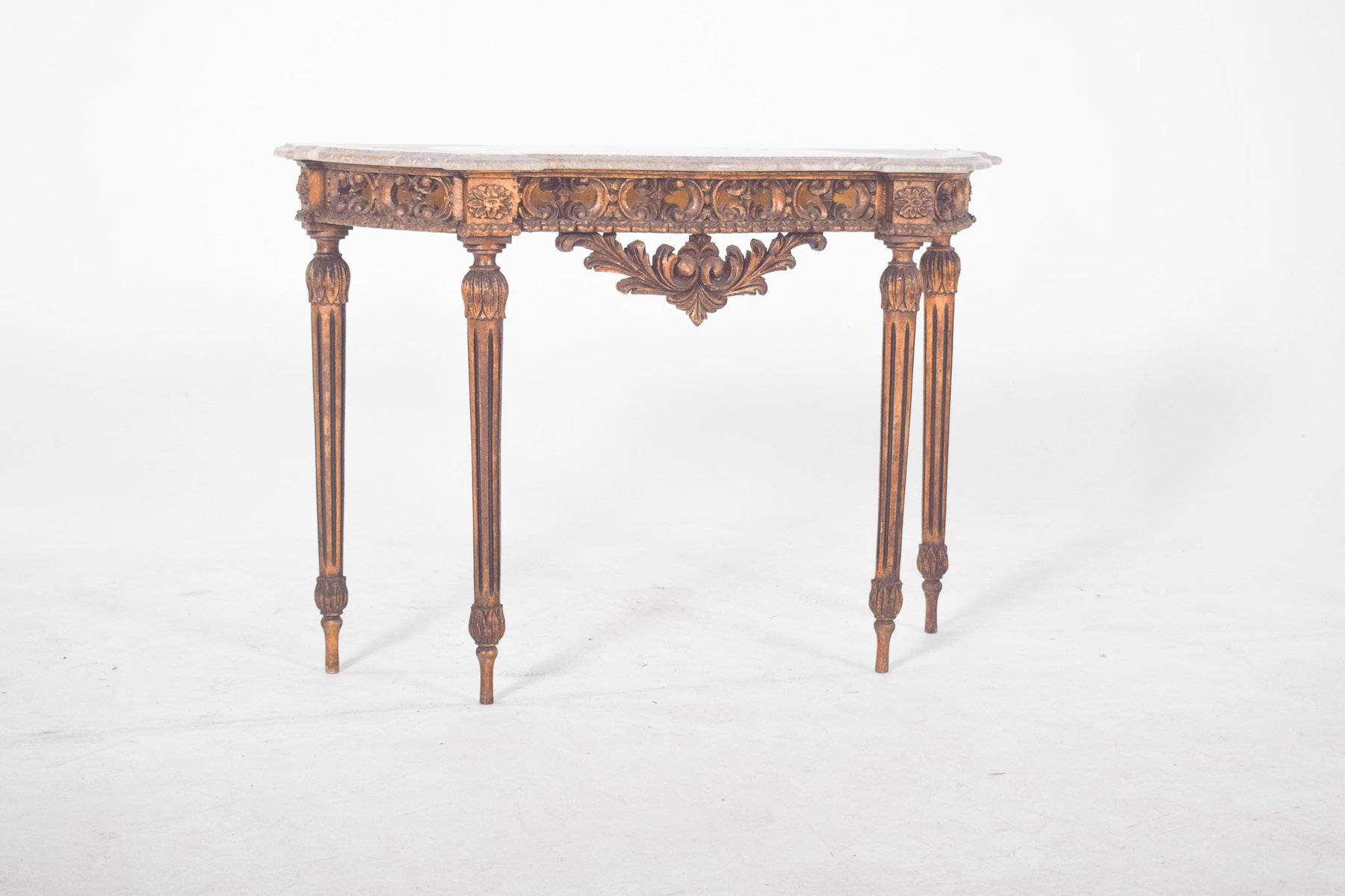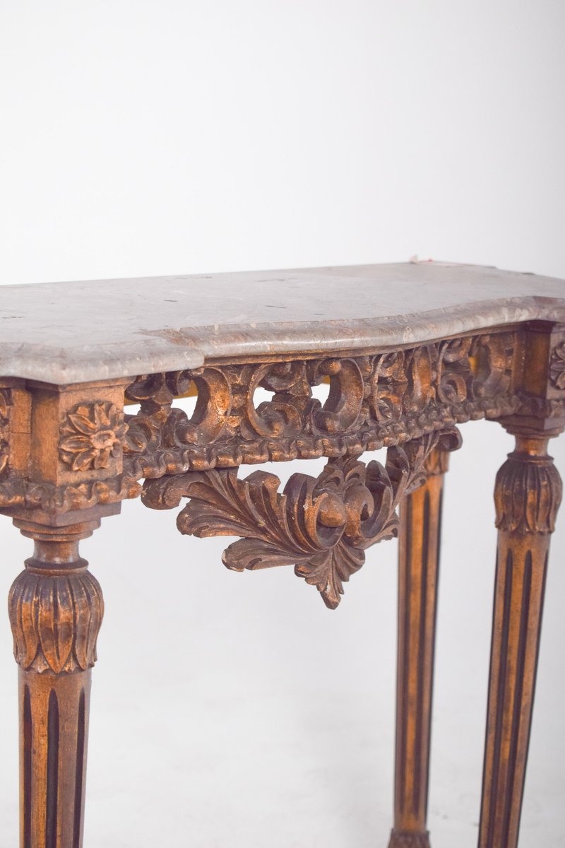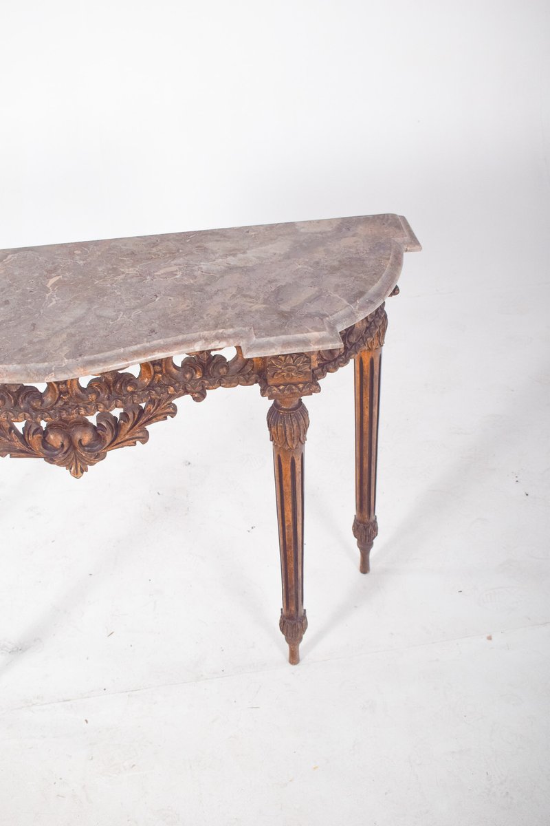 Portuguese Gilded Carving Side Table with Marble Top, 1920s