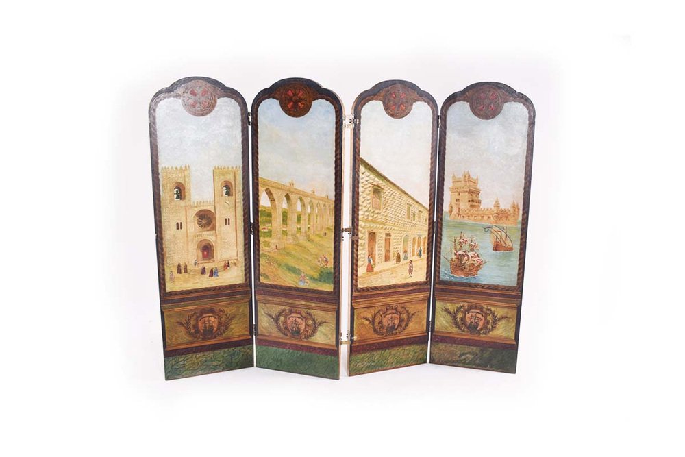 Portuguese Hand Painted Dressing Screen, 1850s