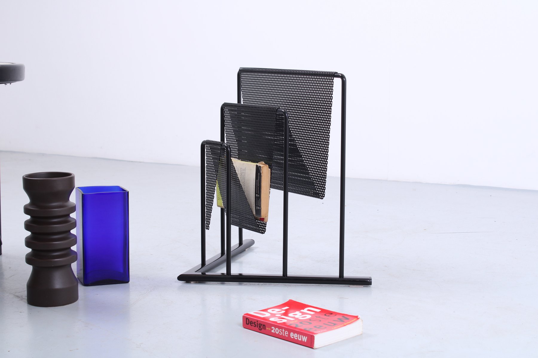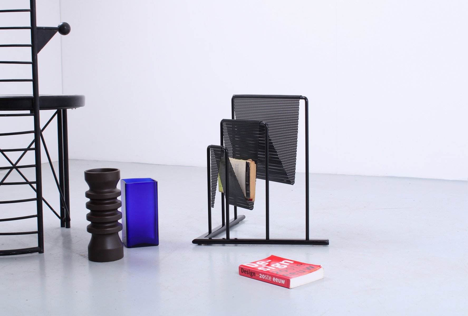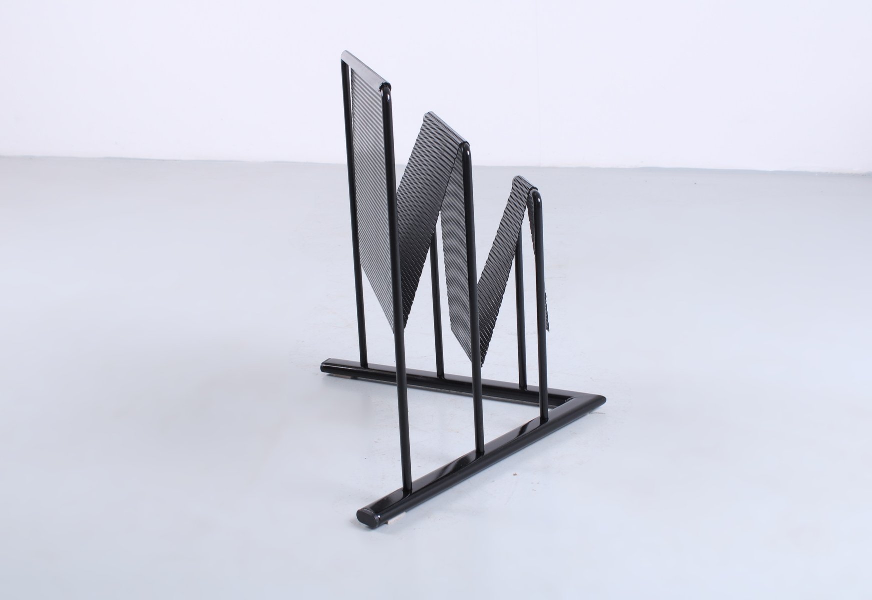 Postmodern Black Perforated Metal Magazine Rack by Markus Börgens for D-Tec, 1980s