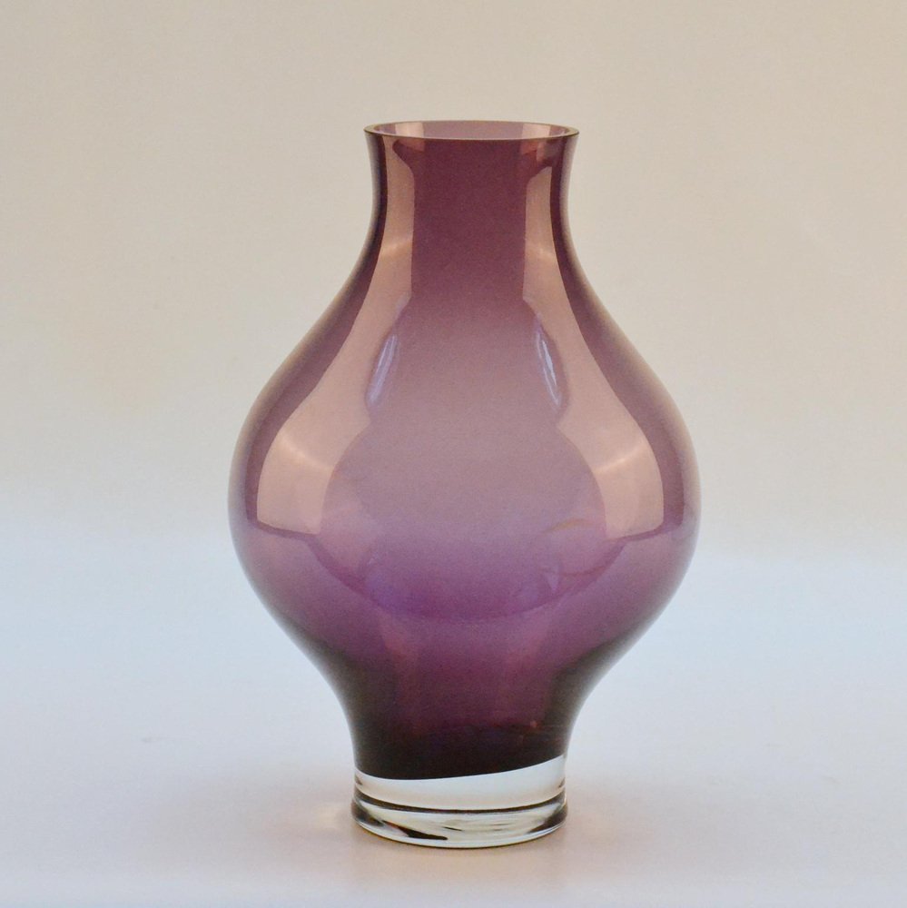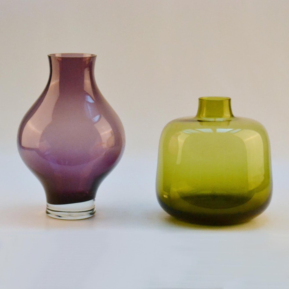 Purple and Olive Green Hand Blown Vases by Leerdam, 1960s, Set of 2