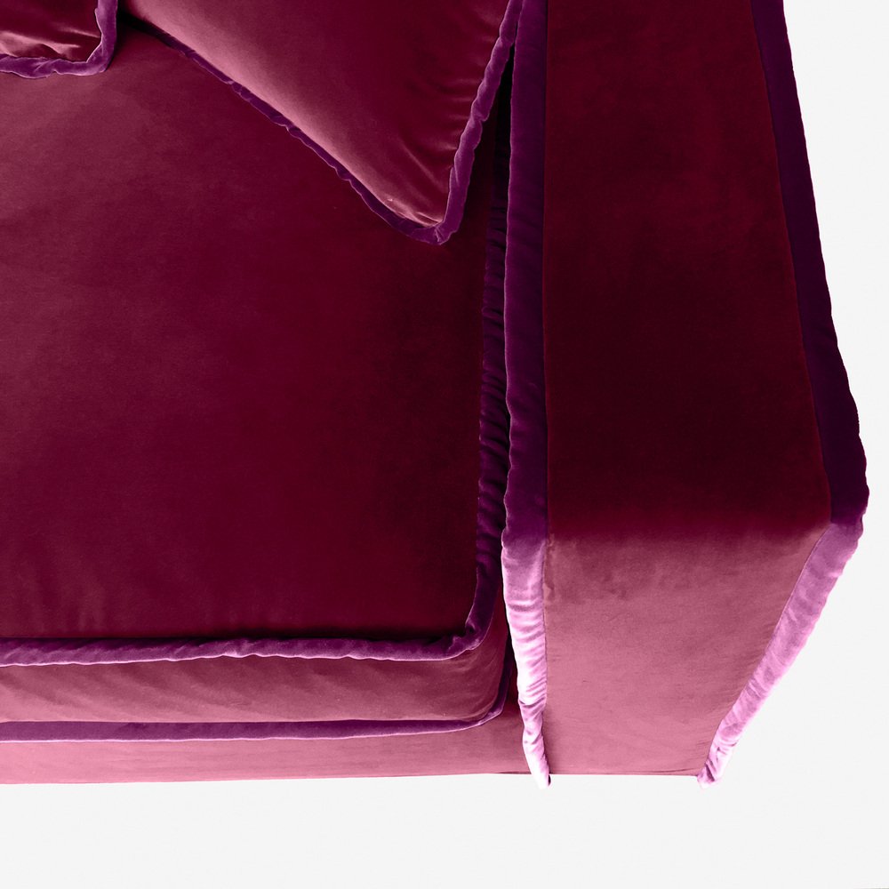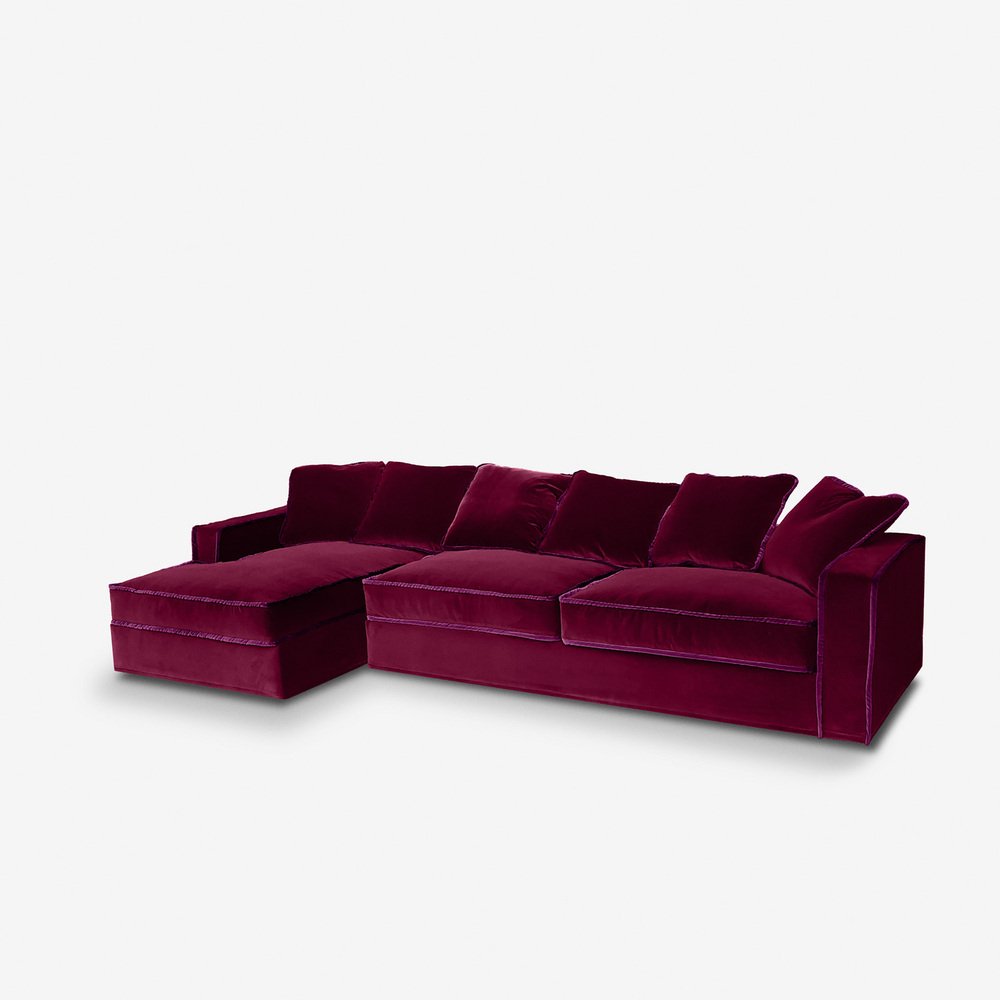Rafaella Chaise Sofa in Burgundy Velvet with Purple Trim from Biosofa