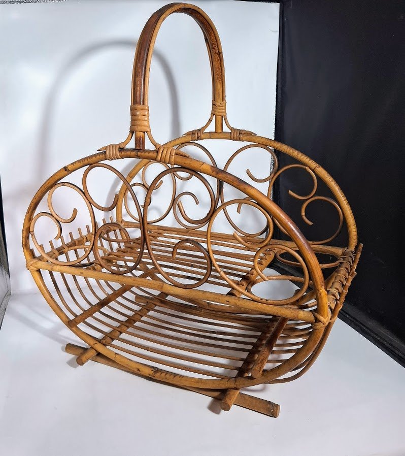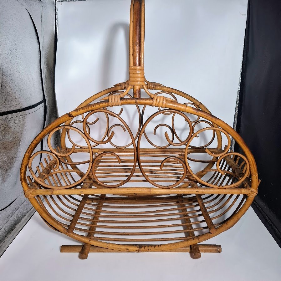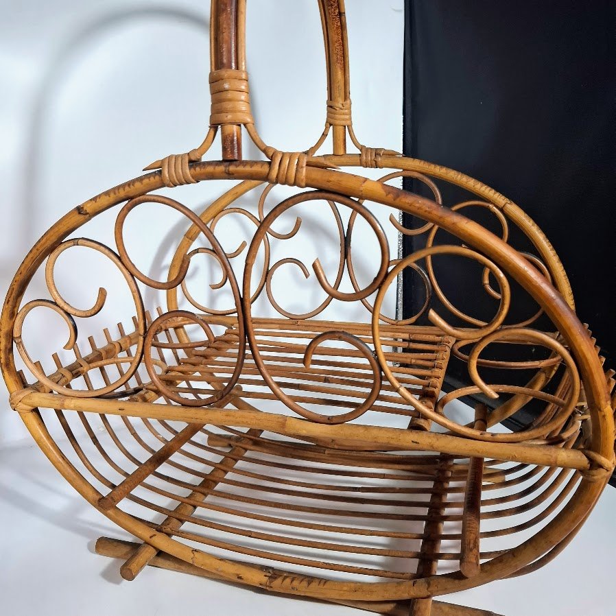 Rattan and Bamboo Magazine Rack in the style of Franco Albini, 1960s