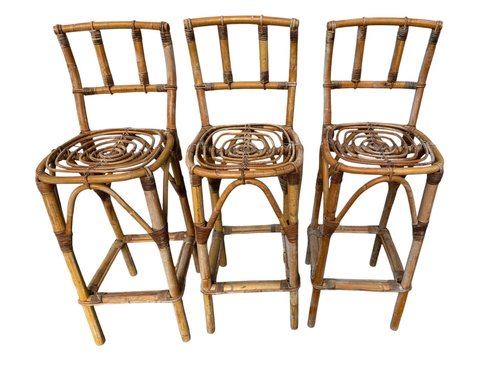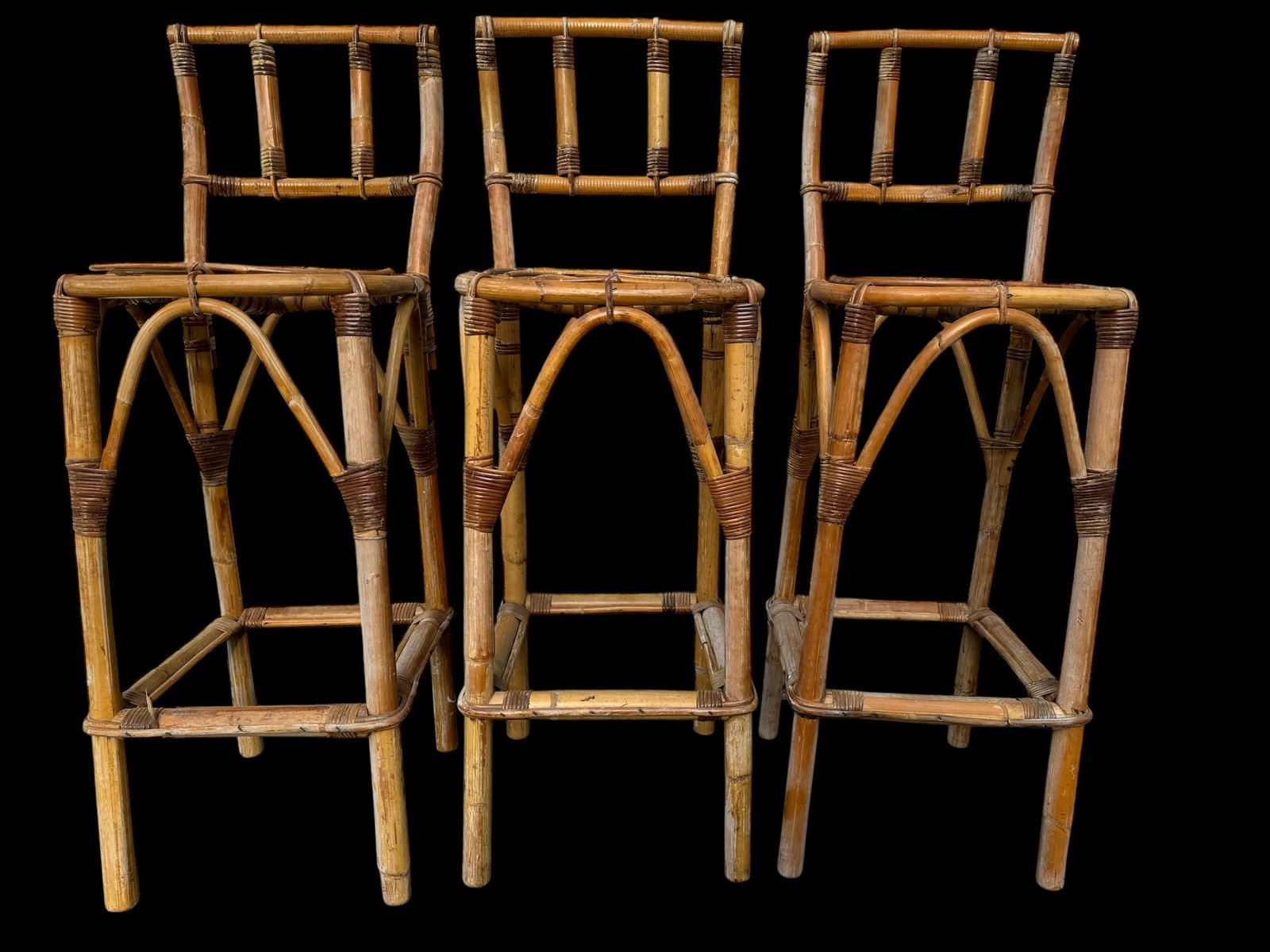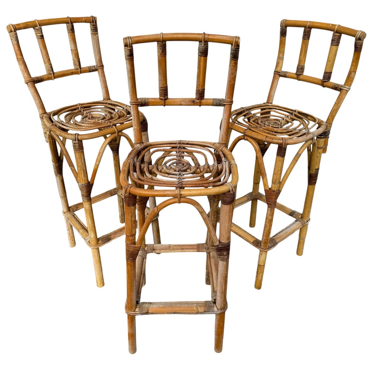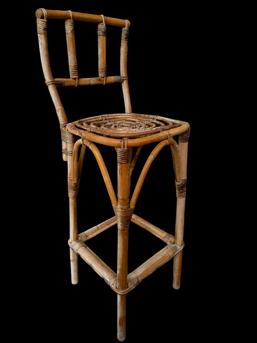 Rattan Bar Stools, 1960s, Set of 3