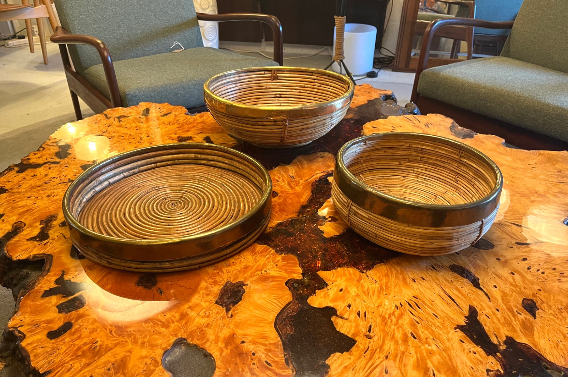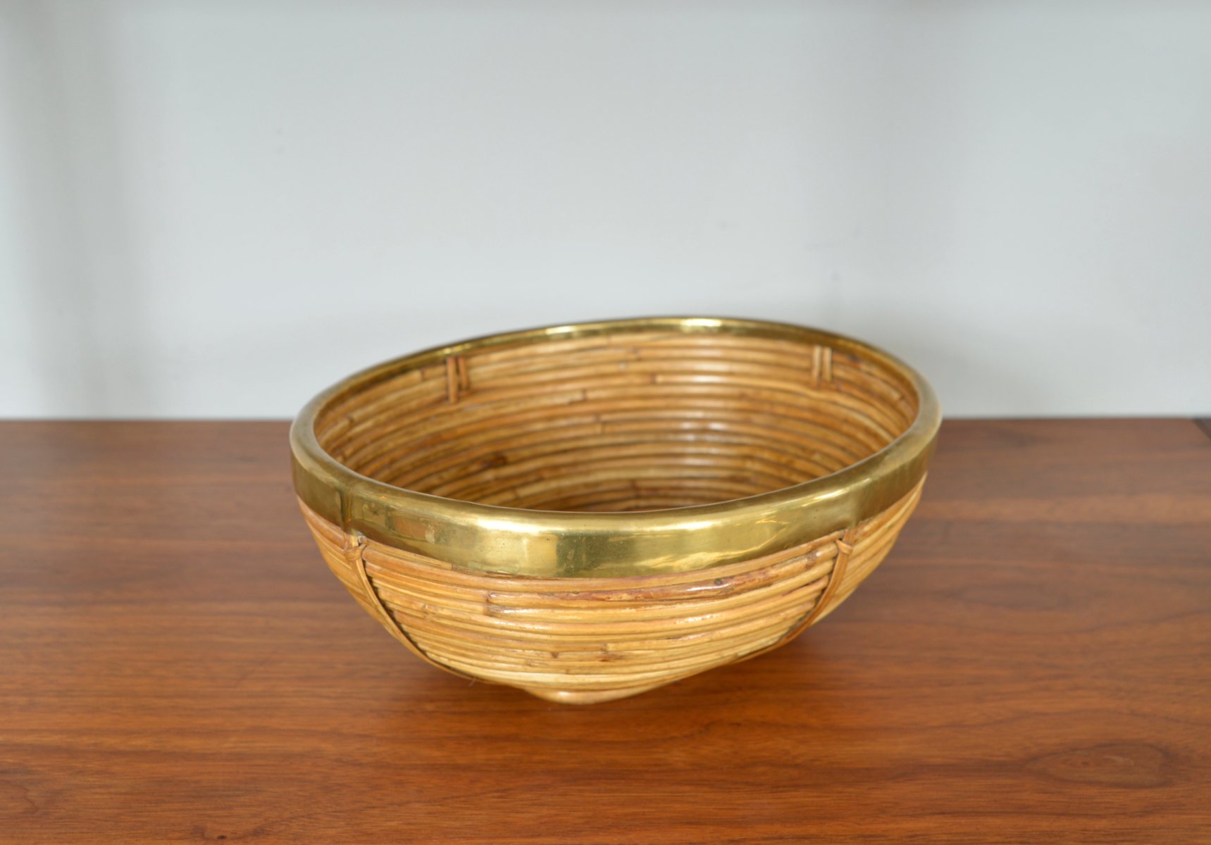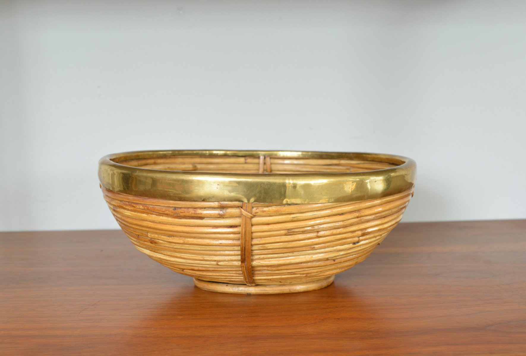 Rattan Cane and Brass Basket Centrepiece attributed to Vivai del Sud, Italy, 1970s