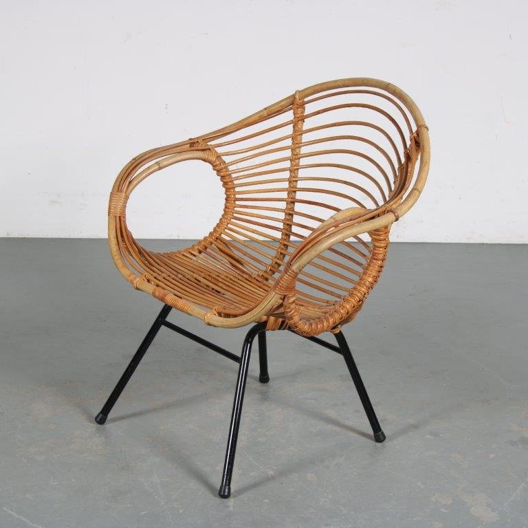 Rattan Easy Chair by Rohé Noordwolde, the Netherlands, 1950s