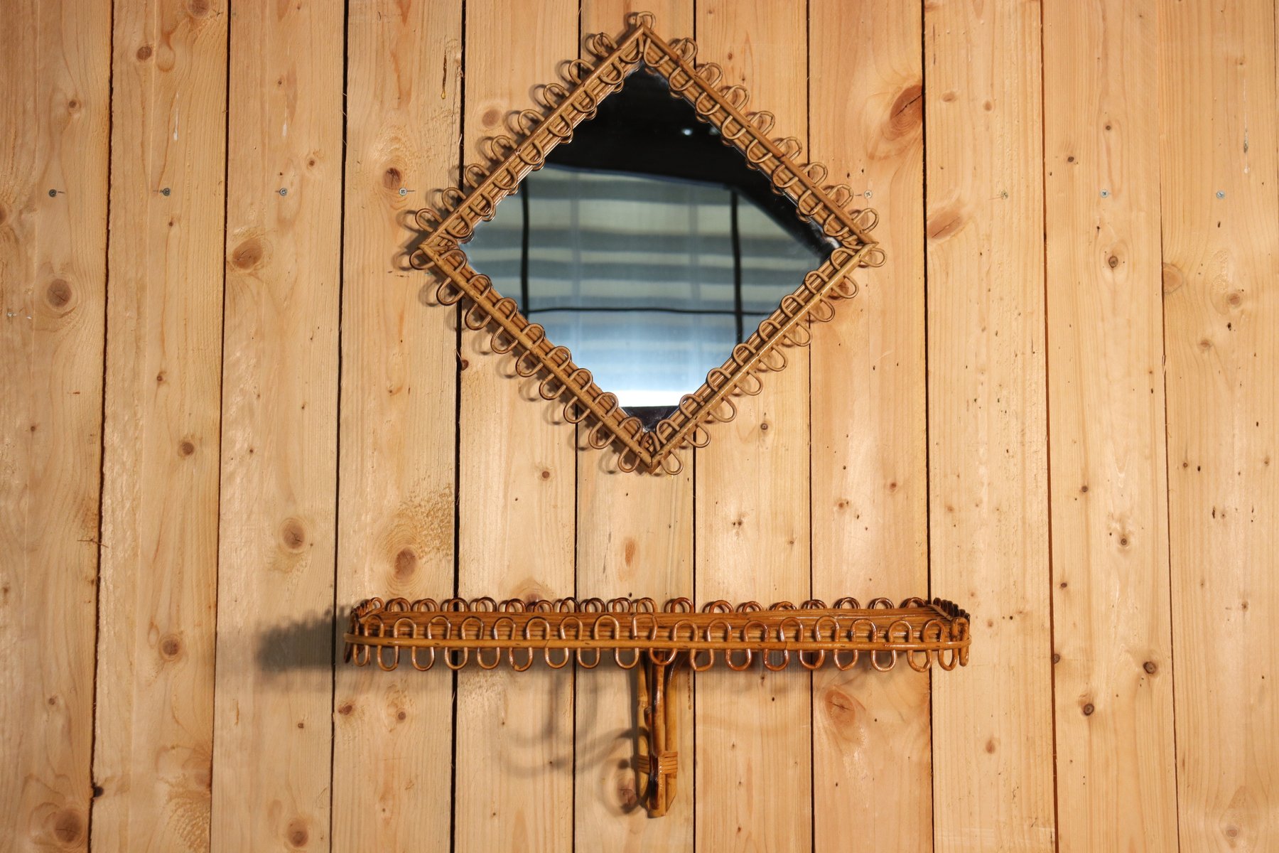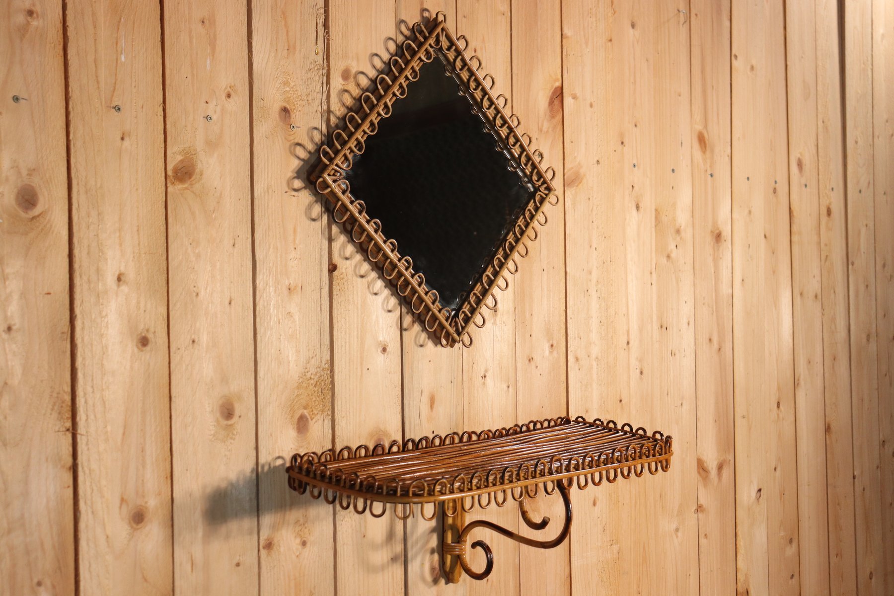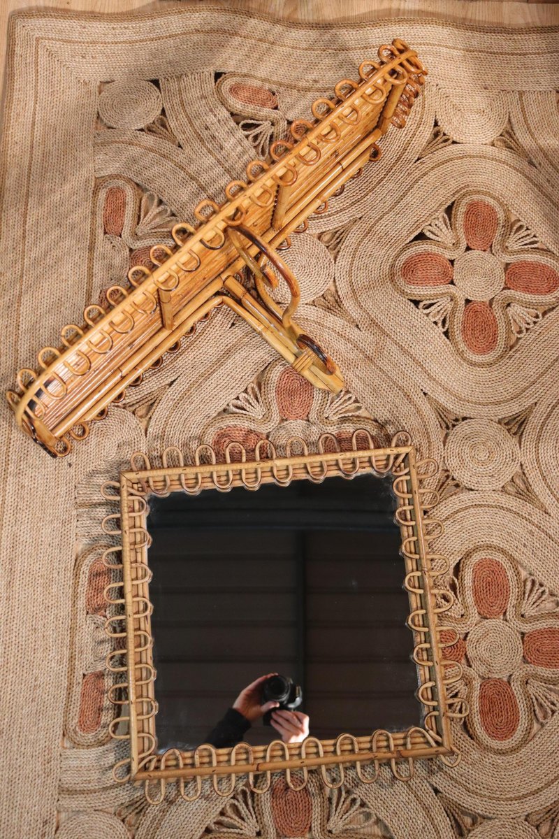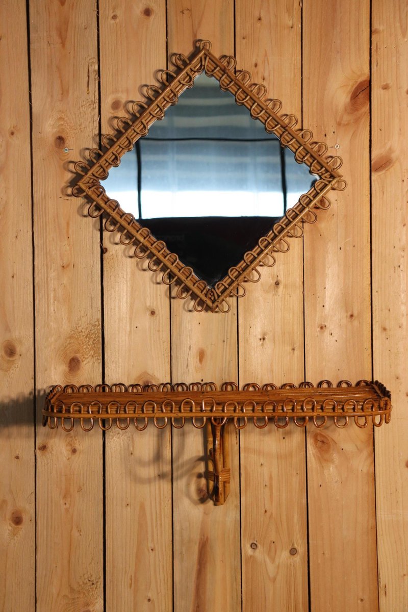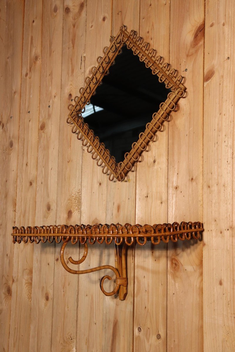 Rattan Mirror and Wall Table by Franco Albini, 1960, Set of 2