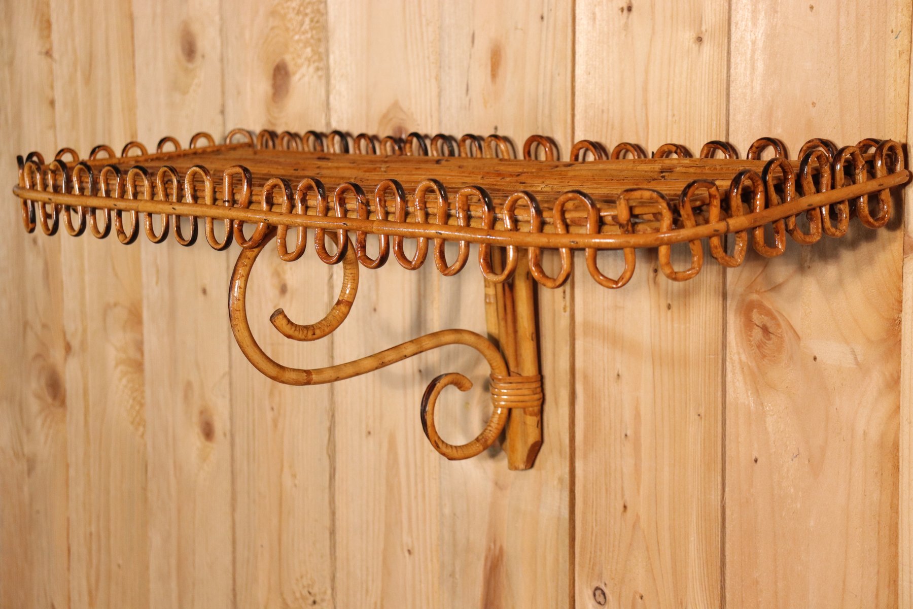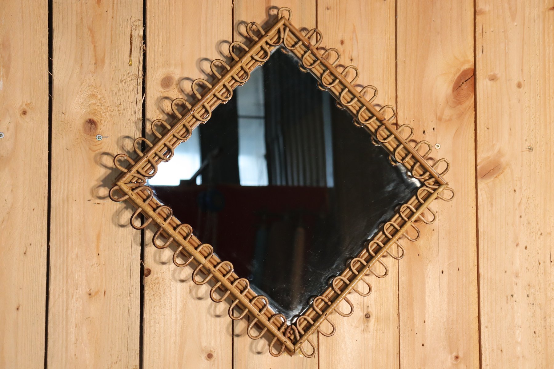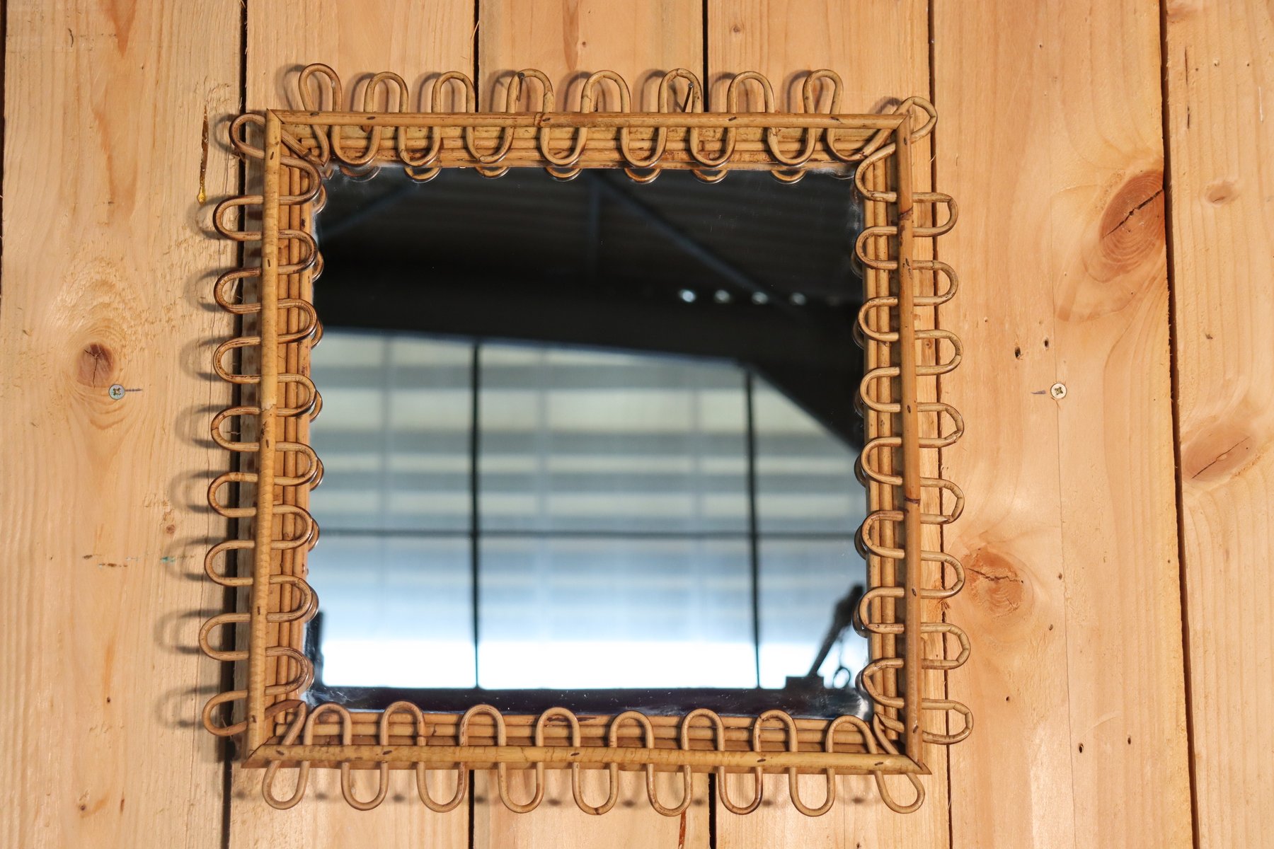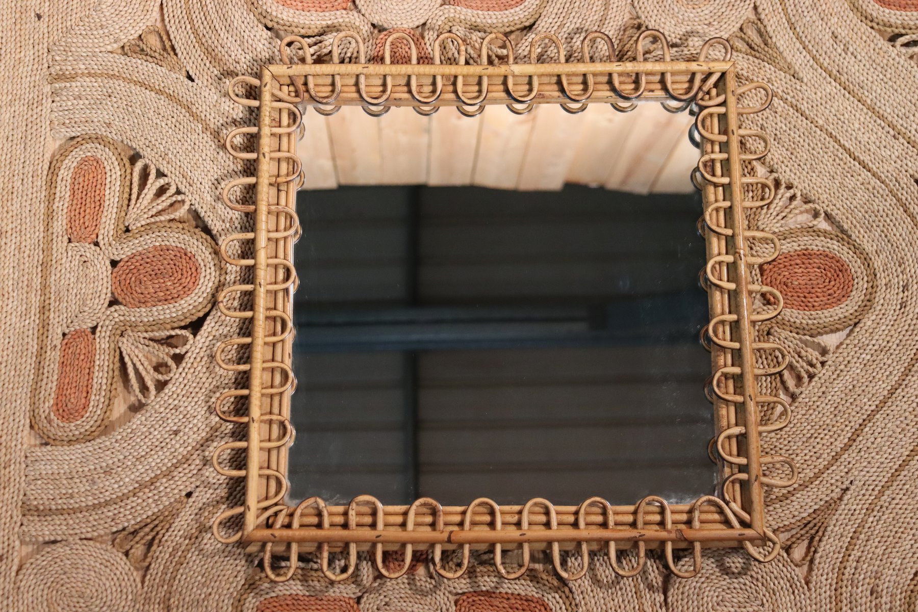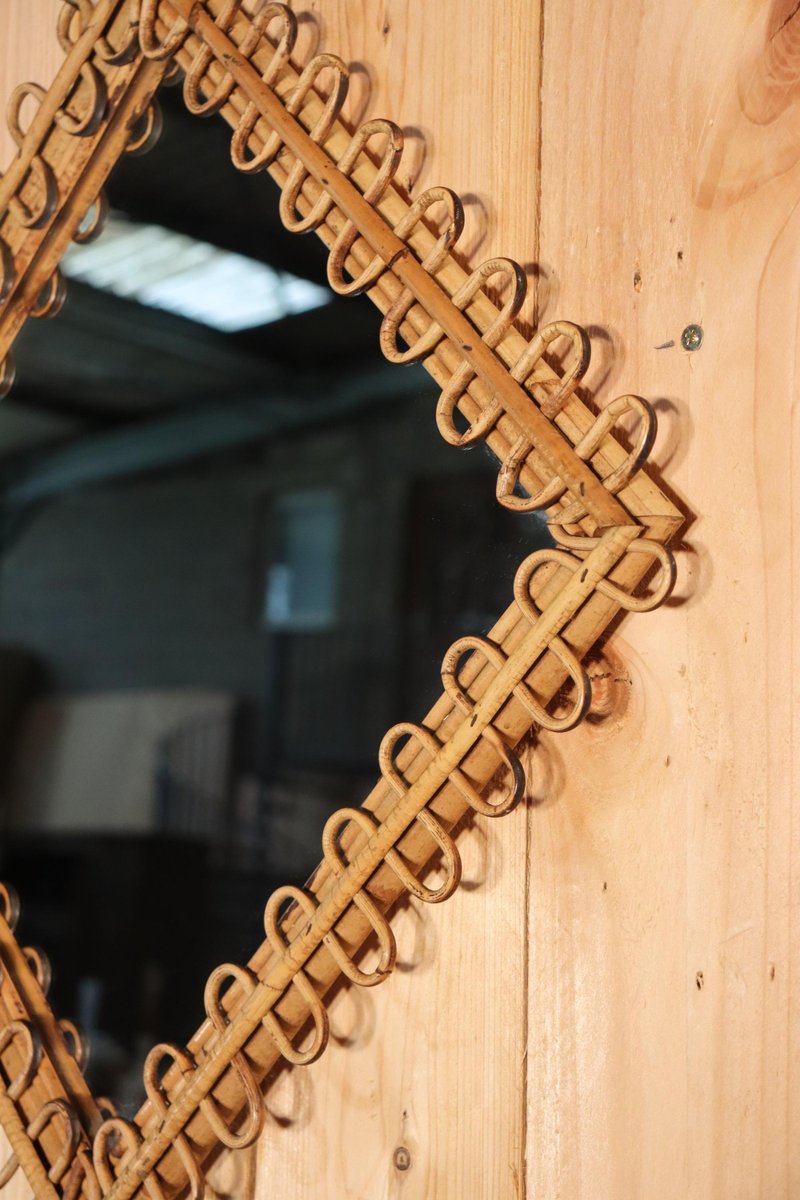 Rattan Mirror and Wall Table by Franco Albini, 1960, Set of 2