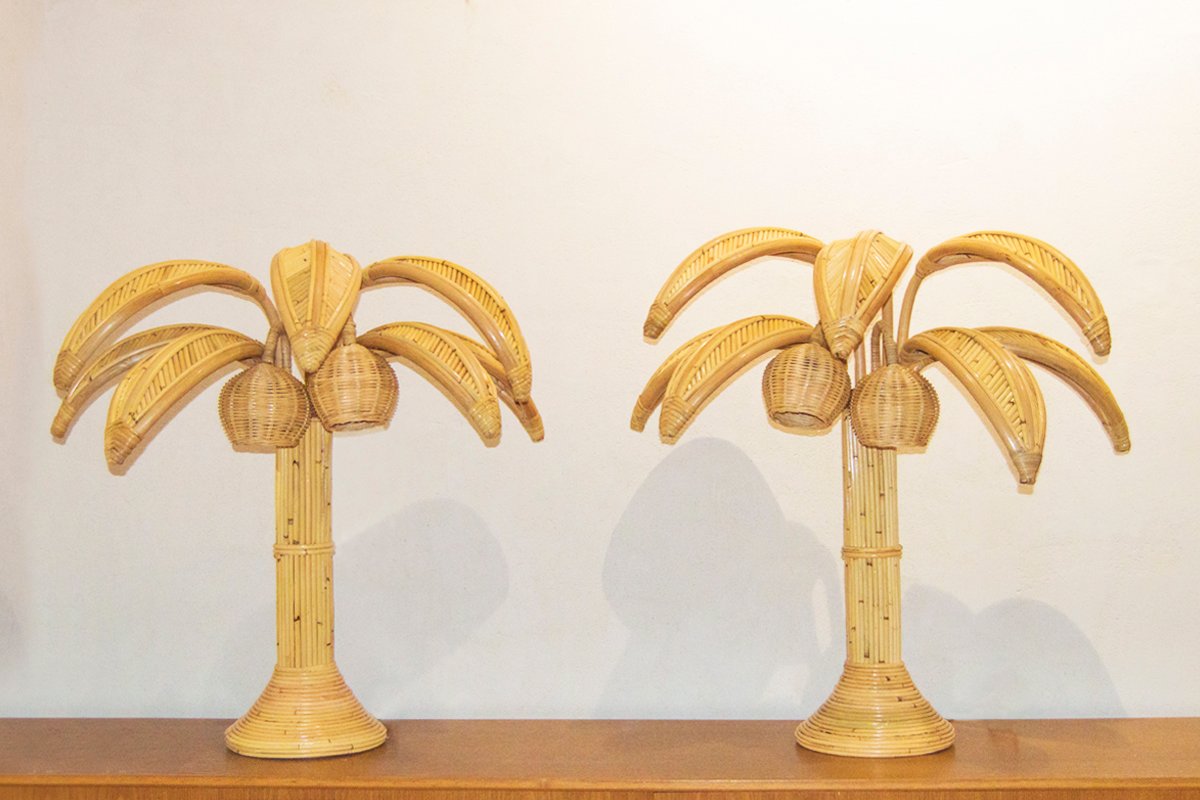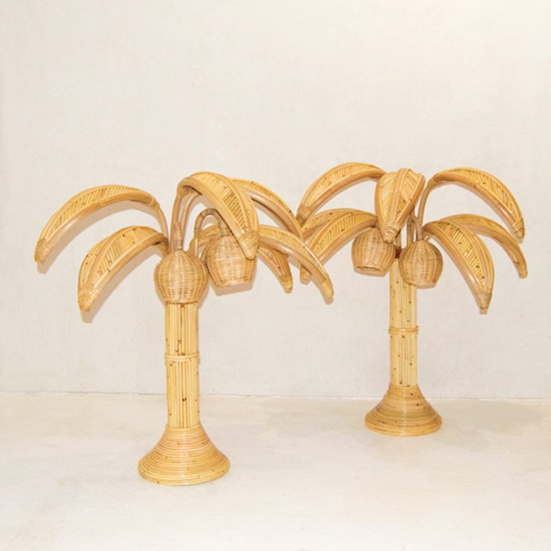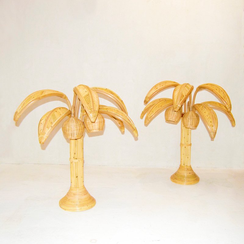 Rattan Palm Table Lamps, Set of 2