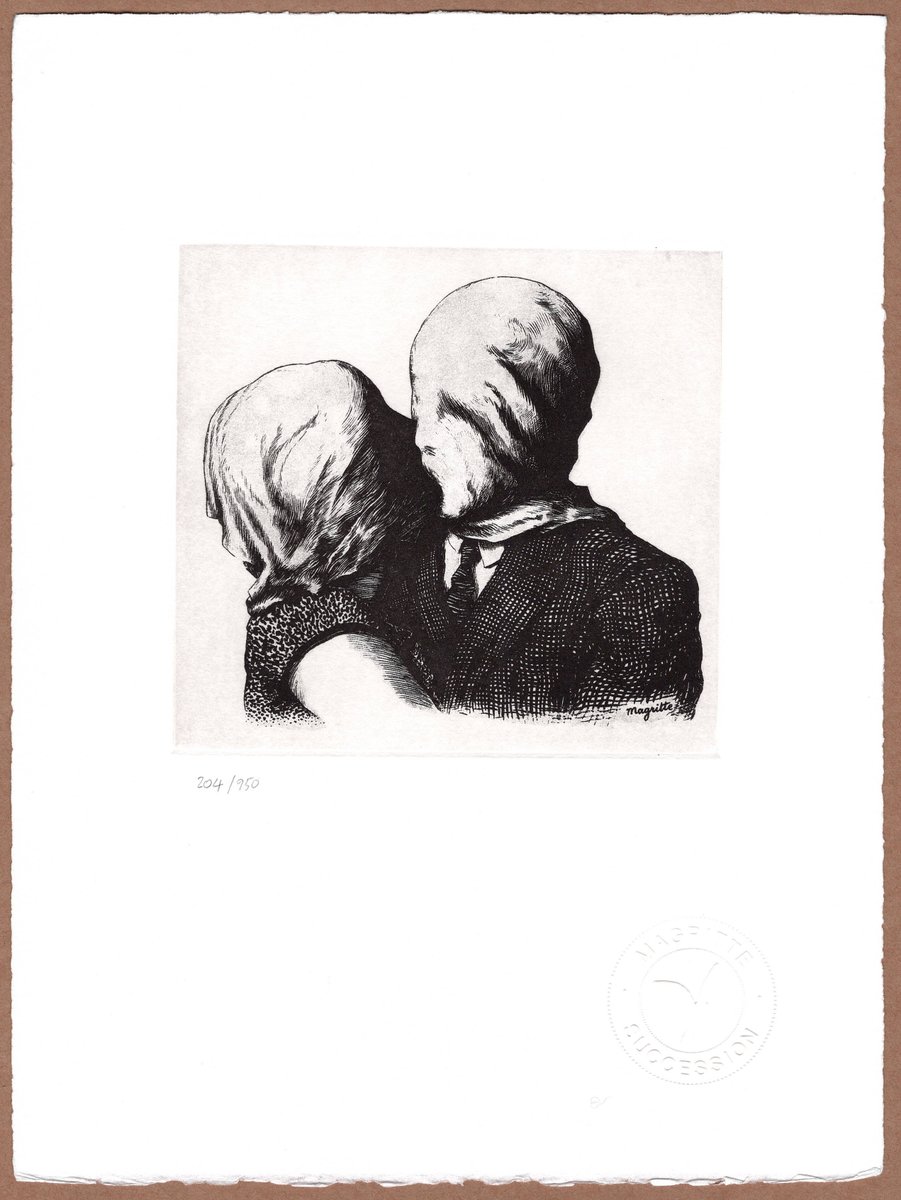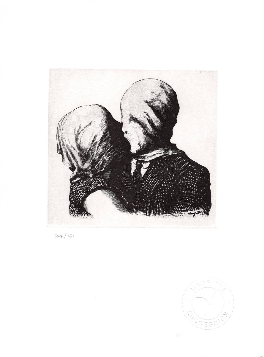 In the absence of any prescribed meaning, the fascination of his enigmatic work endures, requiring the viewer’s active participation. The cloth shrouding the faces of the couple transcends its material existence. On the one hand, its presence is an act of concealment, a deliberate obscuring of the recognizable; on the other, it is an invitation to delve into the concealed. It becomes a paradox, compelling us to grapple with Magritte’s intention and the elusive nature of love itself.