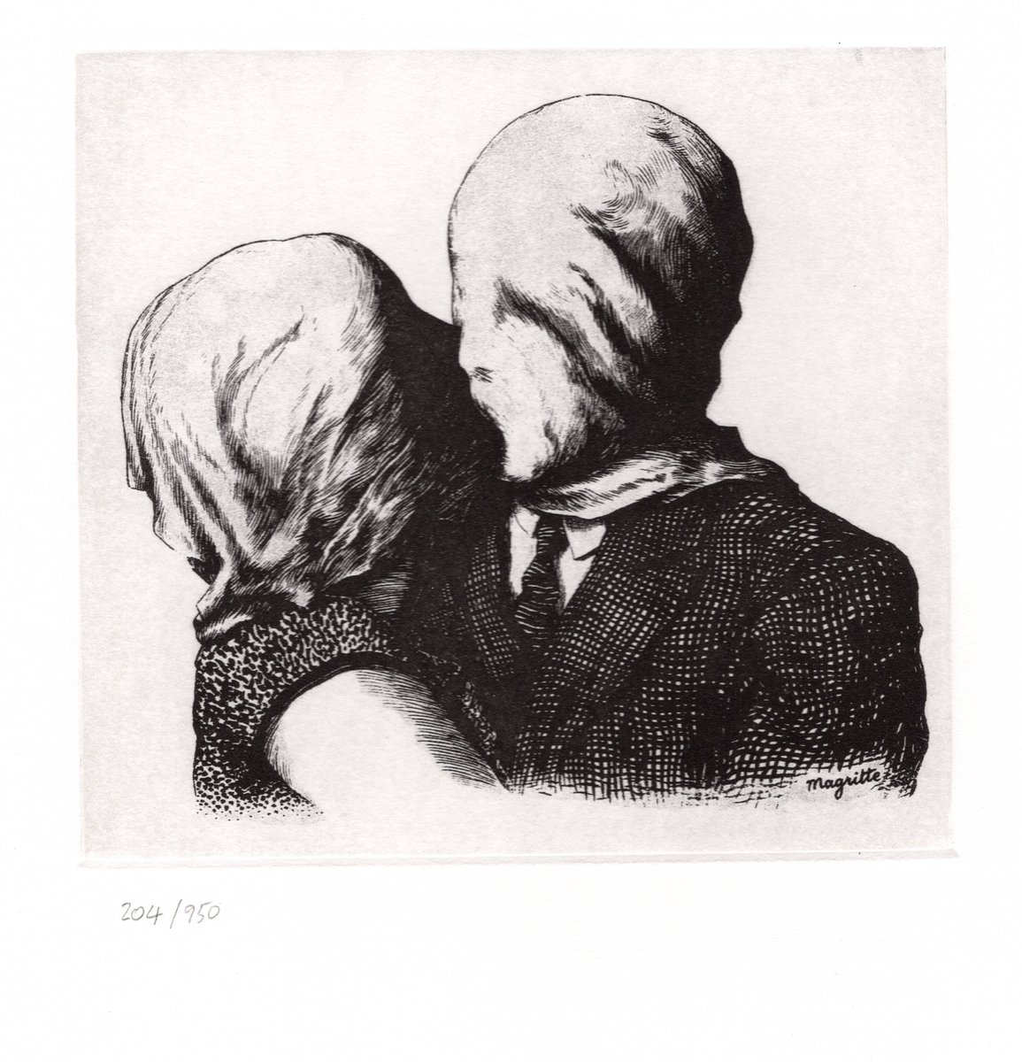 This is an original etching by Belgian surrealist artist René Magritte, printed in 2003 in a numbered edition of 950 only under the supervision of the Succession Magritte (the Estate of Magritte).