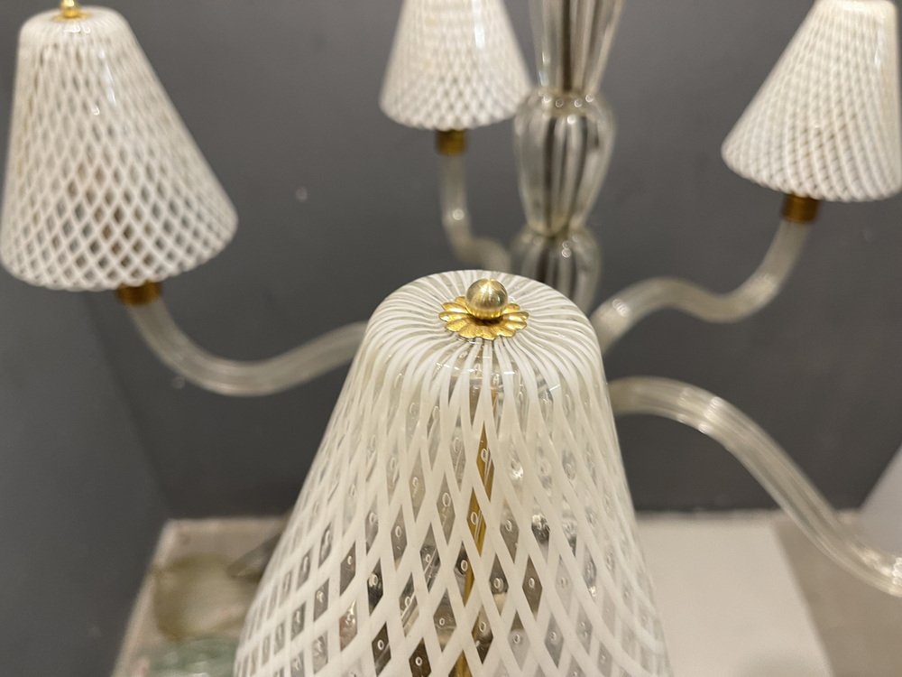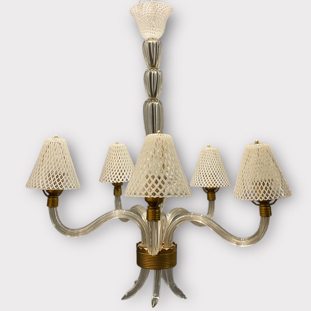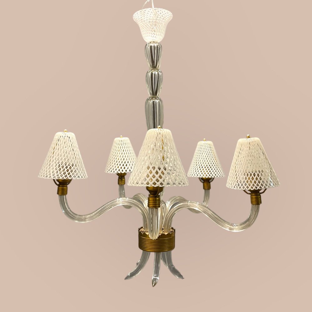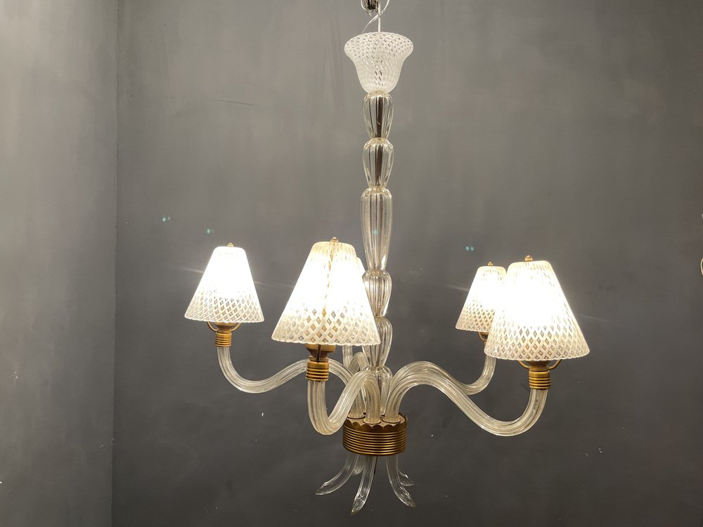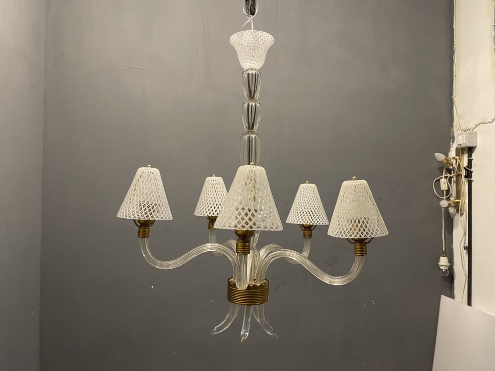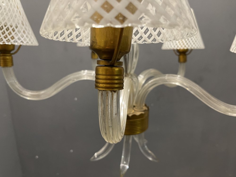 Venetian Murano Glass Clear Pink Chandelier, 1960s