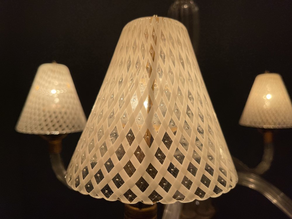 White Murano Glass Table Lamps, 1980s, Set of 2