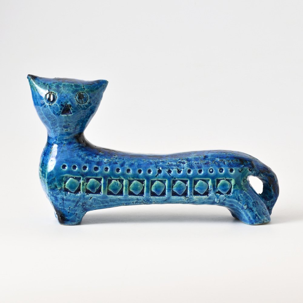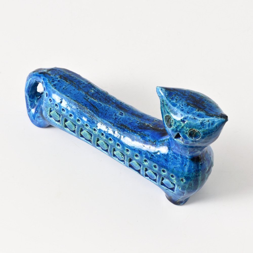 After World War II, master ceramist Aldo Londi (1911-2003) became the creative director of Bitossi Ceramiche, a position he held for more than fifty years. Londi—who was also from Montelupo—began apprenticing in ceramics at the age of eleven and brought to Bitossi a deep expertise in traditional ceramics production. He’s best known for his 1950s-era collection Rimini Blu (1955-1965). This iconic midcentury modern series contains over 150 designs, including bowls, vases, jugs and animal figurines, all glazed in a vibrant blue hue and embossed with abstract motifs and shapes. Londi created the first piece glazed in Persiano Blue, Ball Vase, in 1955. Shortly after in 1959, he began to create more pieces in the proprietary chromatic glaze. The collection holds historical importance because it helped to bring handcrafted and expressive works into the modernist design conversation in Italy. Though the blue was not the only color Bitossi favored, it has become closely associated with the brand’s identity. The collection is still in production today and widely collected by ceramics enthusiasts.