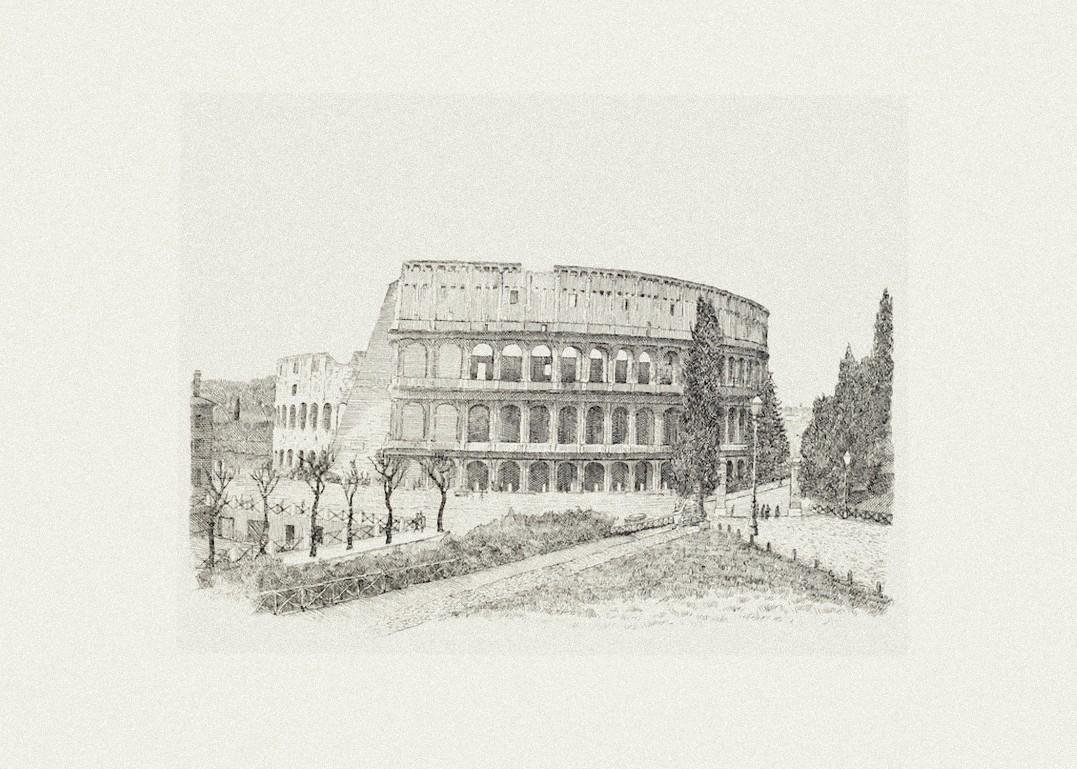 Rome, The Colosseum - Original Etching on Paper by Giuseppe Malandrino - 1970 1970
