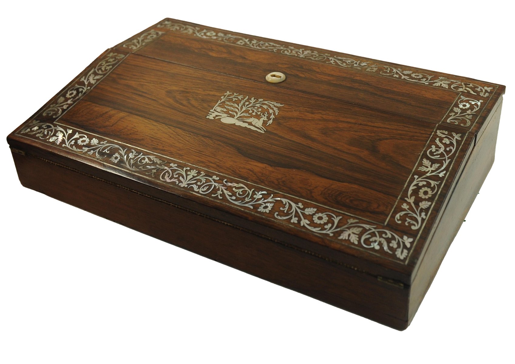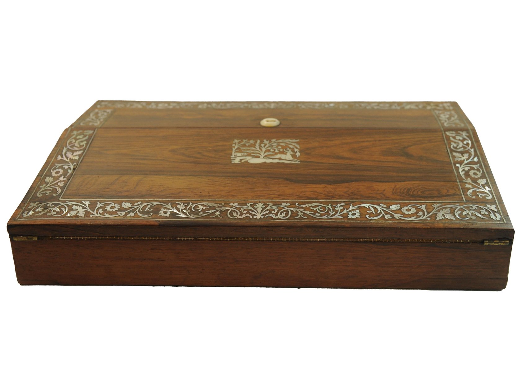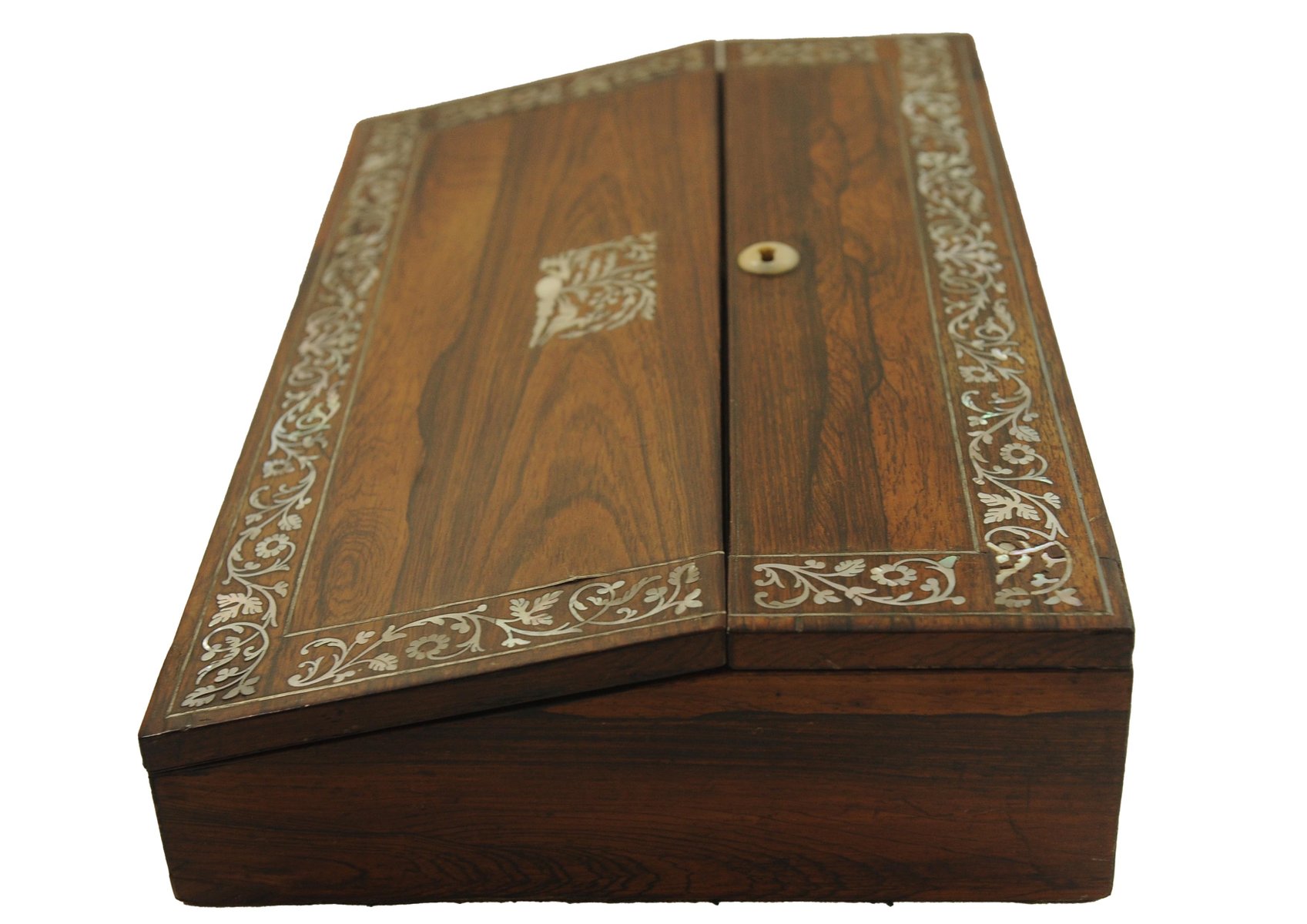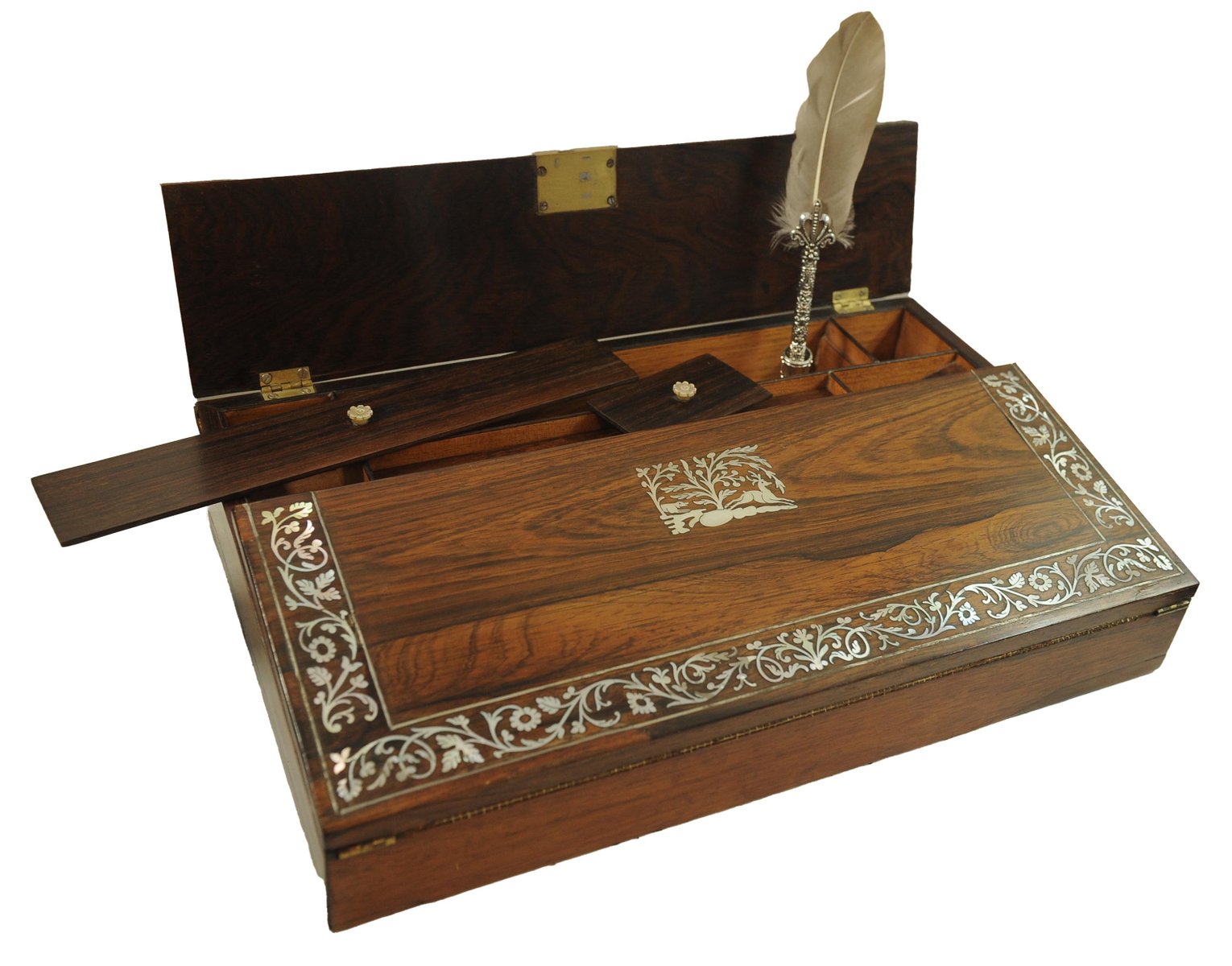 Rosewood Writing Slope with Floral Decor and Inlay, 19th Century, Set of 5