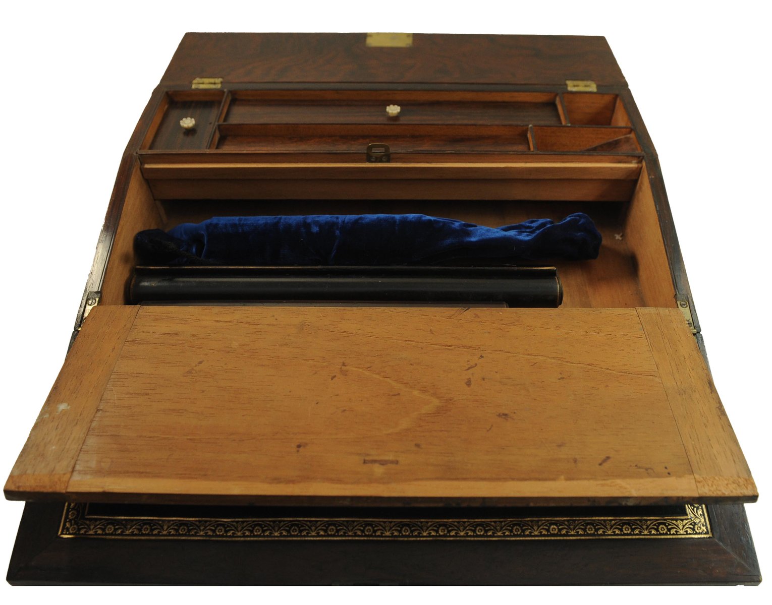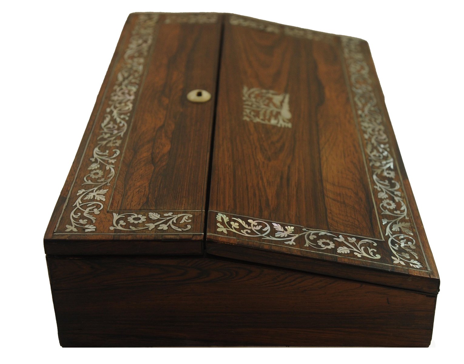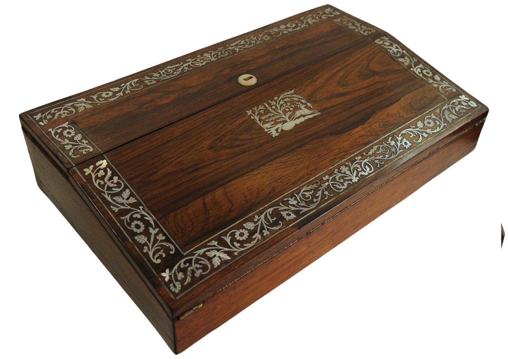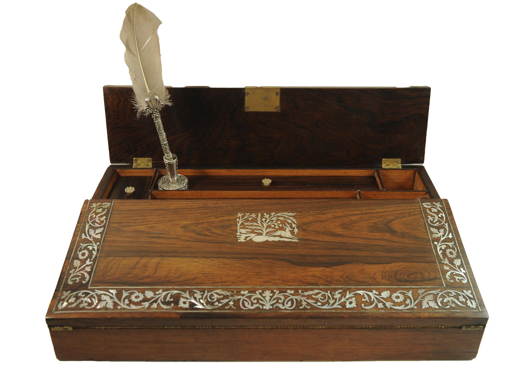 Rosewood Writing Slope with Floral Decor and Inlay, 19th Century, Set of 5