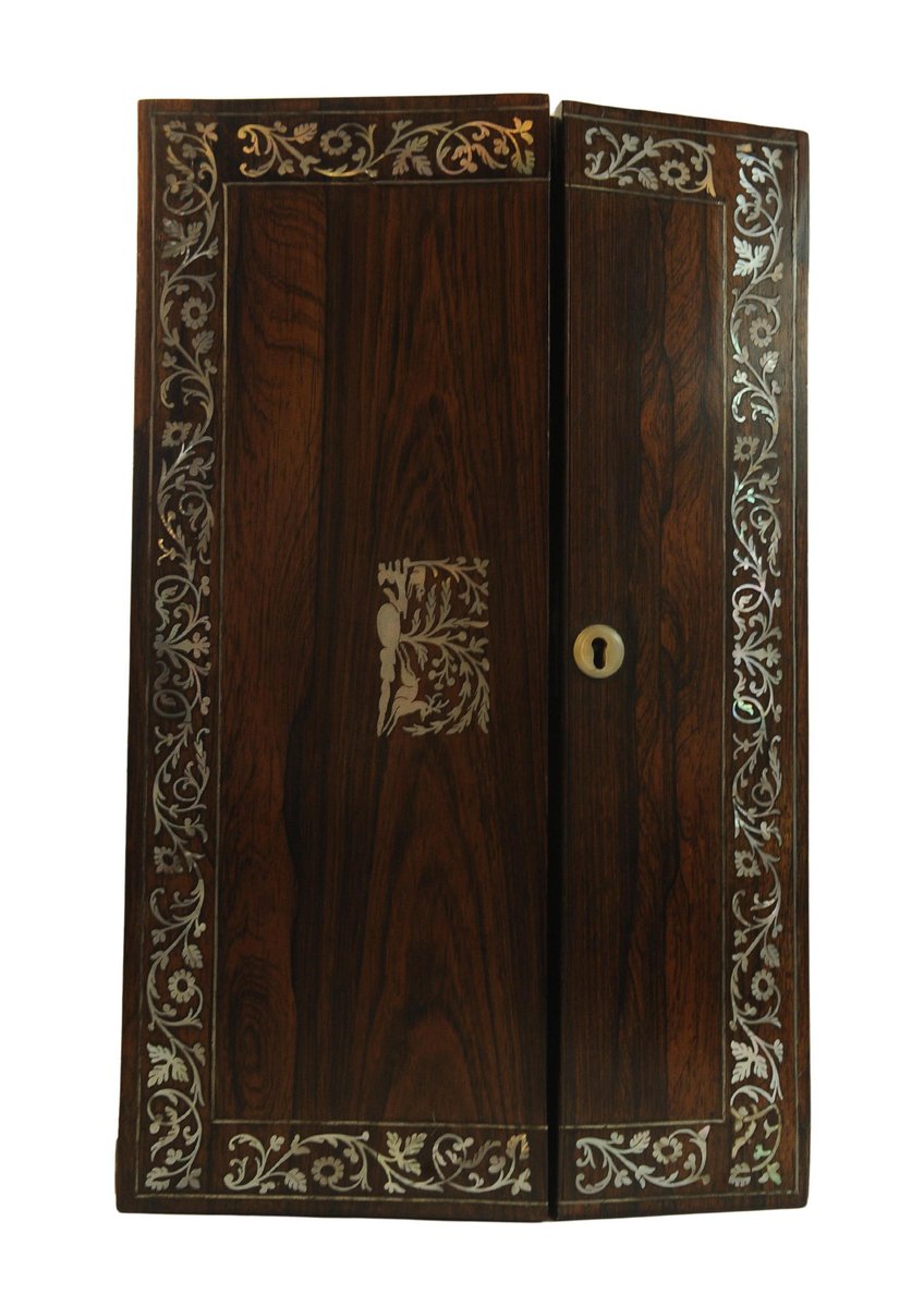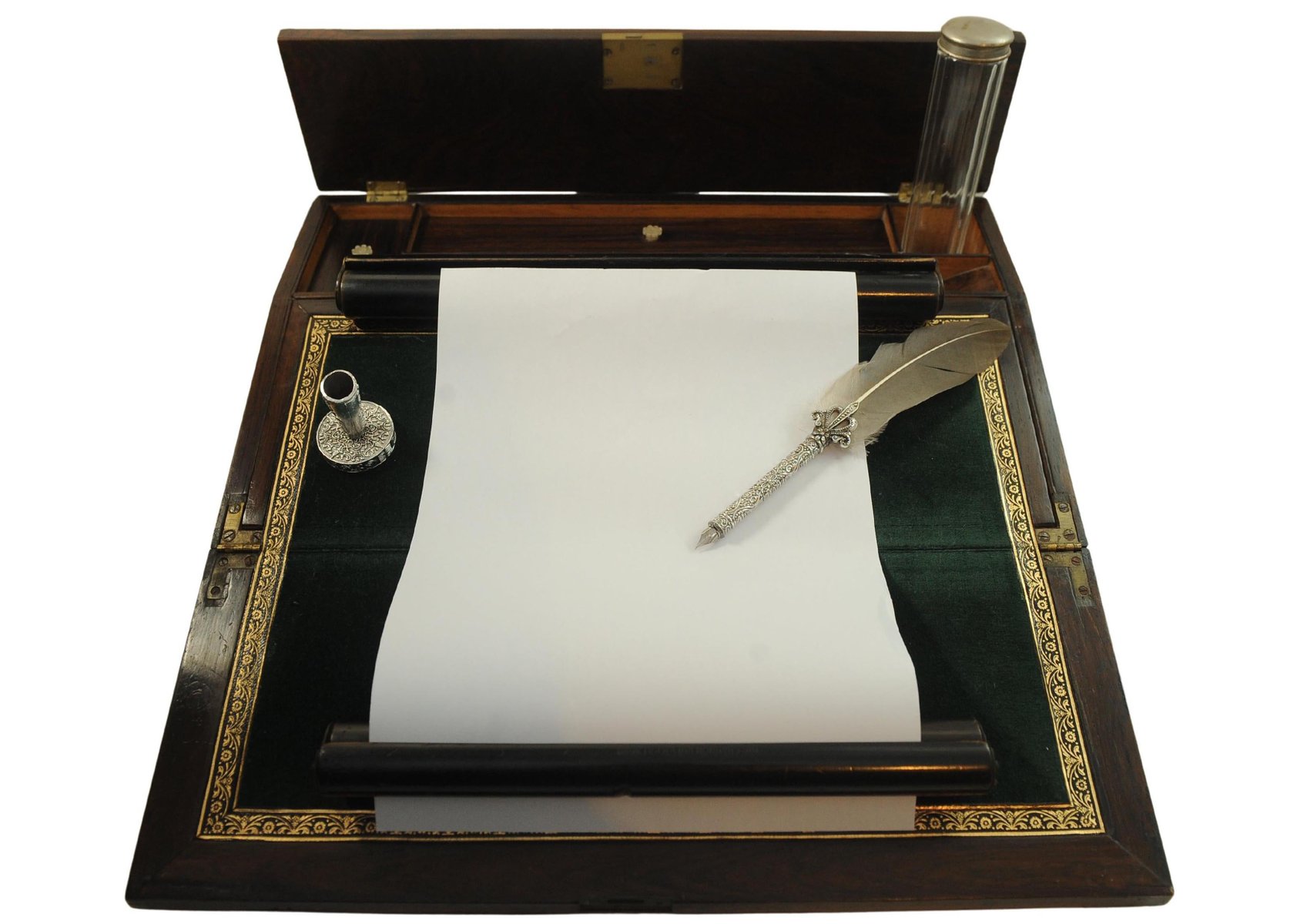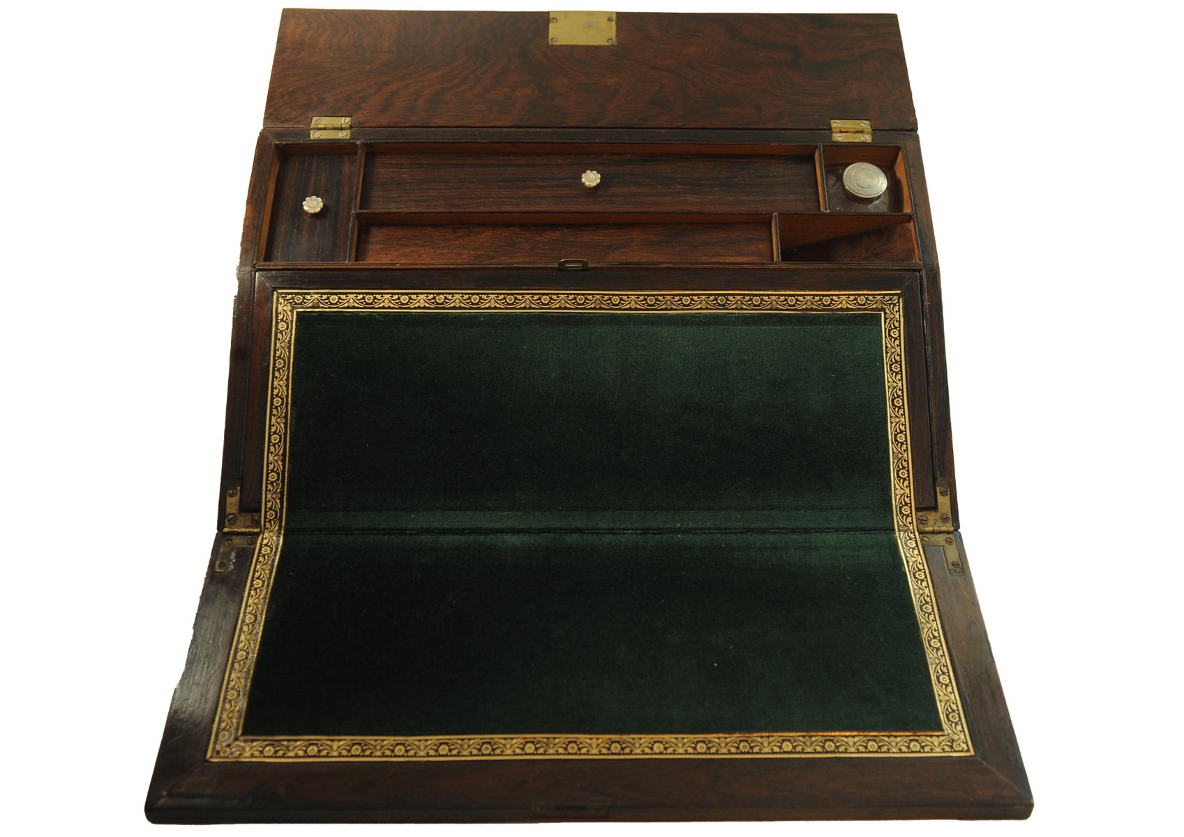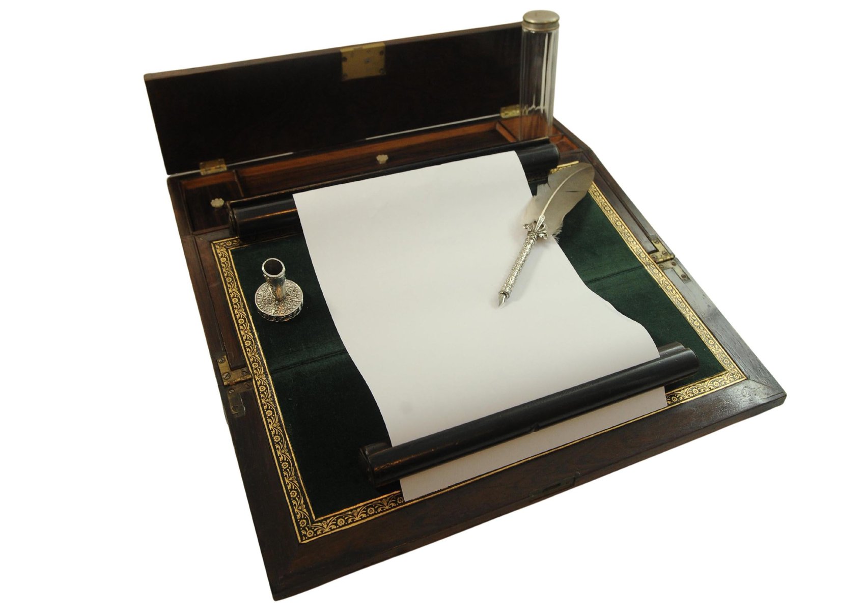 Rosewood Writing Slope with Floral Decor and Inlay, 19th Century, Set of 5